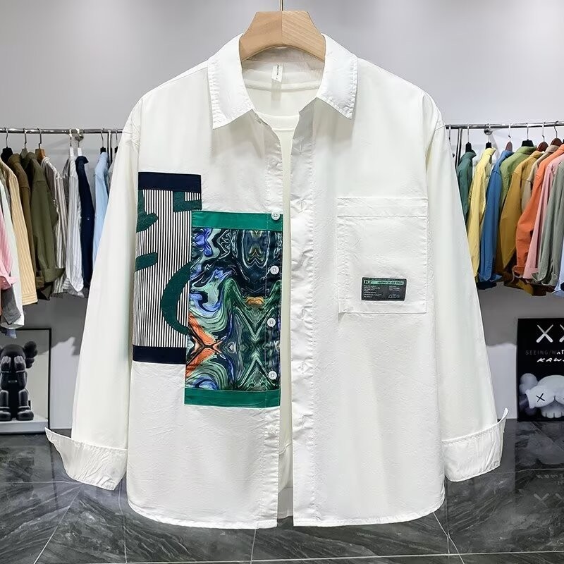 2025 편지 긴 소매 셔츠 일본 스타일 홍콩 스타일 느슨한 셔츠 보이즈 봄 트렌디 올 매치 캐주얼 자켓