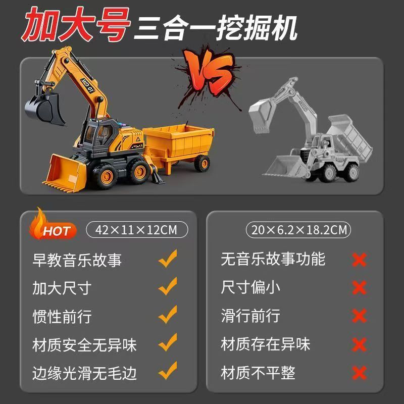 • 대형 [3-in-1 관성 굴삭기 트레일러] 음악/스토리/조명(컬러박스 없음)