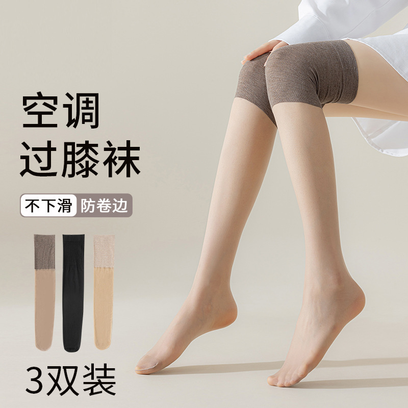여름 얇은 에어컨 무릎 양말 실크 스타킹 안티 훅 저항 착용 무릎 양말 섹시한 블랙 실크 롱 튜브 헐크 양말