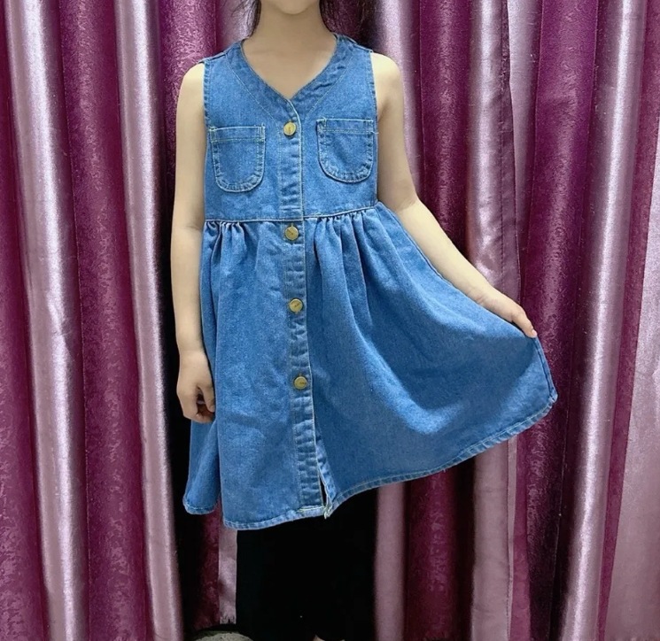 2025 새로운 소녀 원피스 데님 원피스 여름 어린이 서양식 올 매치 캐주얼 민소매 데님 공주 원피스