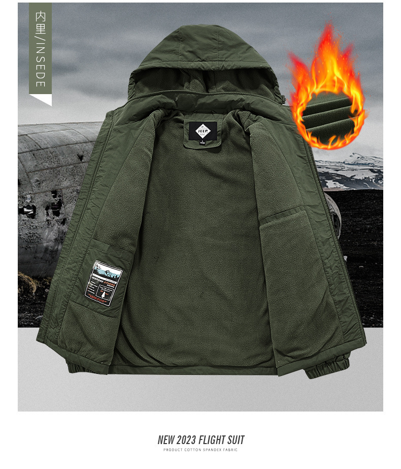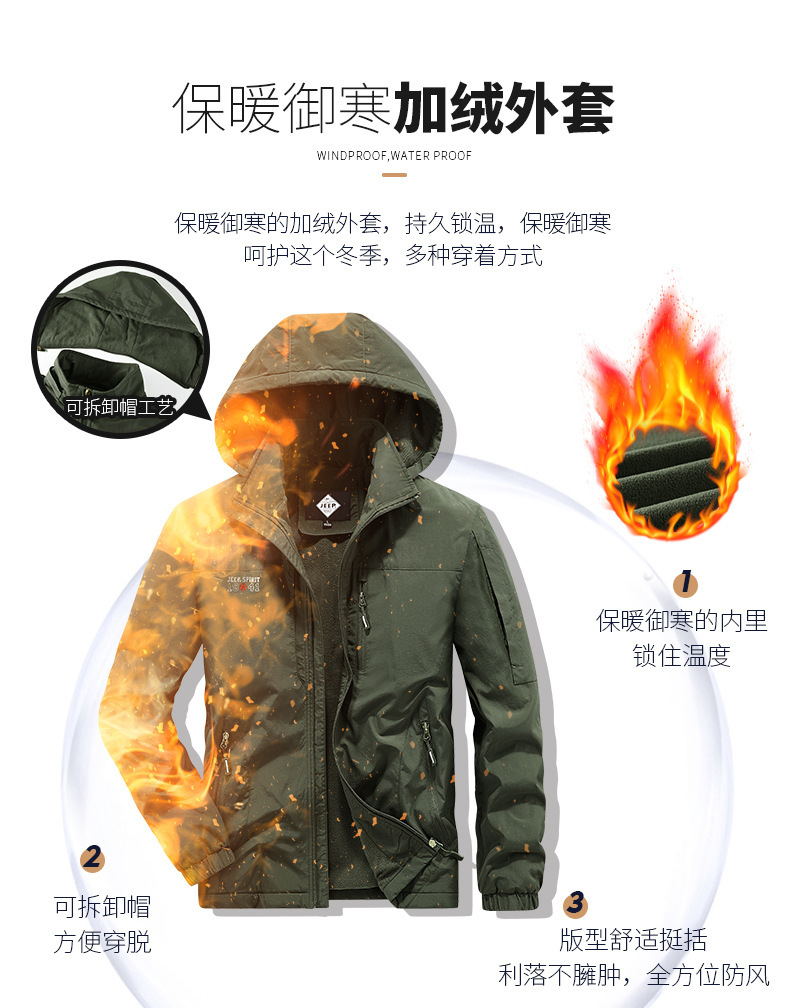 중년 및 젊은 남성을 위한 가을 겨울 코트, 멀티 포켓 워크 재킷, 벨벳 및 두꺼운 캐주얼 루즈 아웃도어 등산복