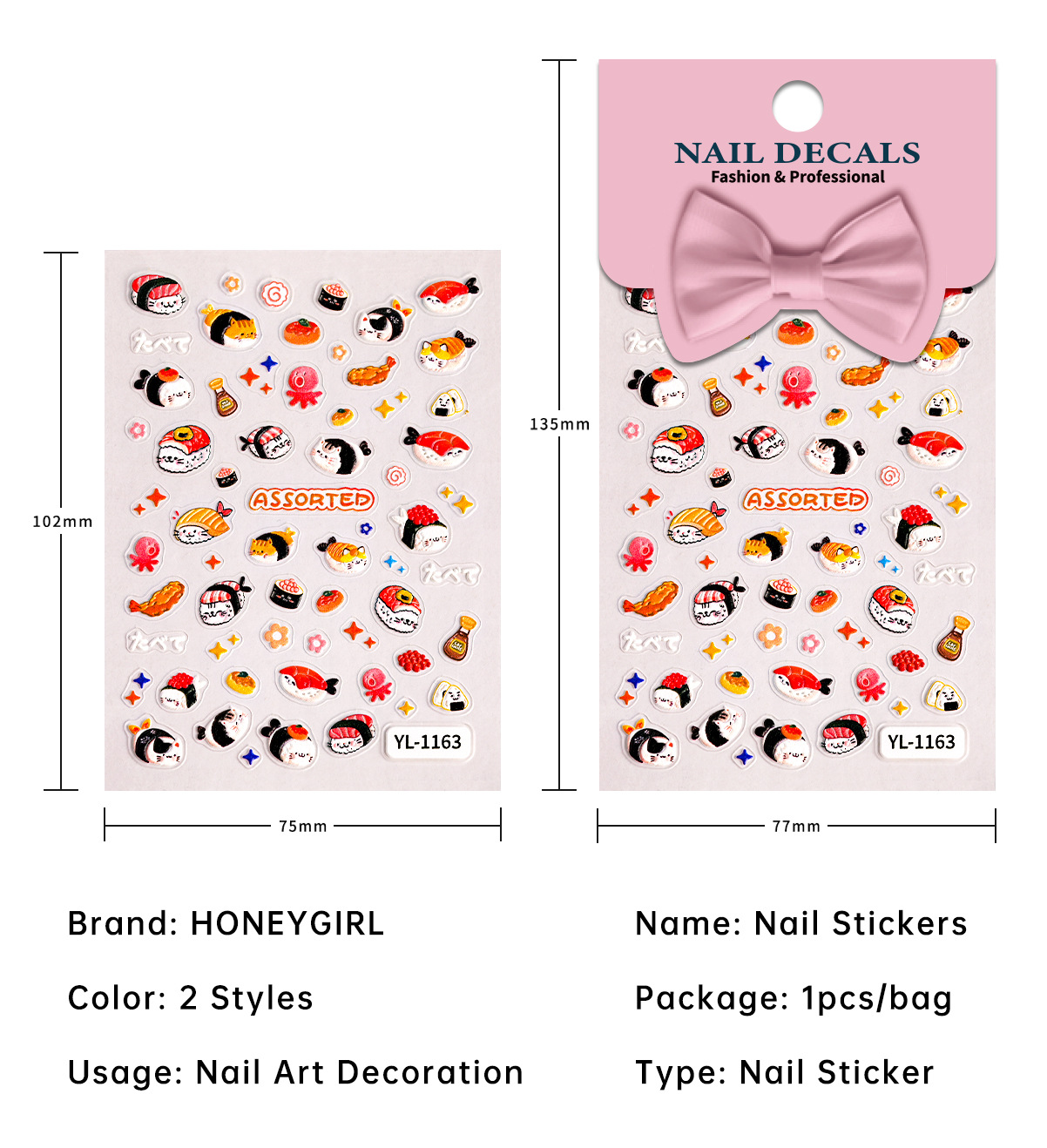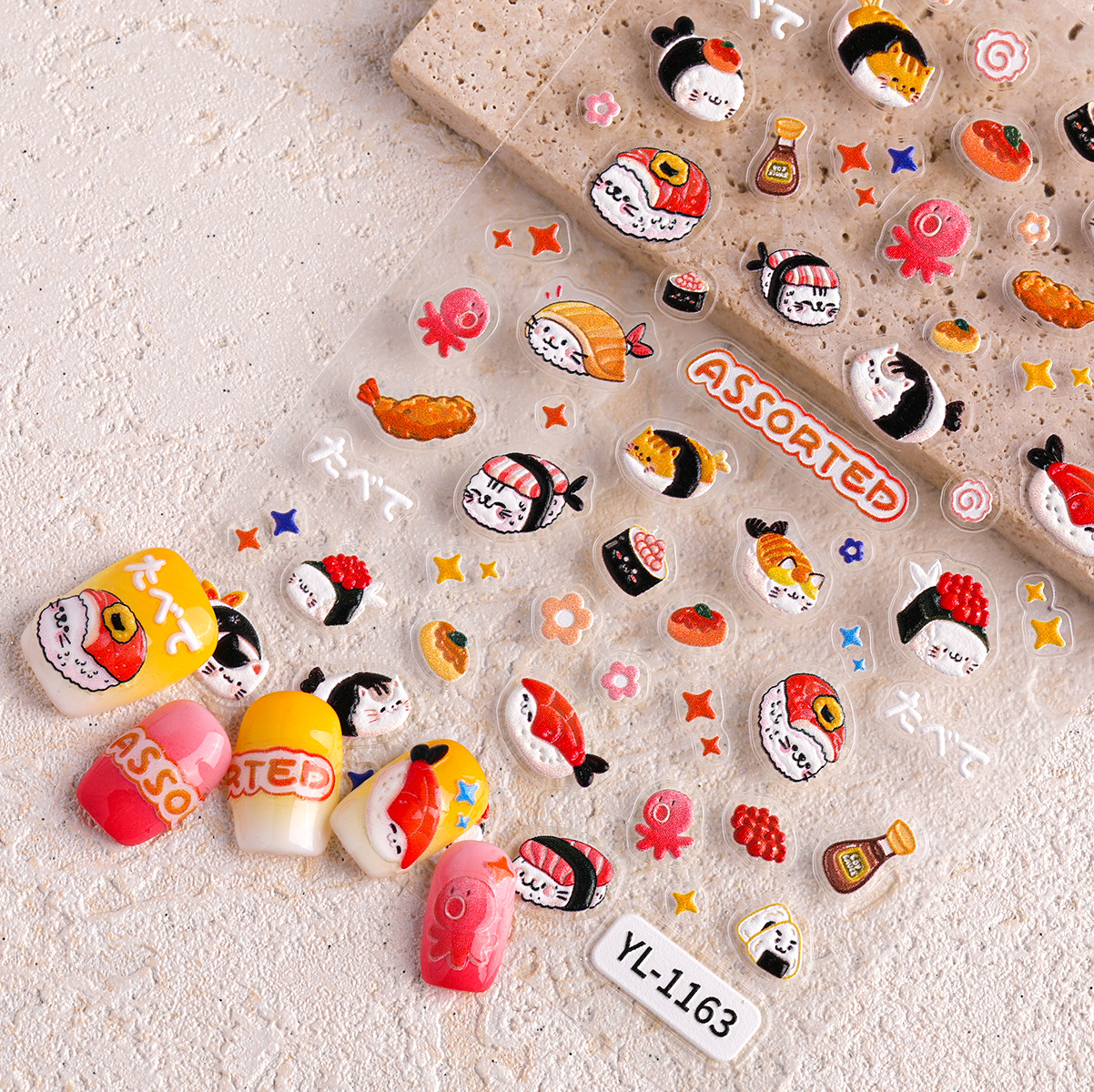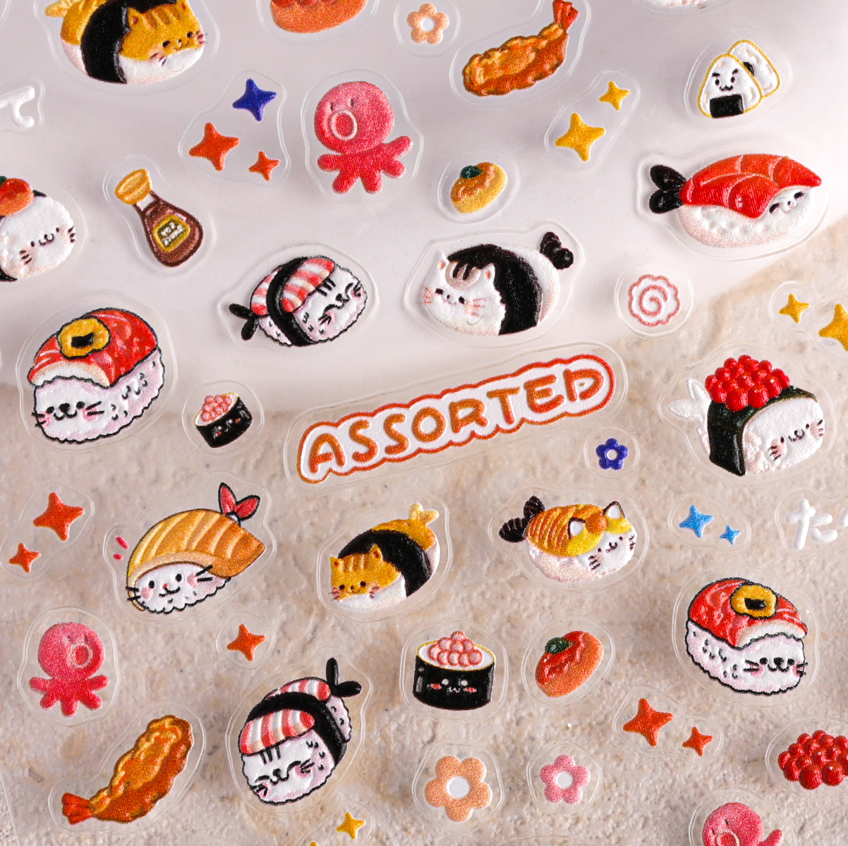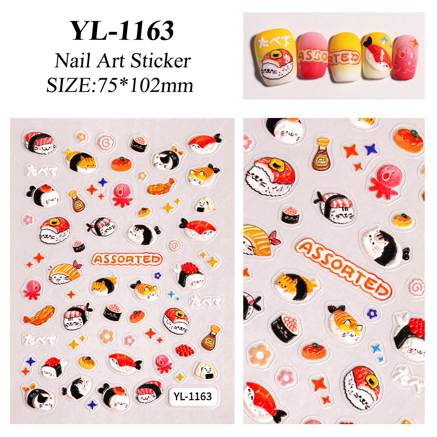 스시 고양이 네일 스티커 5D 구호 3 차원 문어 연어 새끼 고양이 네일 스티커 보석 YL스토어 가기