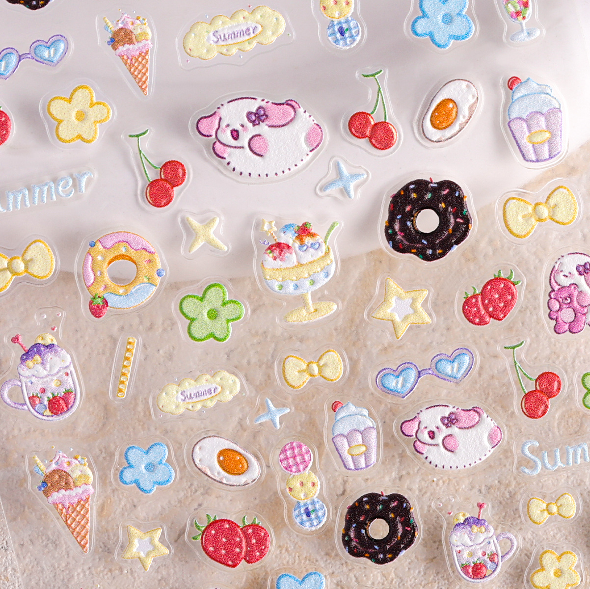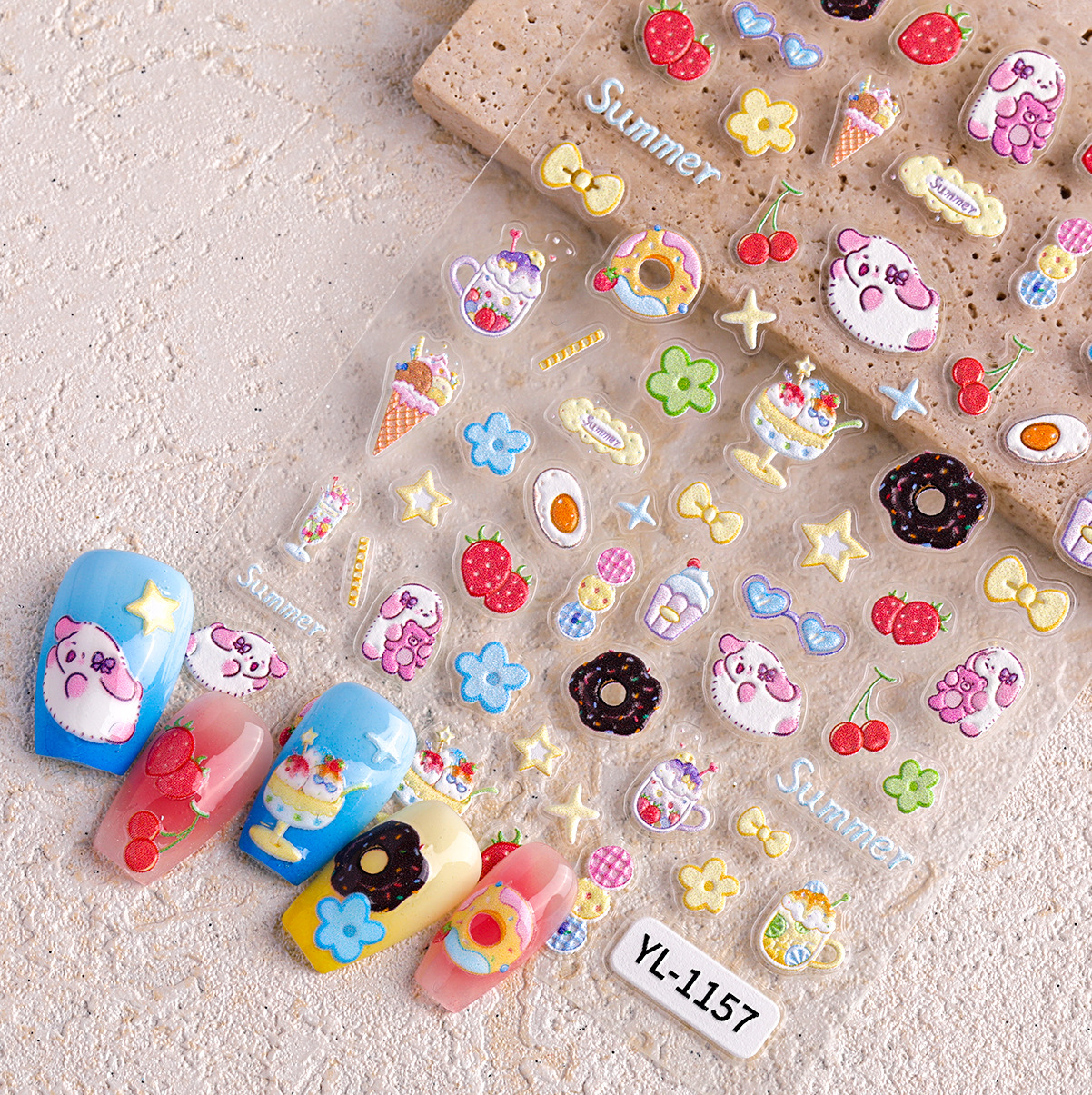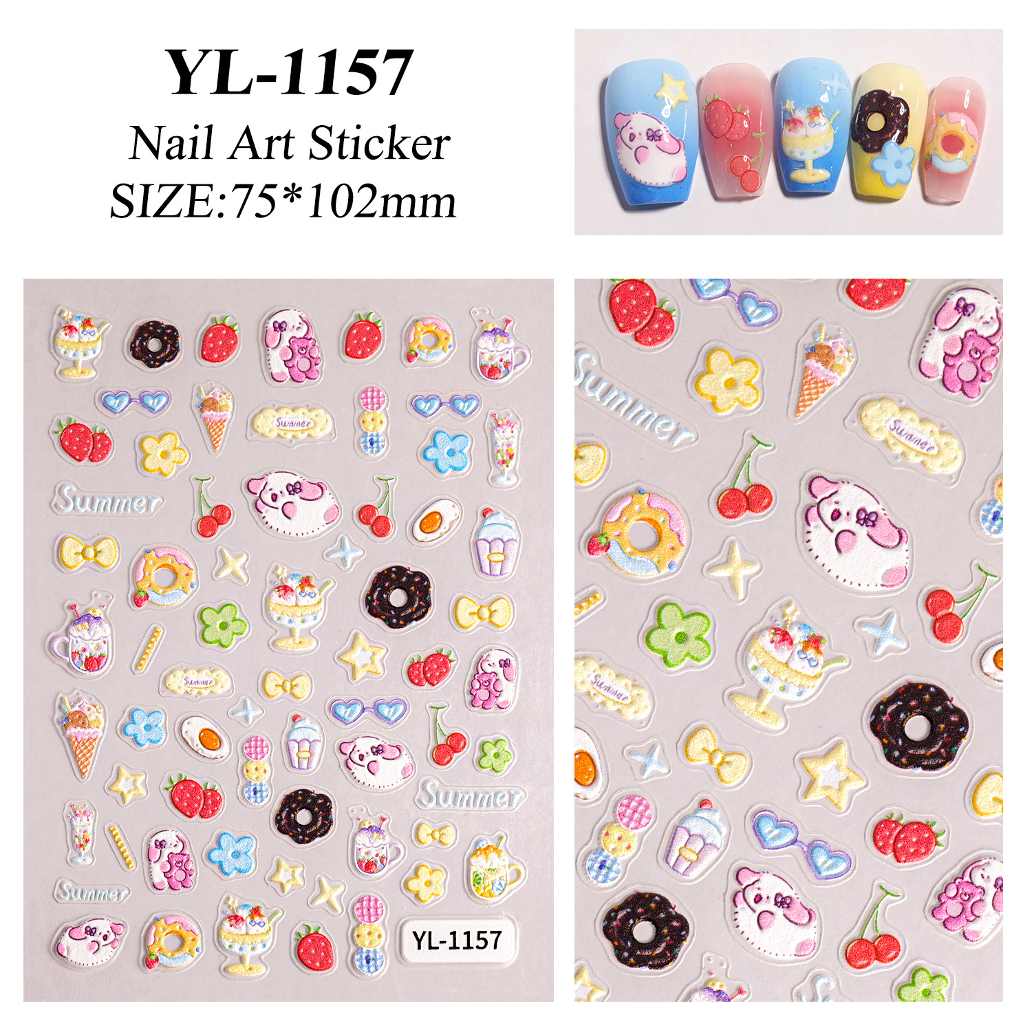 스시 고양이 네일 스티커 5D 구호 3 차원 문어 연어 새끼 고양이 네일 스티커 보석 YL