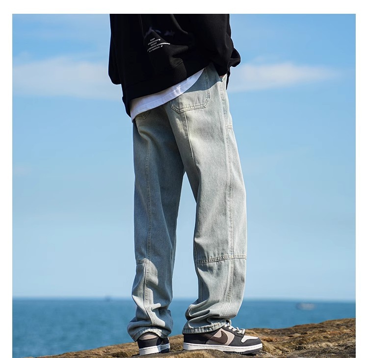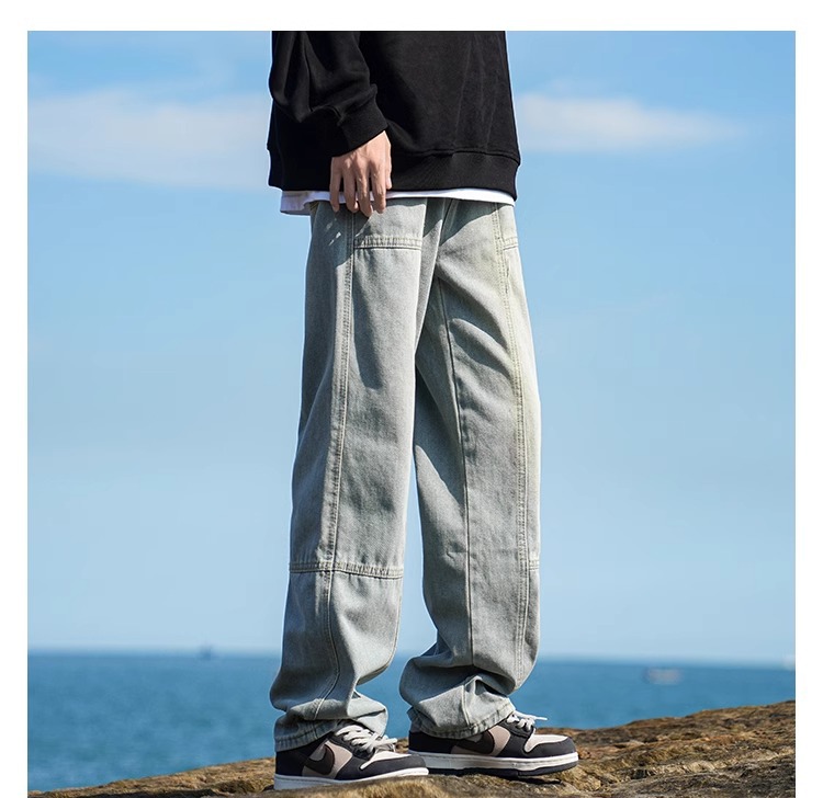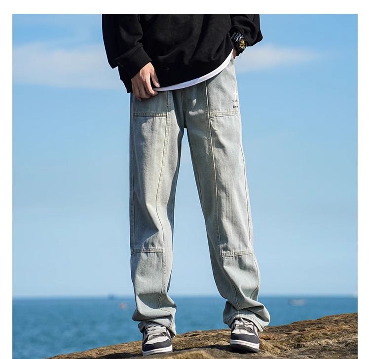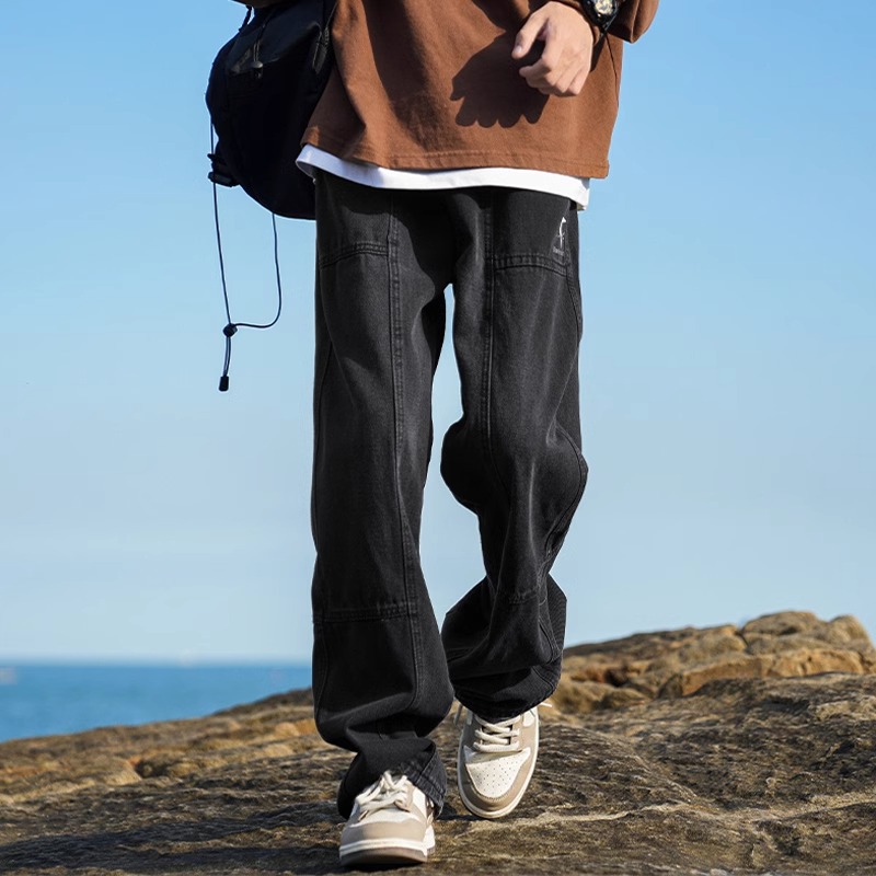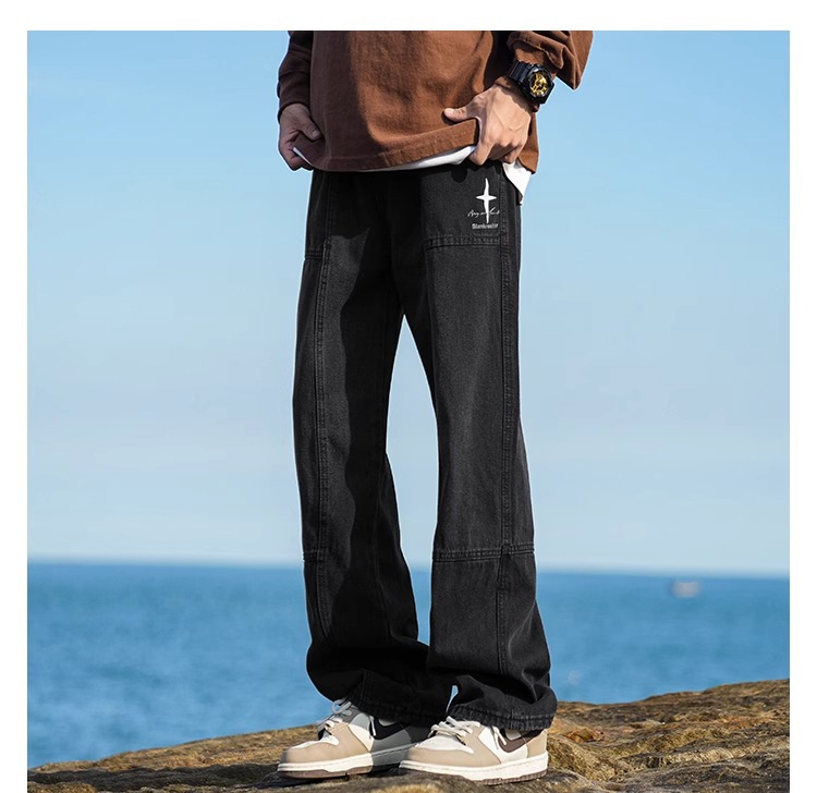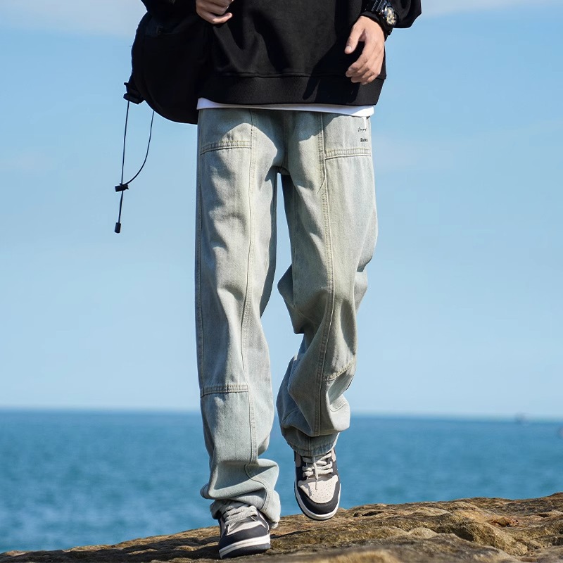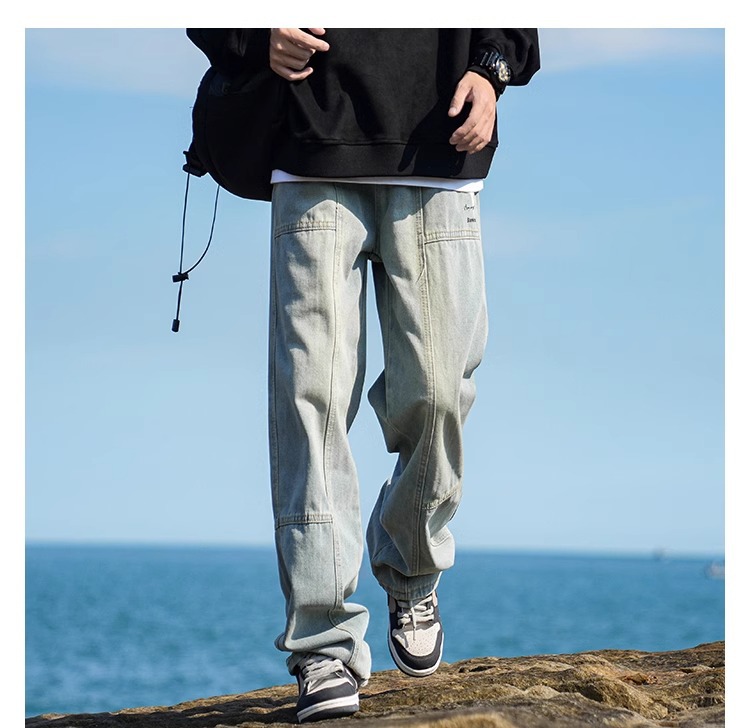 NASA 빈티지 스티칭 데님 바지 남성 2025 봄 새로운 스트레이트 팬츠 미국 하이 스트리트 와이드 레그 팬츠 남성스토어 가기