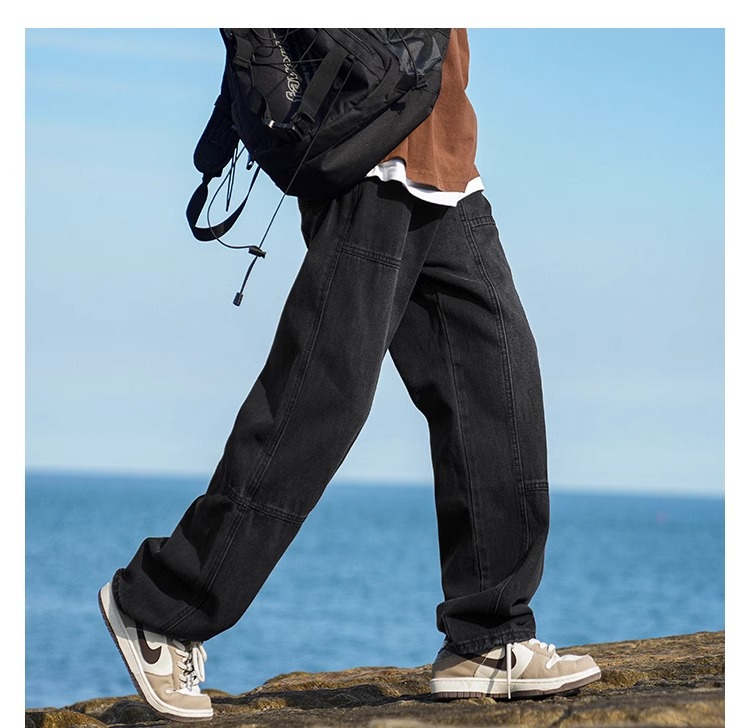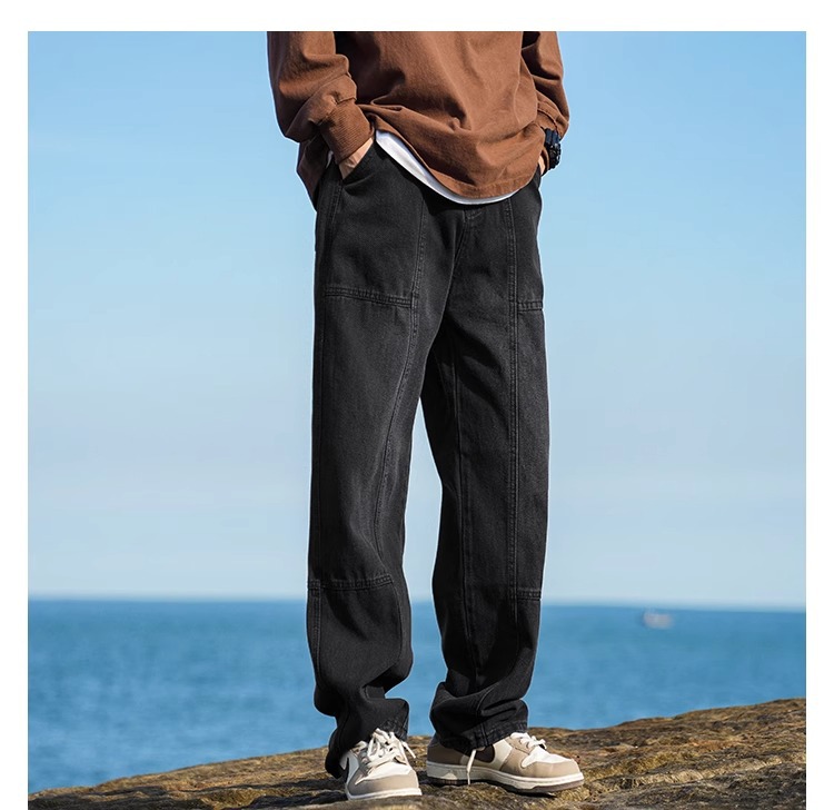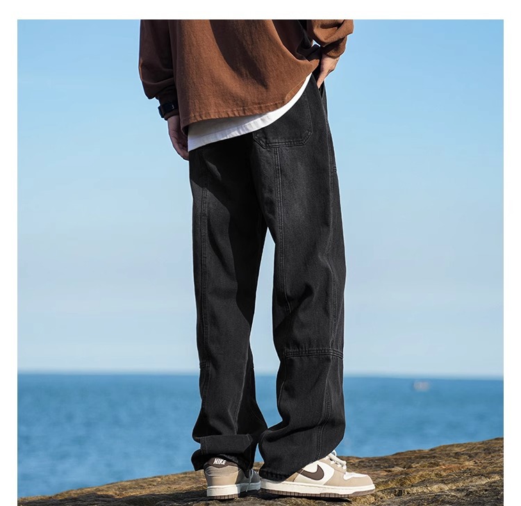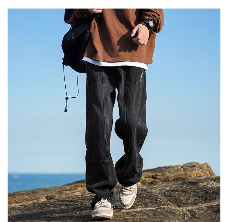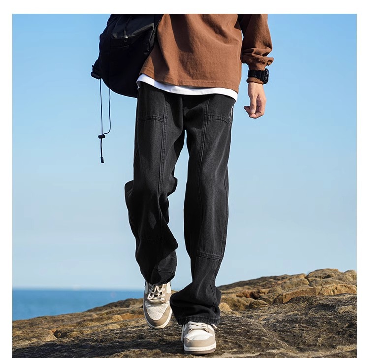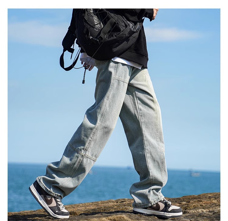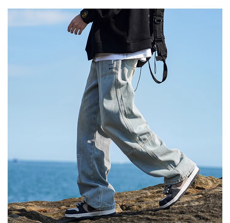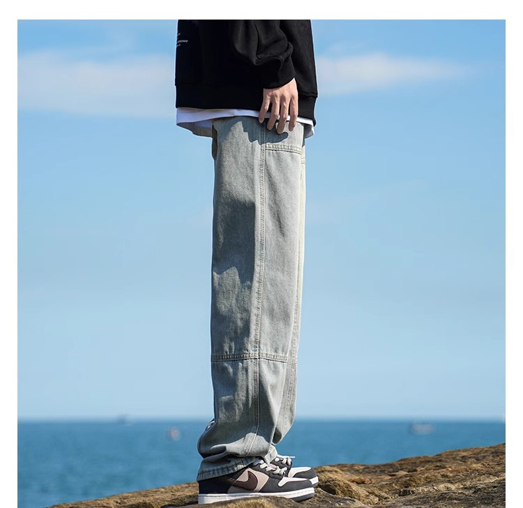 NASA 빈티지 스티칭 데님 바지 남성 2025 봄 새로운 스트레이트 팬츠 미국 하이 스트리트 와이드 레그 팬츠 남성스토어 가기