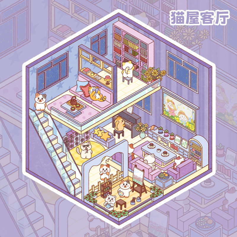 정사각형 박스 워크샵 시리즈 조경 스티커, 모형 오두막 픽셀 게임 장면 DIY 요소, 귀여운 스타일, 접착식