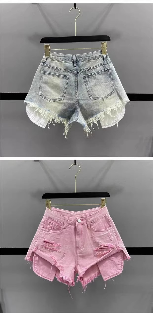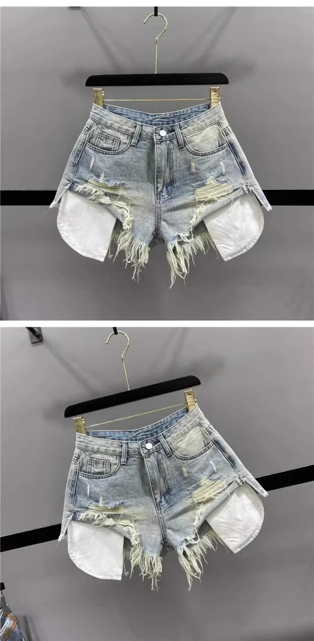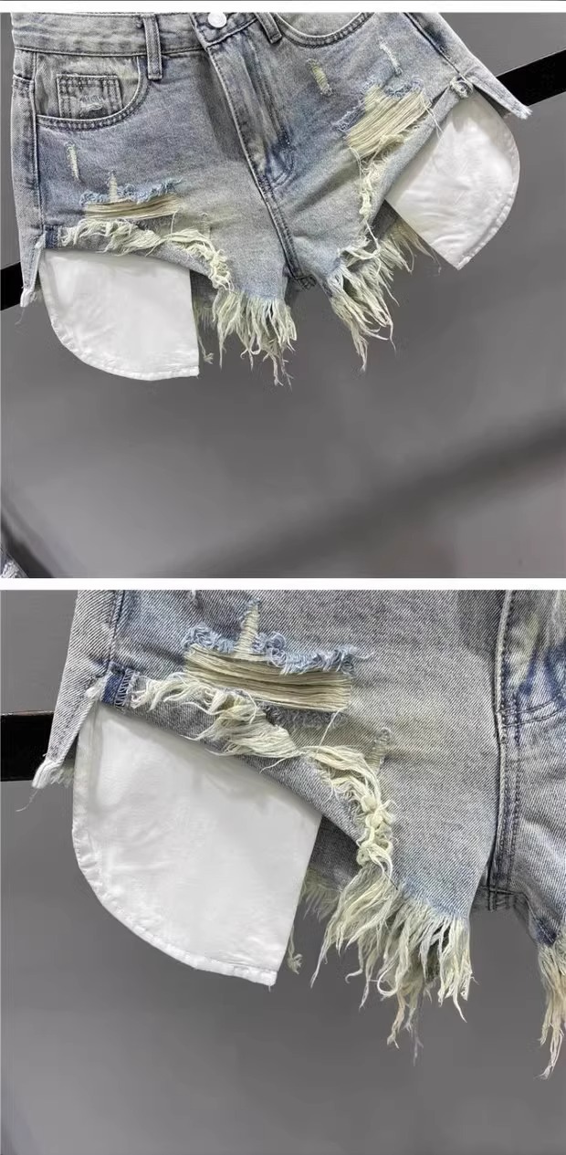 프린지 디테일 데미지 데님 반바지 여성 2026 여름 신상 다리길이 연출 섹시 하이웨이스트 슬림 A라인 와이드 핫팬츠스토어 가기