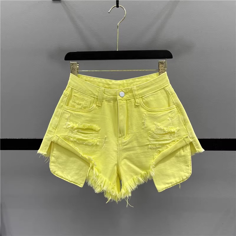 프린지 디테일 데미지 데님 반바지 여성 2026 여름 신상 다리길이 연출 섹시 하이웨이스트 슬림 A라인 와이드 핫팬츠
