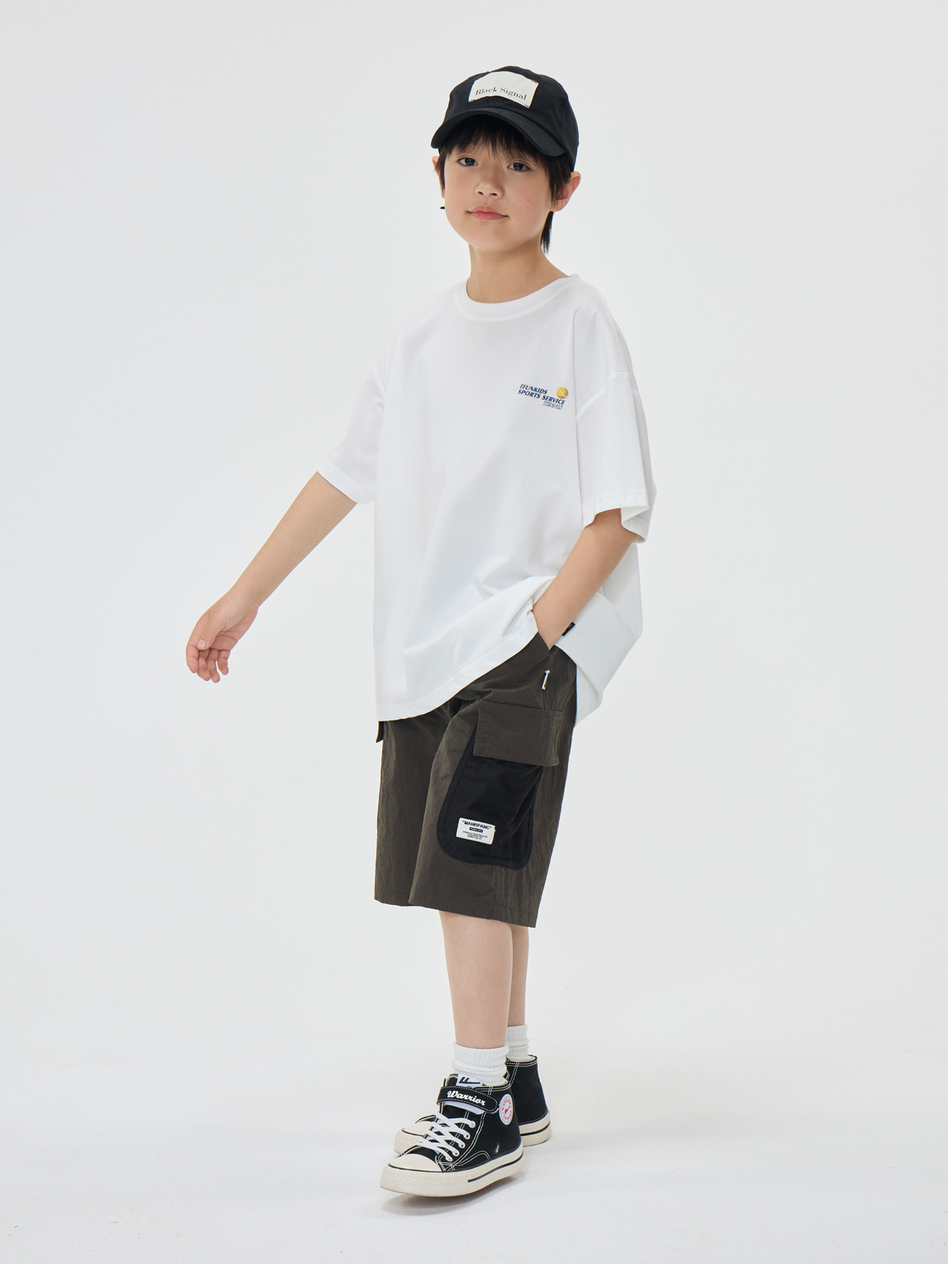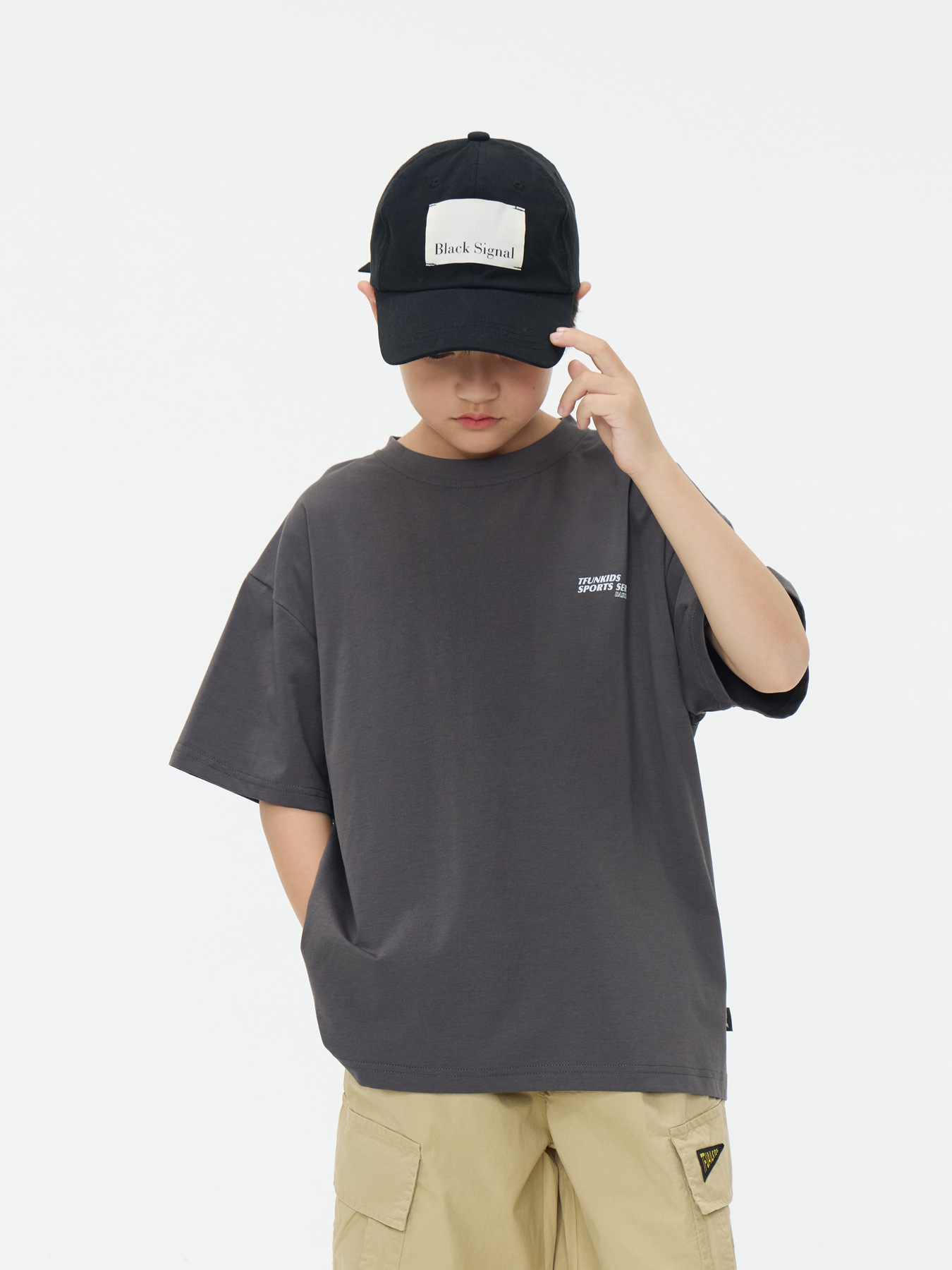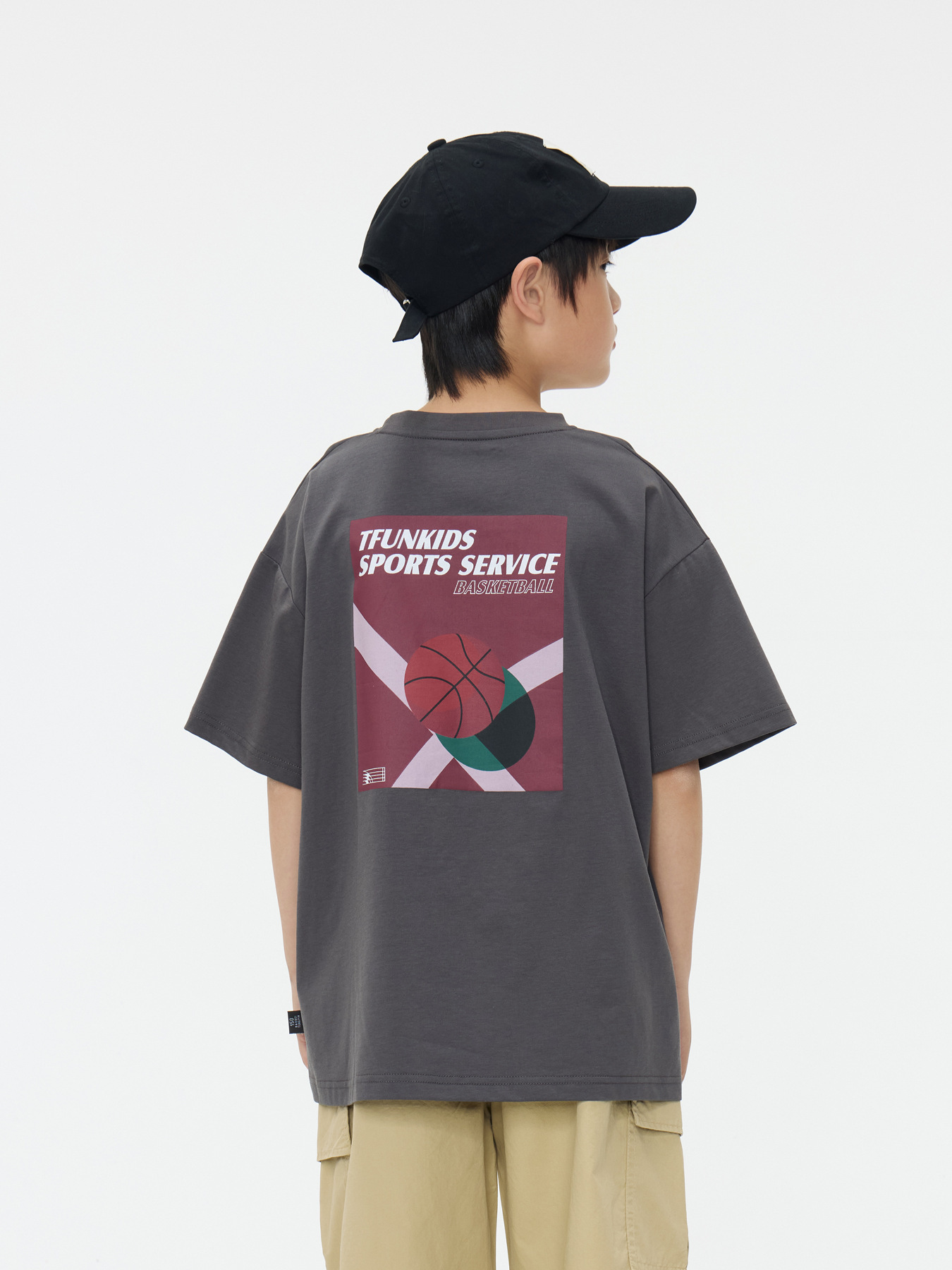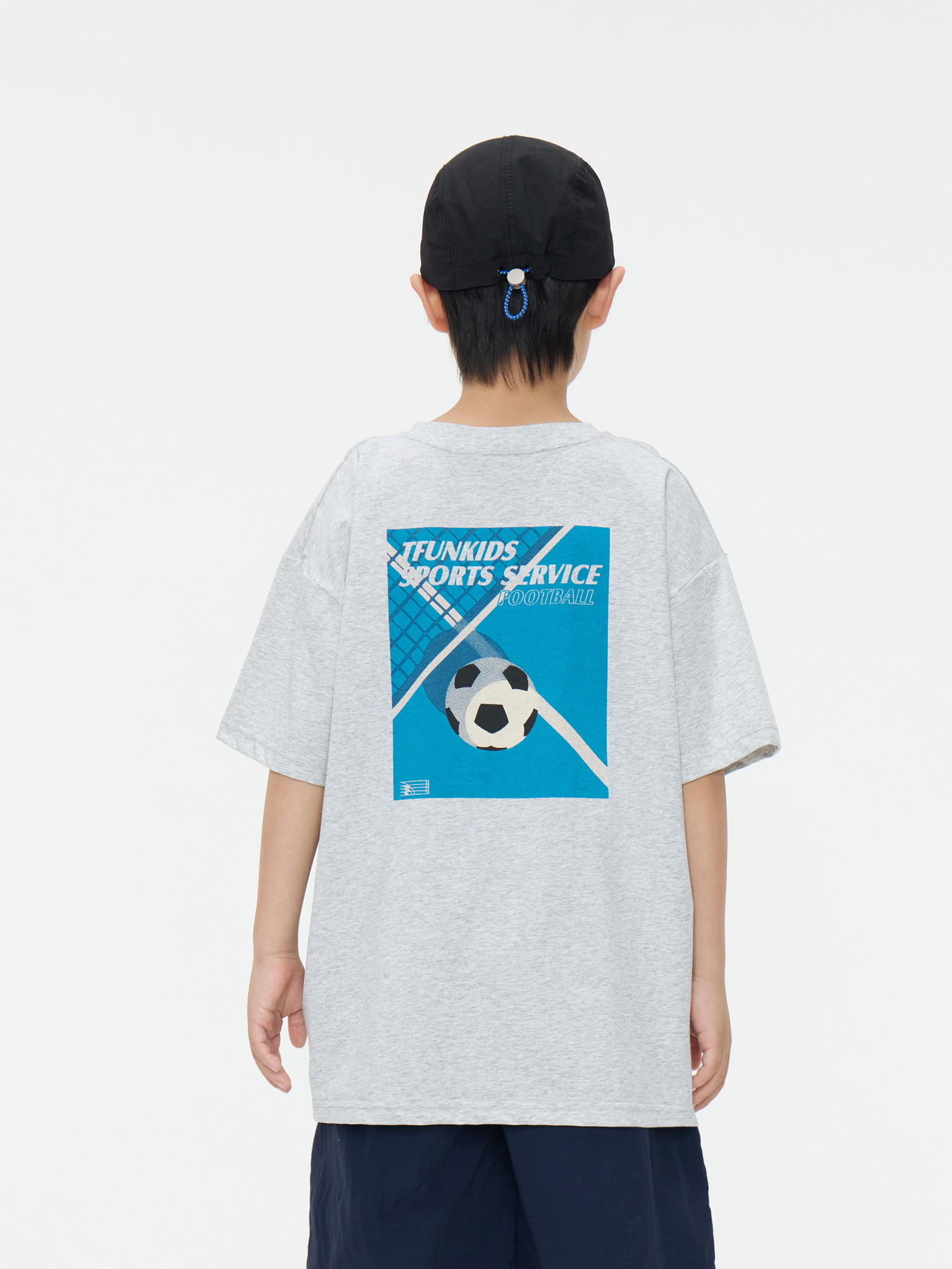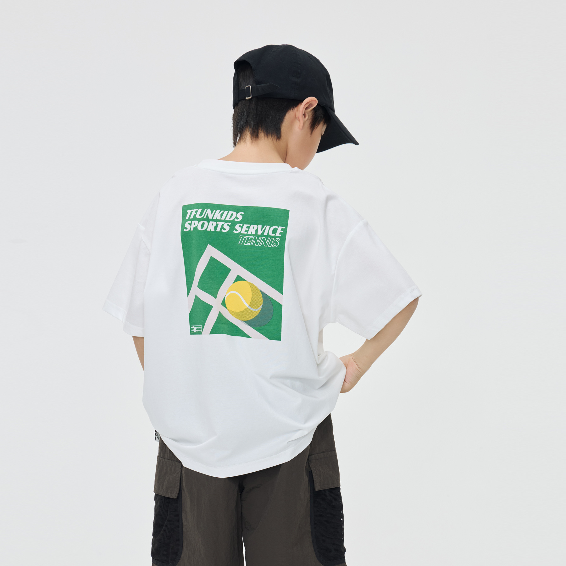 봄과 여름 2025 새로운 어린이 스포츠 경기장 인쇄 반팔 소년 중 큰 아이 느슨한 서양식 티셔츠 올 매치스토어 가기