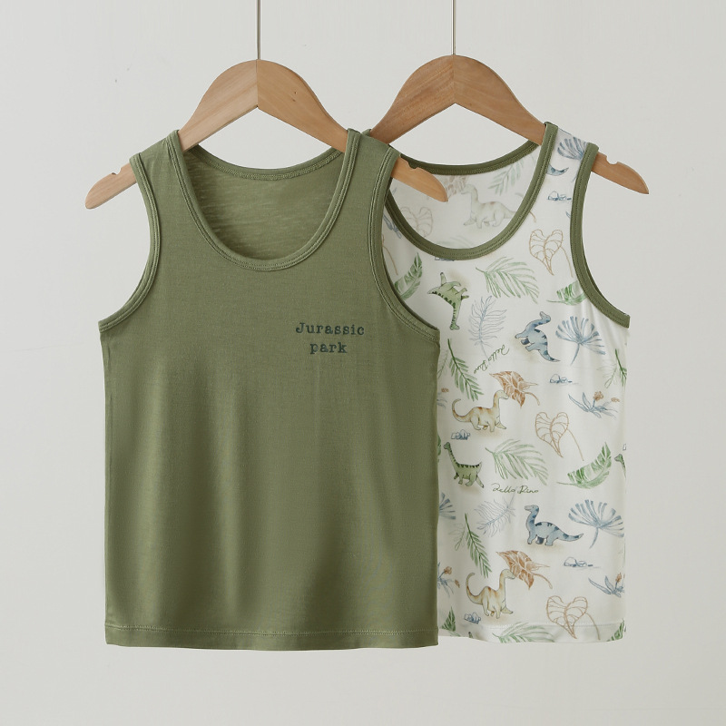 남아용 조끼 2종 세트, A급, 26년 여름 아동복, 60수 유코 실크, 만화 프린트 아동 조끼 상의