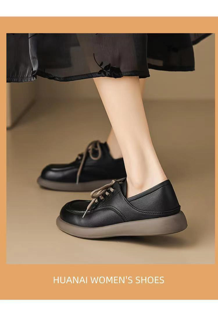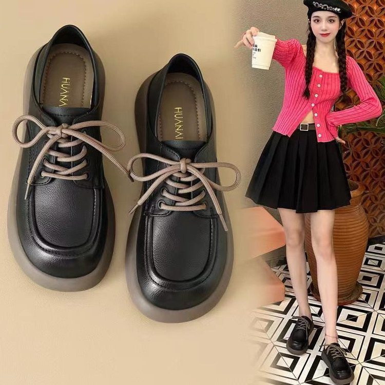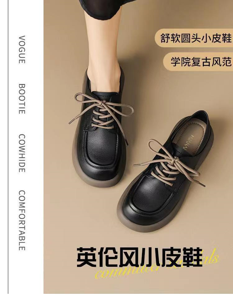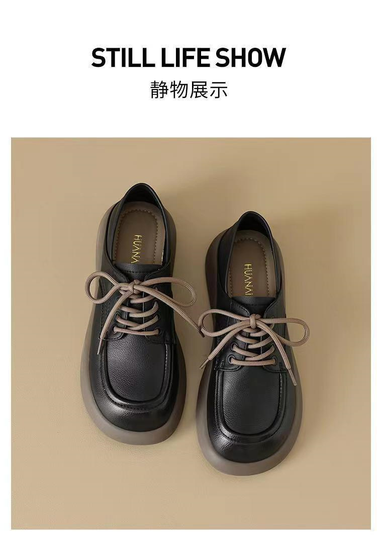 캐주얼 레이스 업 작은 가죽 신발 여성의 2024 가을 새로운 영국 스타일 부드러운 밑창 싱글 레이어 신발 통근 작업을위한 두 가지 작은 가죽 신발스토어 가기