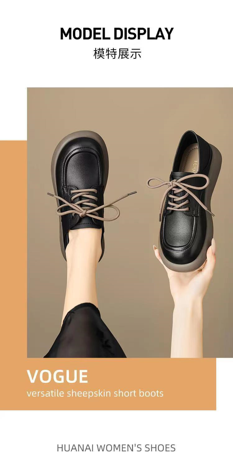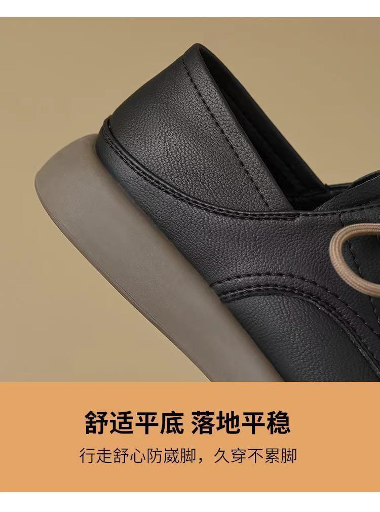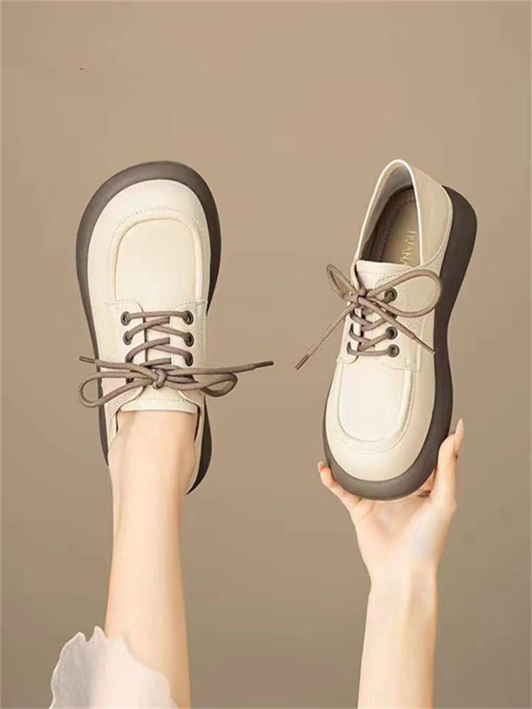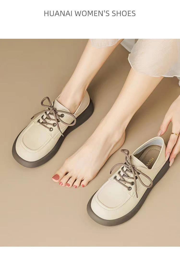 캐주얼 레이스 업 작은 가죽 신발 여성의 2024 가을 새로운 영국 스타일 부드러운 밑창 싱글 레이어 신발 통근 작업을위한 두 가지 작은 가죽 신발스토어 가기