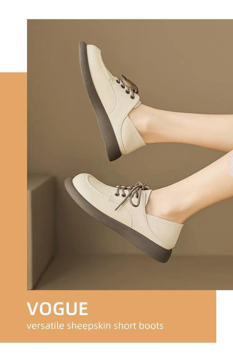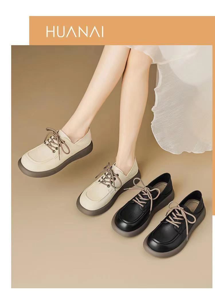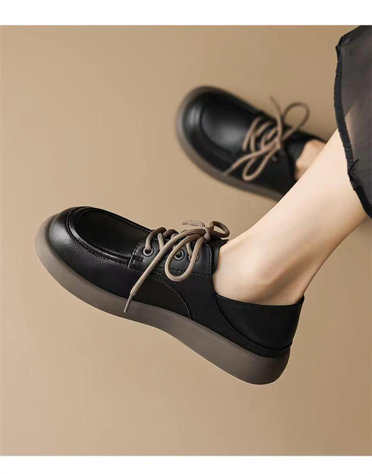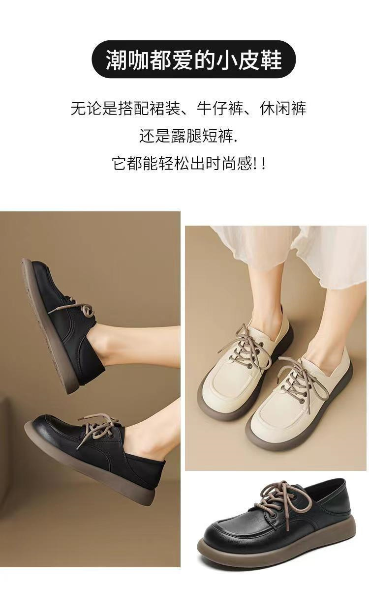 캐주얼 레이스 업 작은 가죽 신발 여성의 2024 가을 새로운 영국 스타일 부드러운 밑창 싱글 레이어 신발 통근 작업을위한 두 가지 작은 가죽 신발