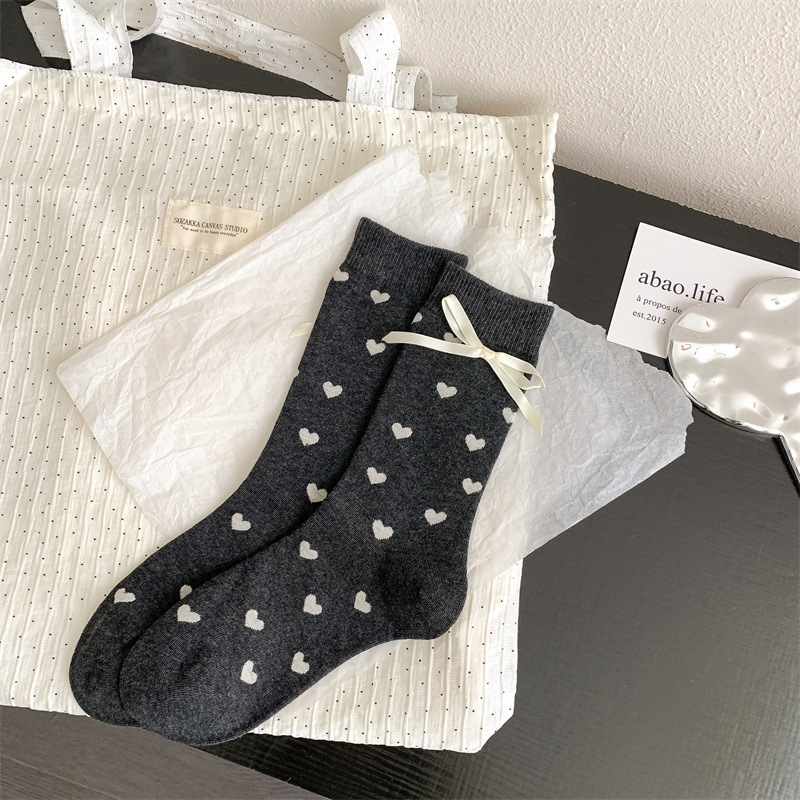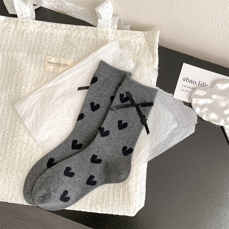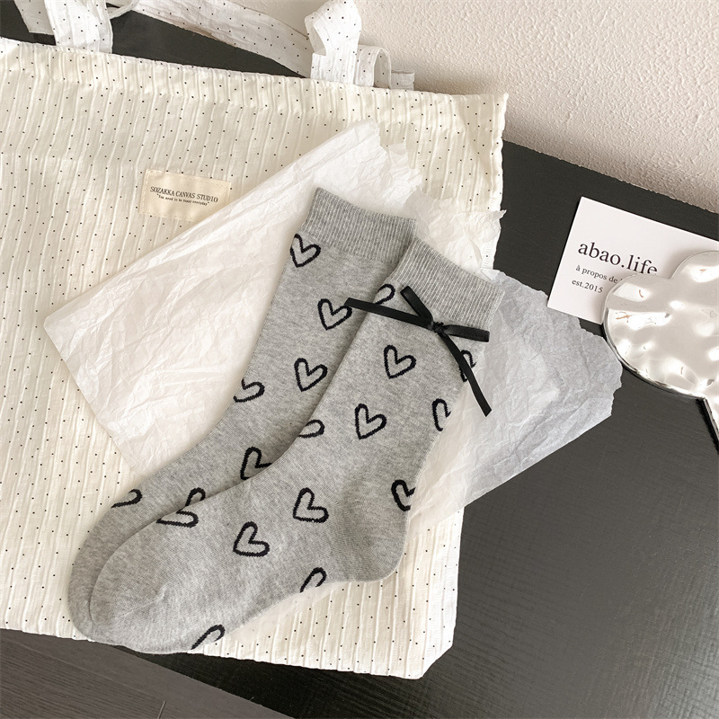 활 사랑 양말 어린이 달콤한 쿨 스타일 일본면 미드 튜브 양말 회색 스타일 발레 스타일 스태킹 양말 사계절스토어 가기