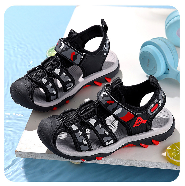 여름 소년 및 어린이 바오터우 샌들 2025 대형 어린이 소프트 솔 미끄럼 방지 어린이 비치 슈즈 6-12 국경 간 대외 무역