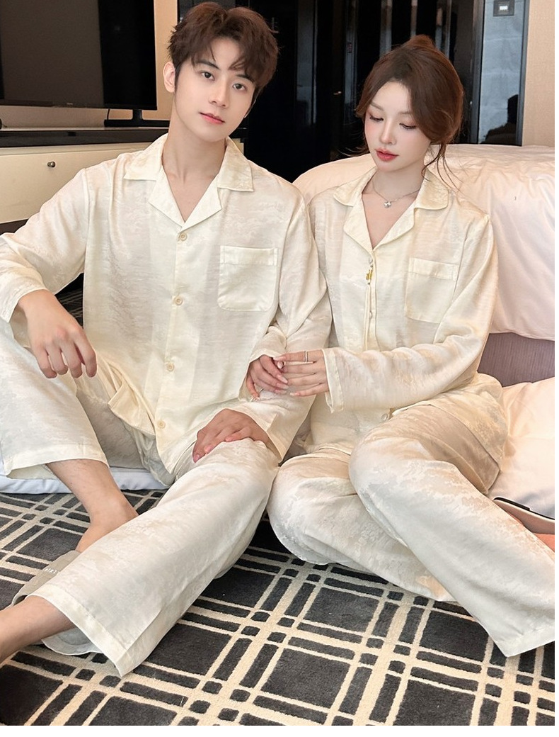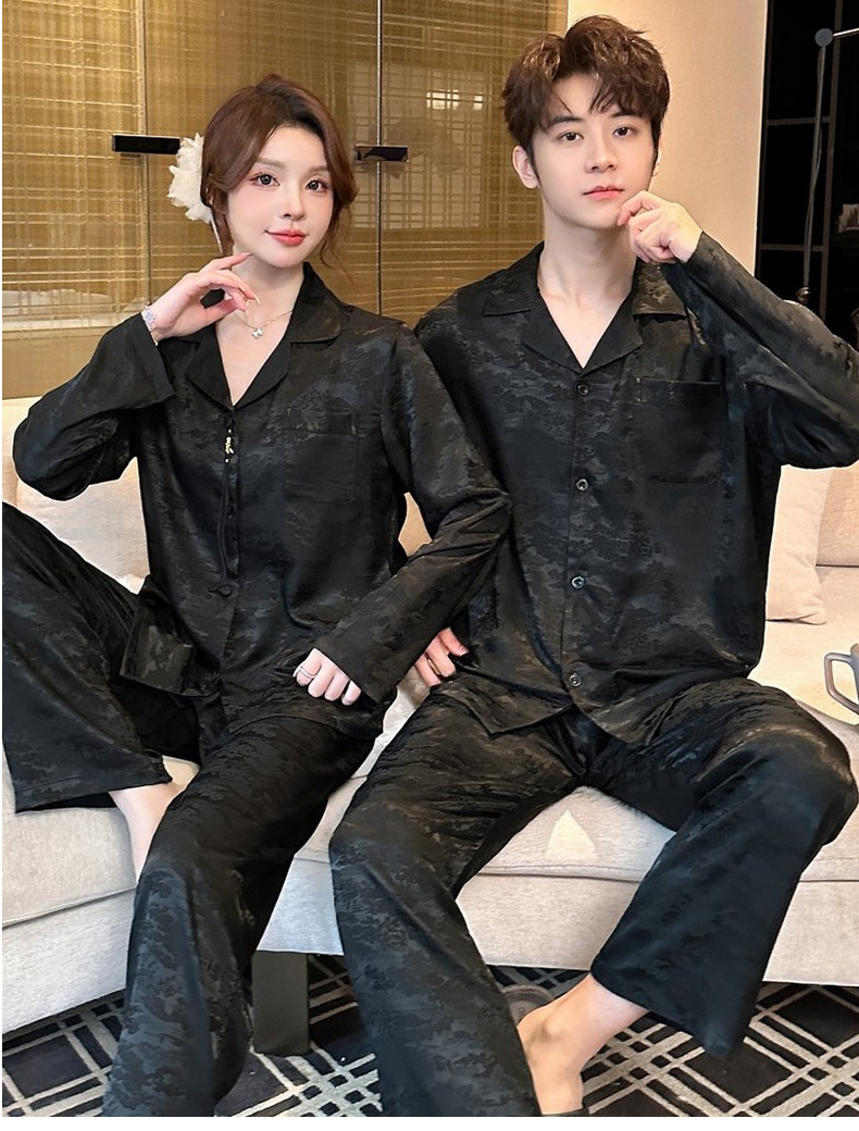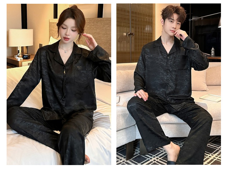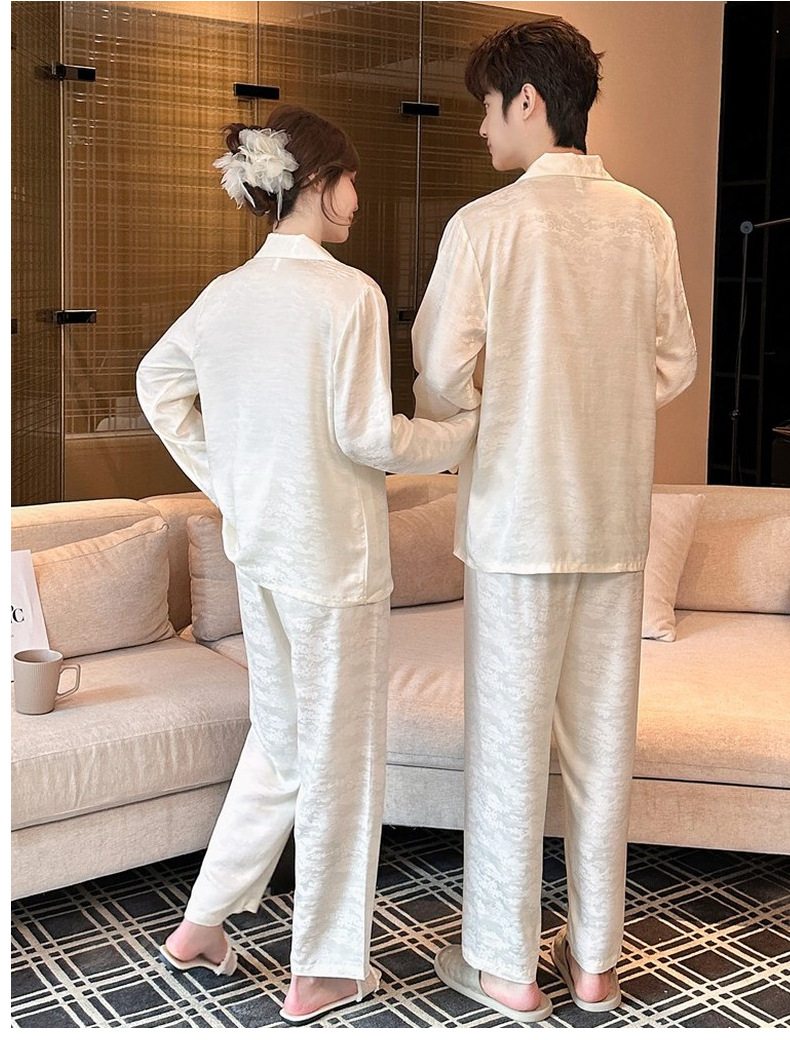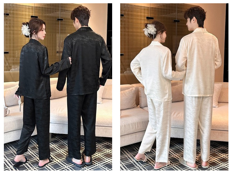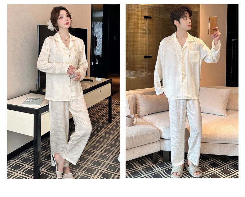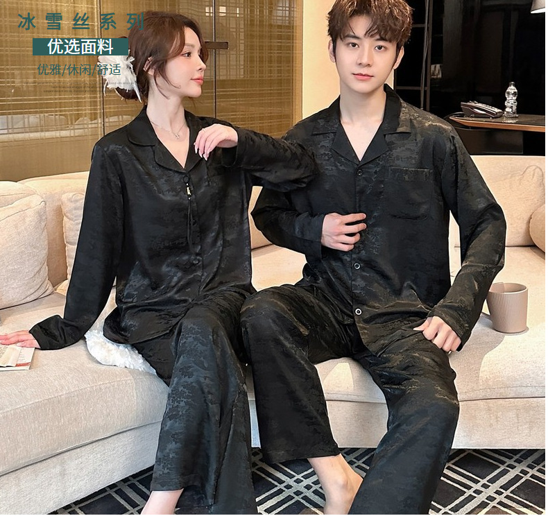 커플 잠옷 2025 봄과 가을 남자의 새로운 얼음 실크 긴 소매 바지 세트 얇은 여성 홈 옷 도매스토어 가기