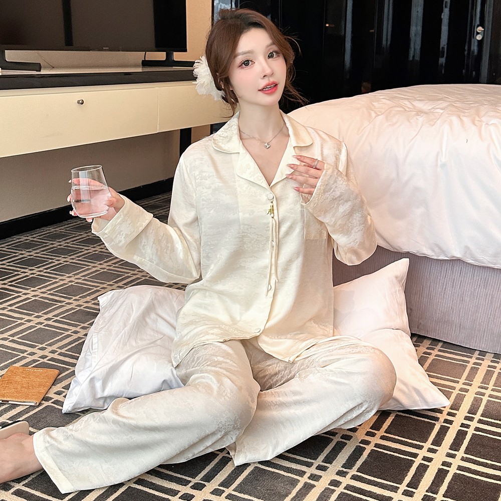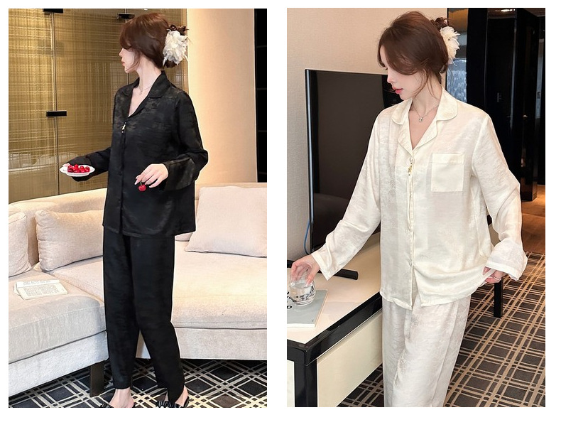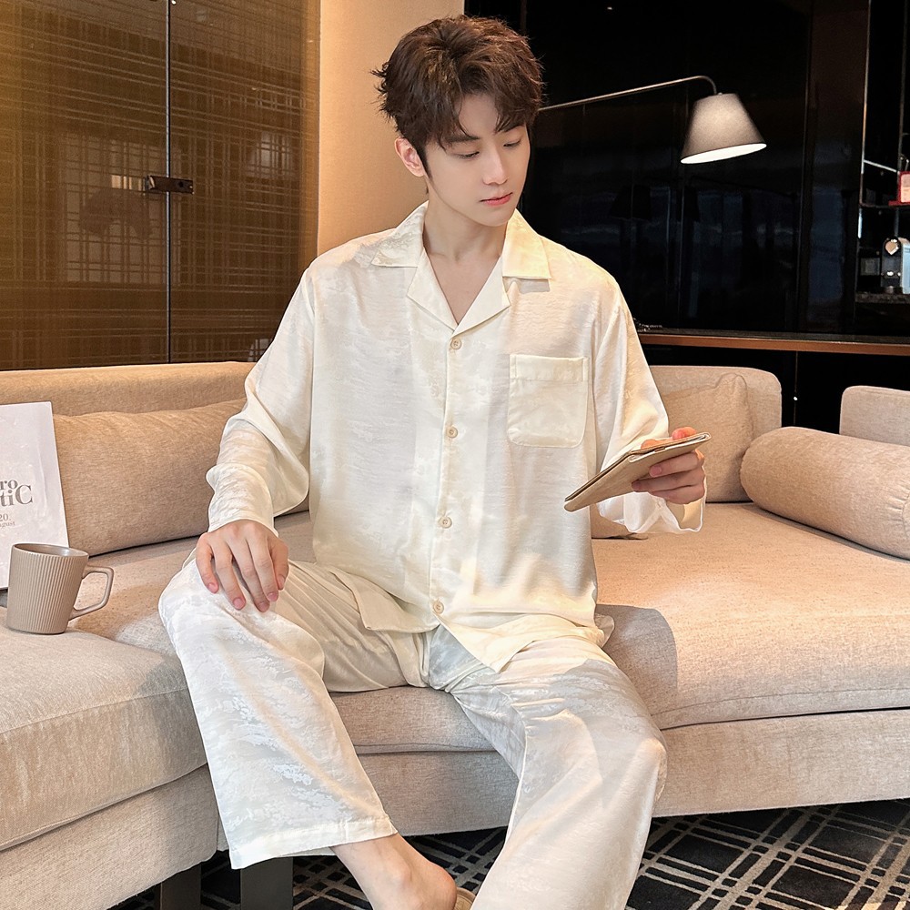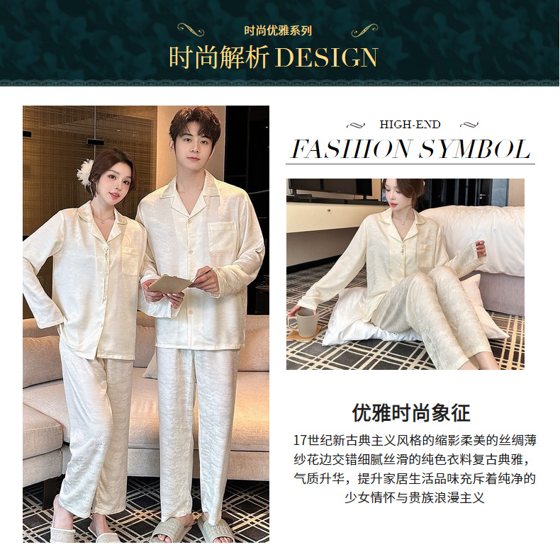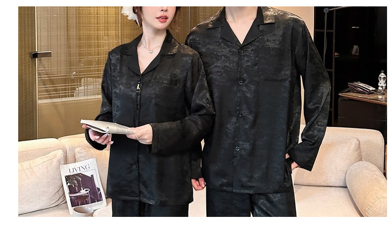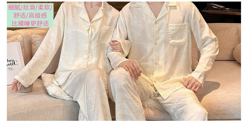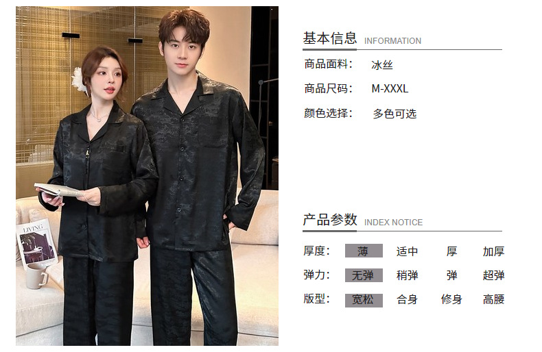 커플 잠옷 2025 봄과 가을 남자의 새로운 얼음 실크 긴 소매 바지 세트 얇은 여성 홈 옷 도매스토어 가기