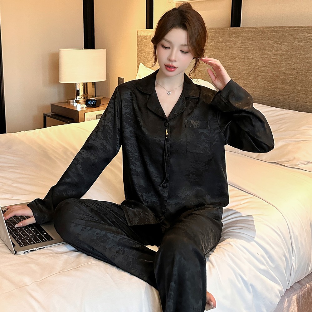 커플 잠옷 2025 봄과 가을 남자의 새로운 얼음 실크 긴 소매 바지 세트 얇은 여성 홈 옷 도매