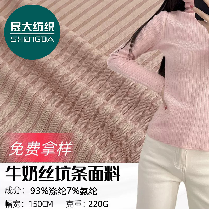 220g 가볍고 얇은 골지 무늬 밀크 실크 원단 니트 폴리에스터 광택 원단 신축성 있는 골지 스커트 셔츠 티셔츠 아동복스토어 가기