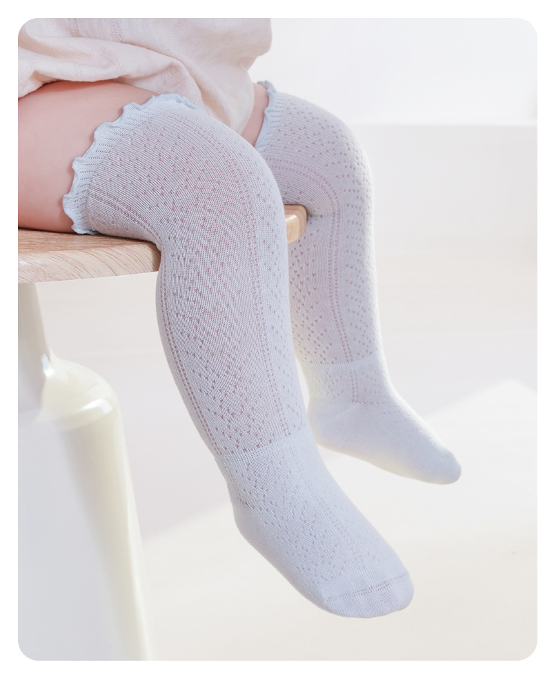 여름 얇은 클래스 A 아기의 무릎 위 스타킹 신생아 아기의 튜브 메쉬 스타킹 뼈없는 통기성 풀림