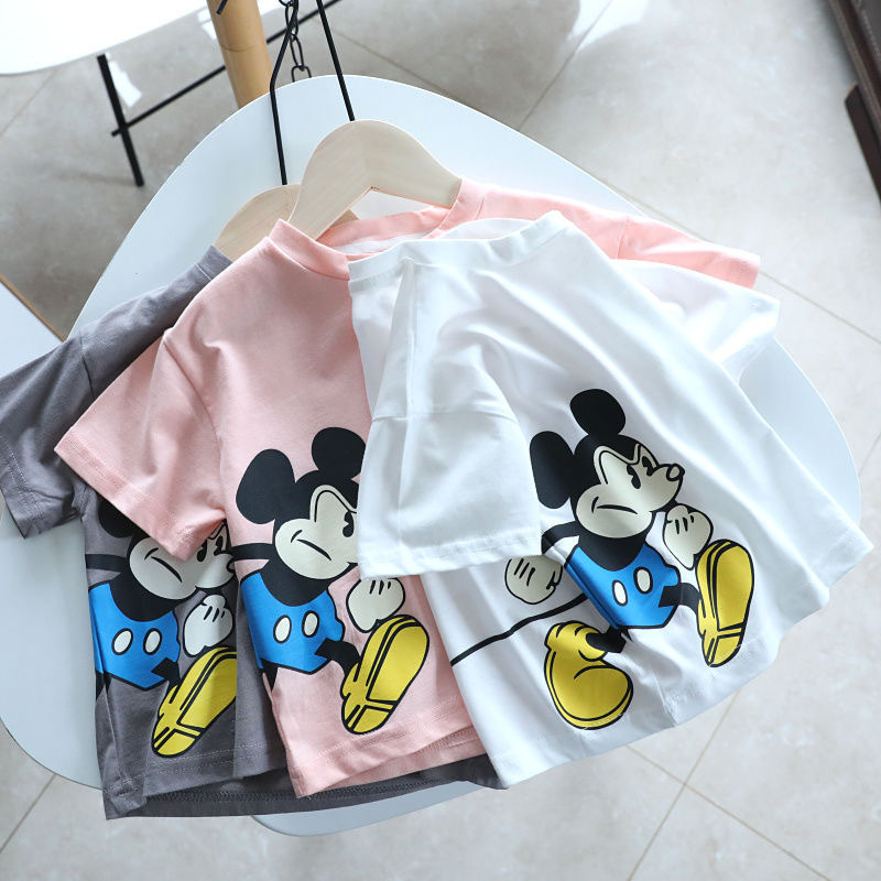 아동복 소년 소녀 반팔 티셔츠 어린이 티셔츠 반소매 2025 여름 중소 어린이를위한 새로운 통기성 만화 탑스토어 가기