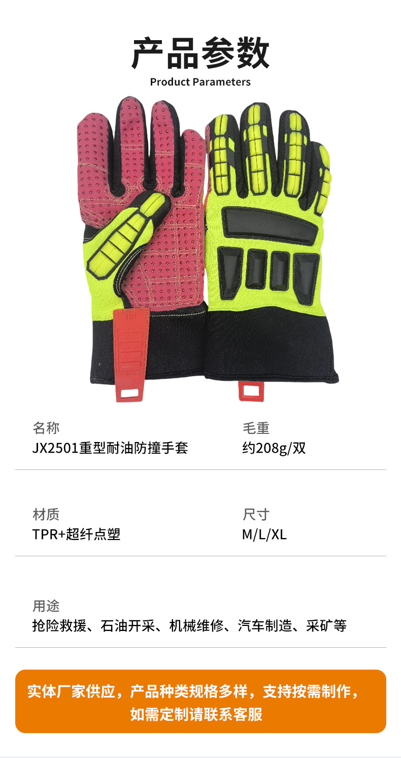 충돌 방지 구조 장갑 내마모성 미끄럼 방지 기계 중공업 내유성 충격 방지 오일필드 장갑