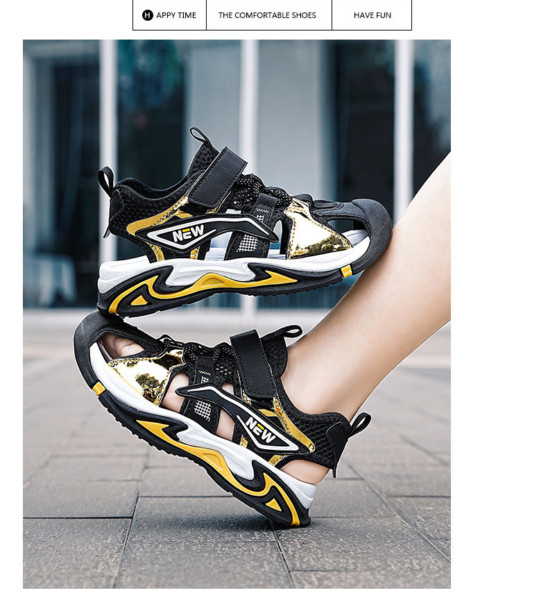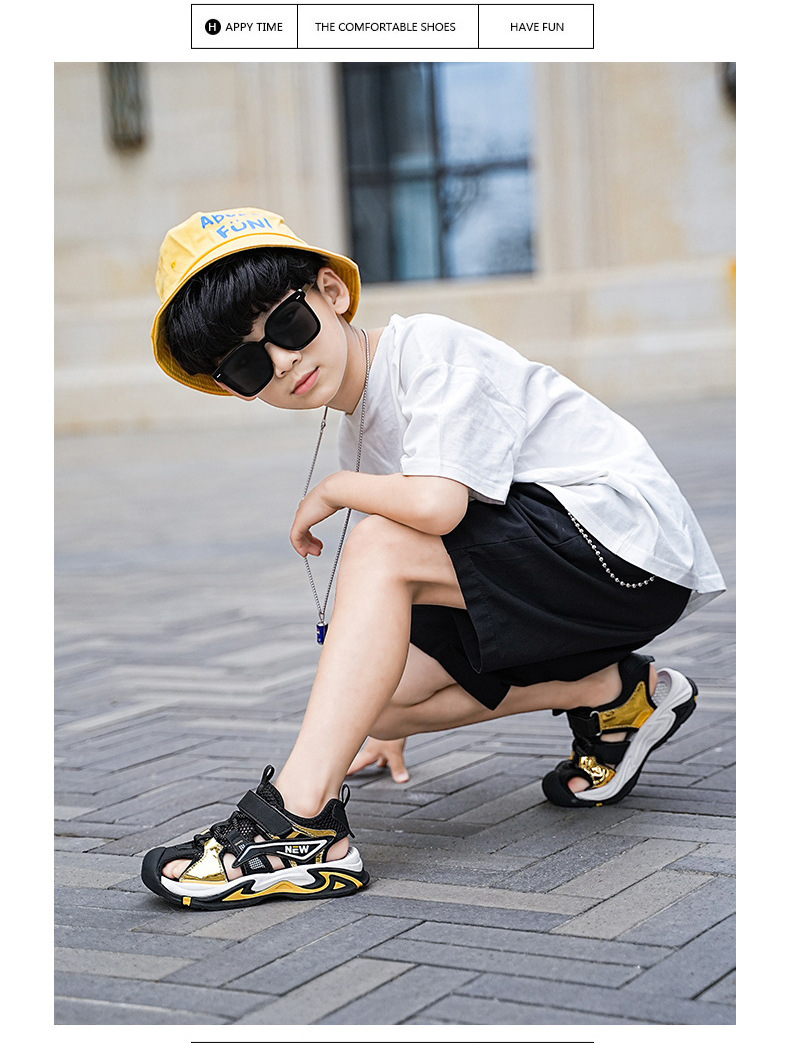 소년 신발 Baotou 샌들 여름 새로운 어린이 스포츠 샌들 큰 어린이 해변 신발 소프트 단독 미끄럼 방지 아동용 신발