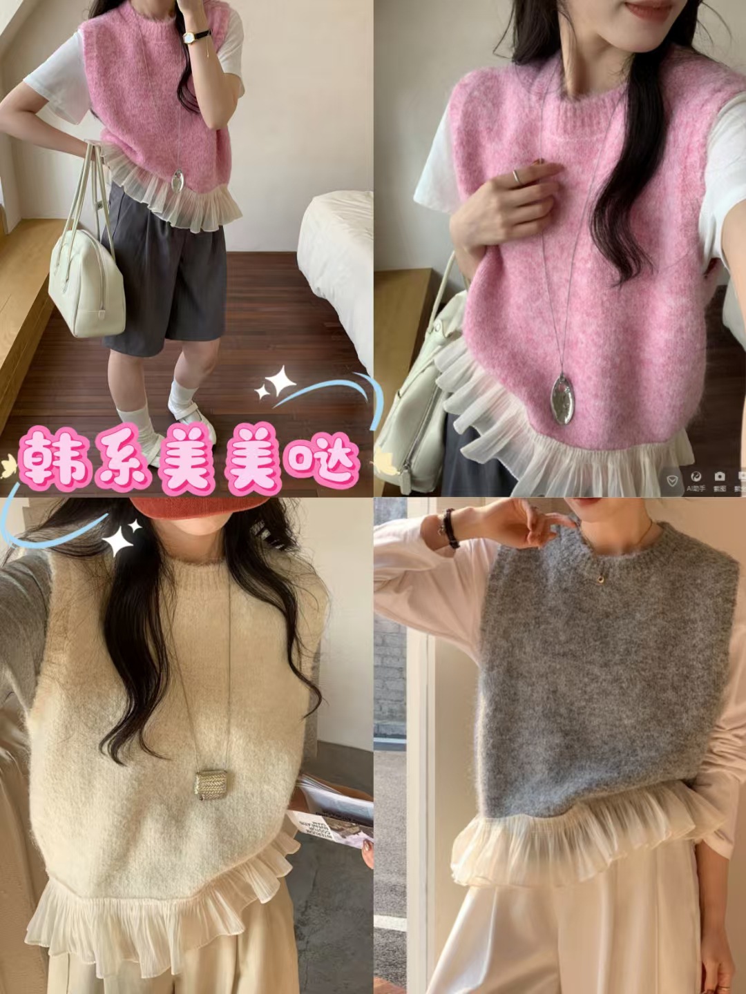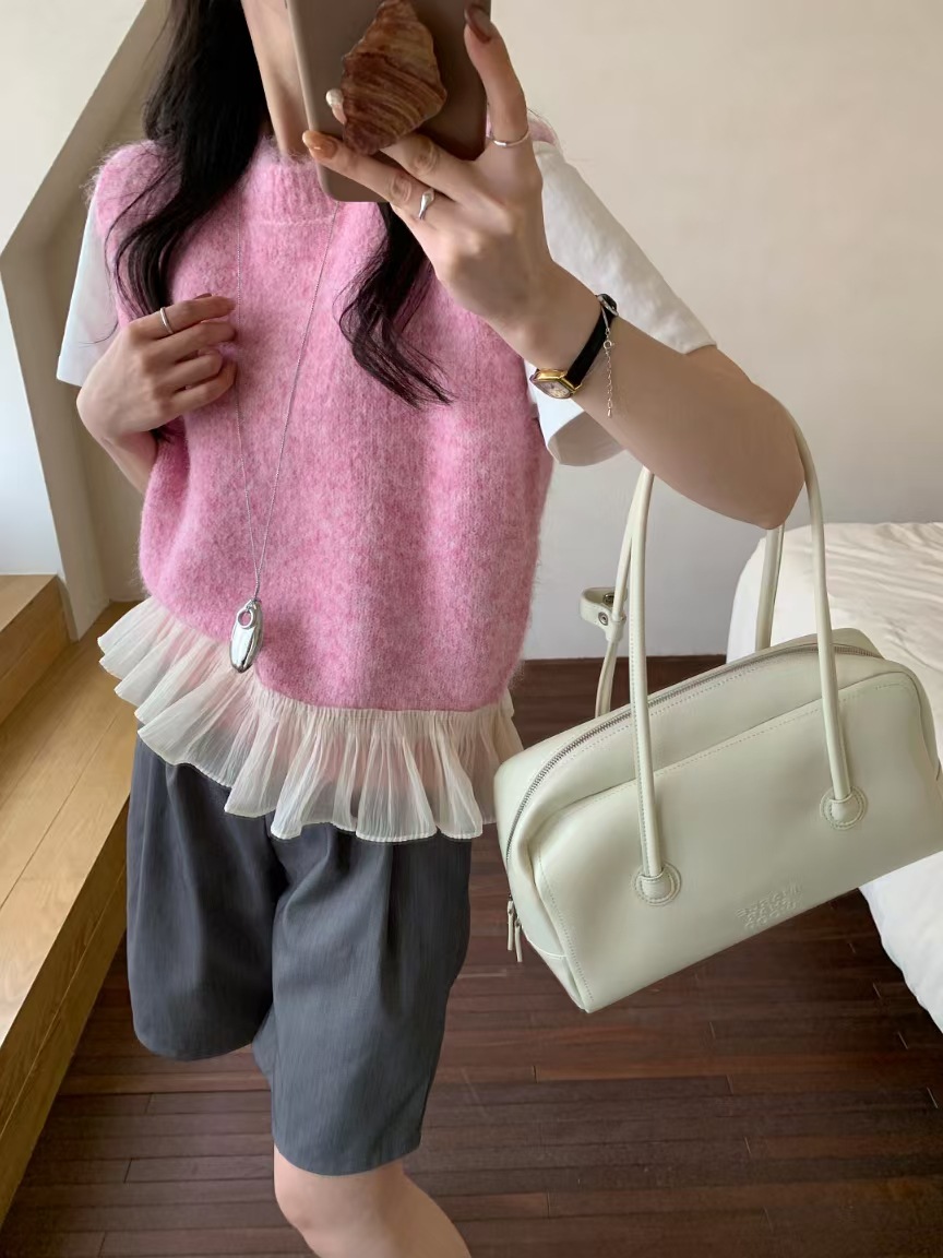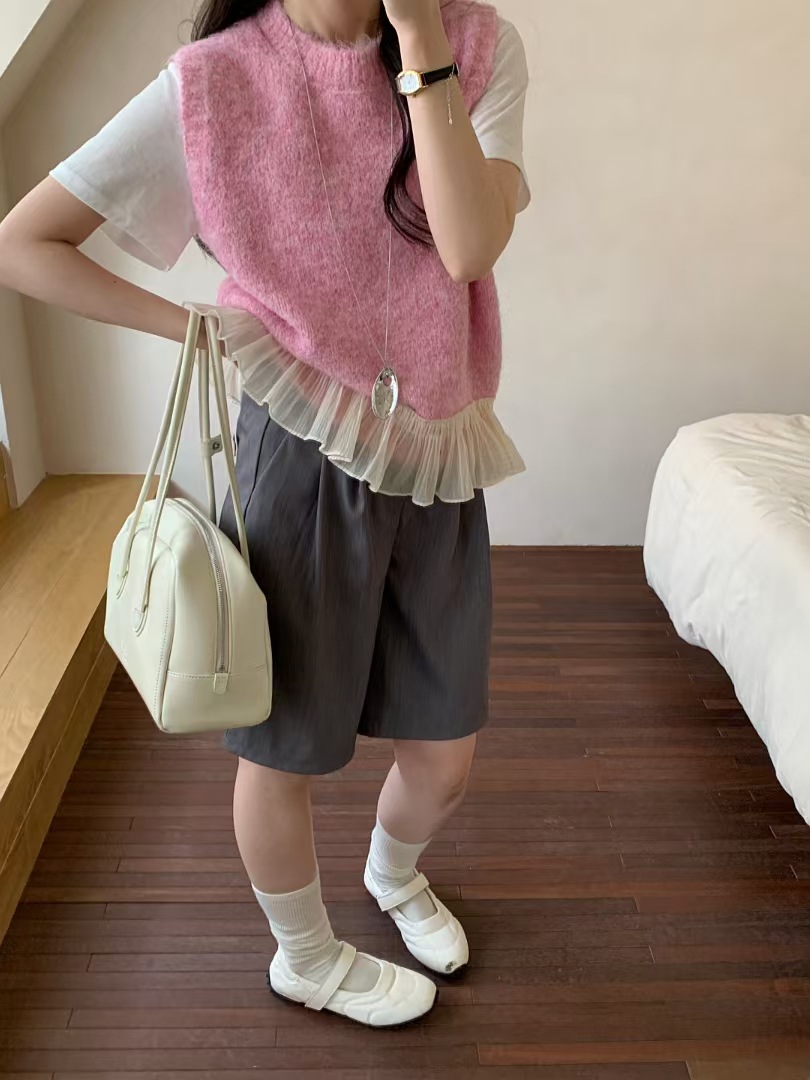 하이 퀄리티 레이스 바느질 니트 조끼 민소매 조끼 여자 봄 내부 스택 라운드 넥 쇼트 탑스토어 가기