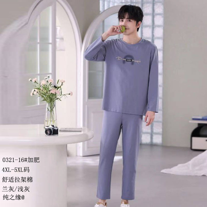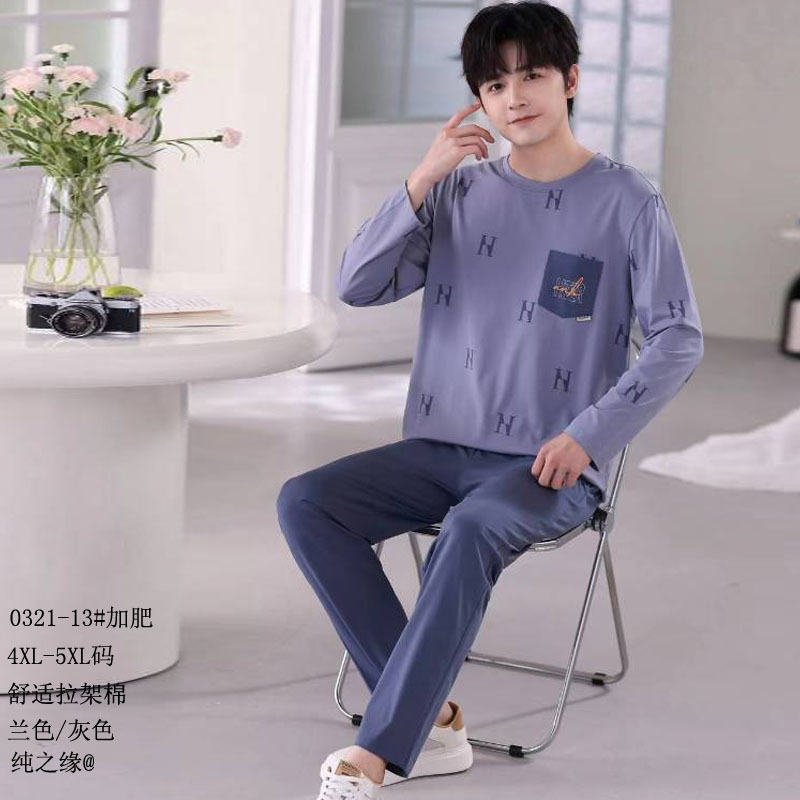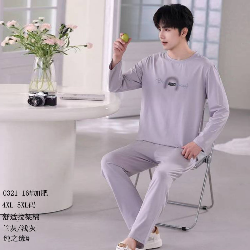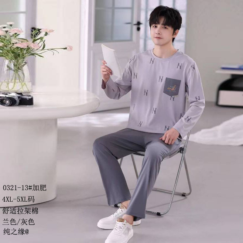 순수한 인연의 코마면 2026년 신상 플러스 사이즈 풀오버 세트 잠옷 남성용 면 긴팔 홈웨어스토어 가기