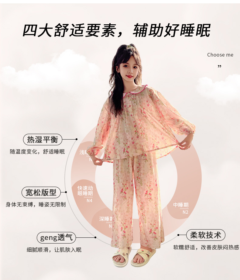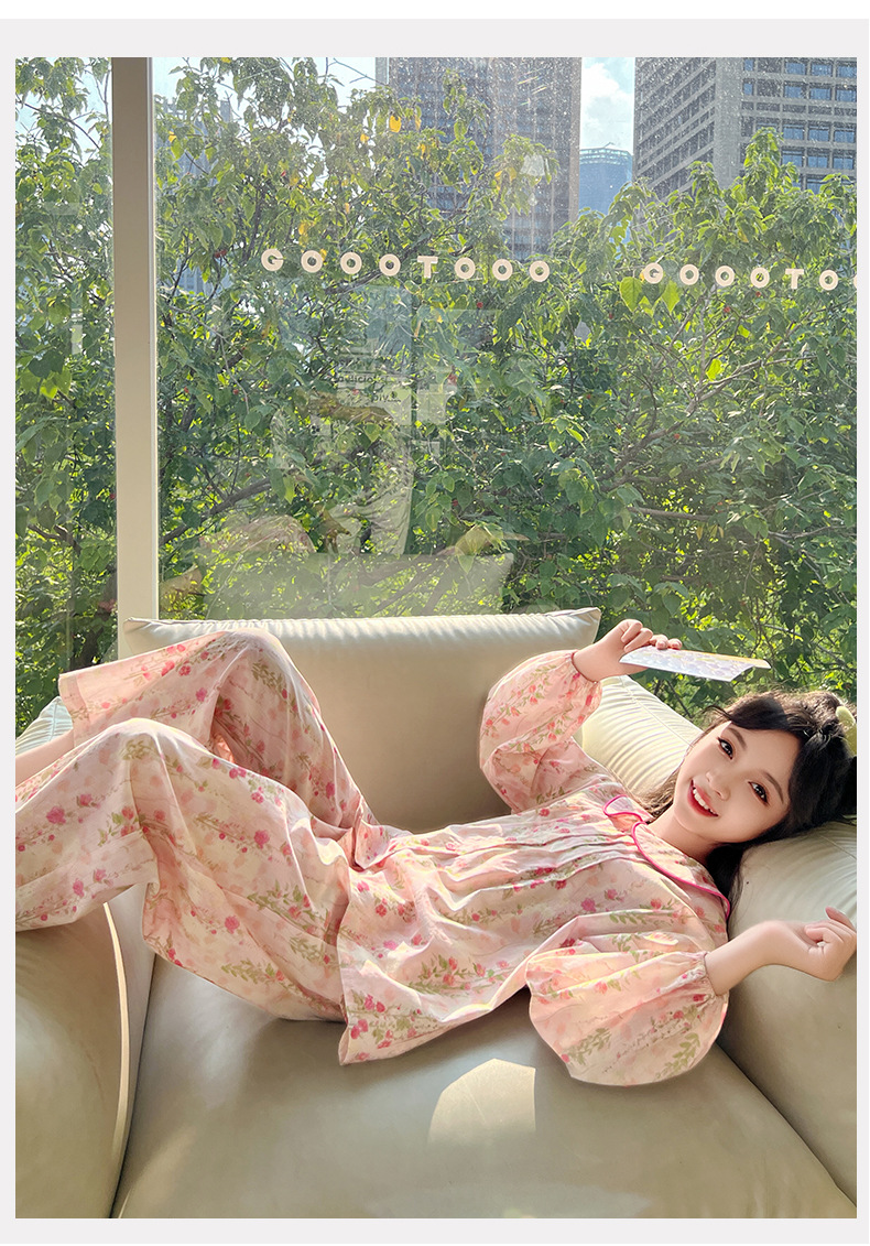 핑크색 잠옷 여아용 한국 스타일 달콤한 인형 칼라 긴팔 홈웨어 세트 중대형 어린이용 순면 꽃무늬 잠옷스토어 가기
