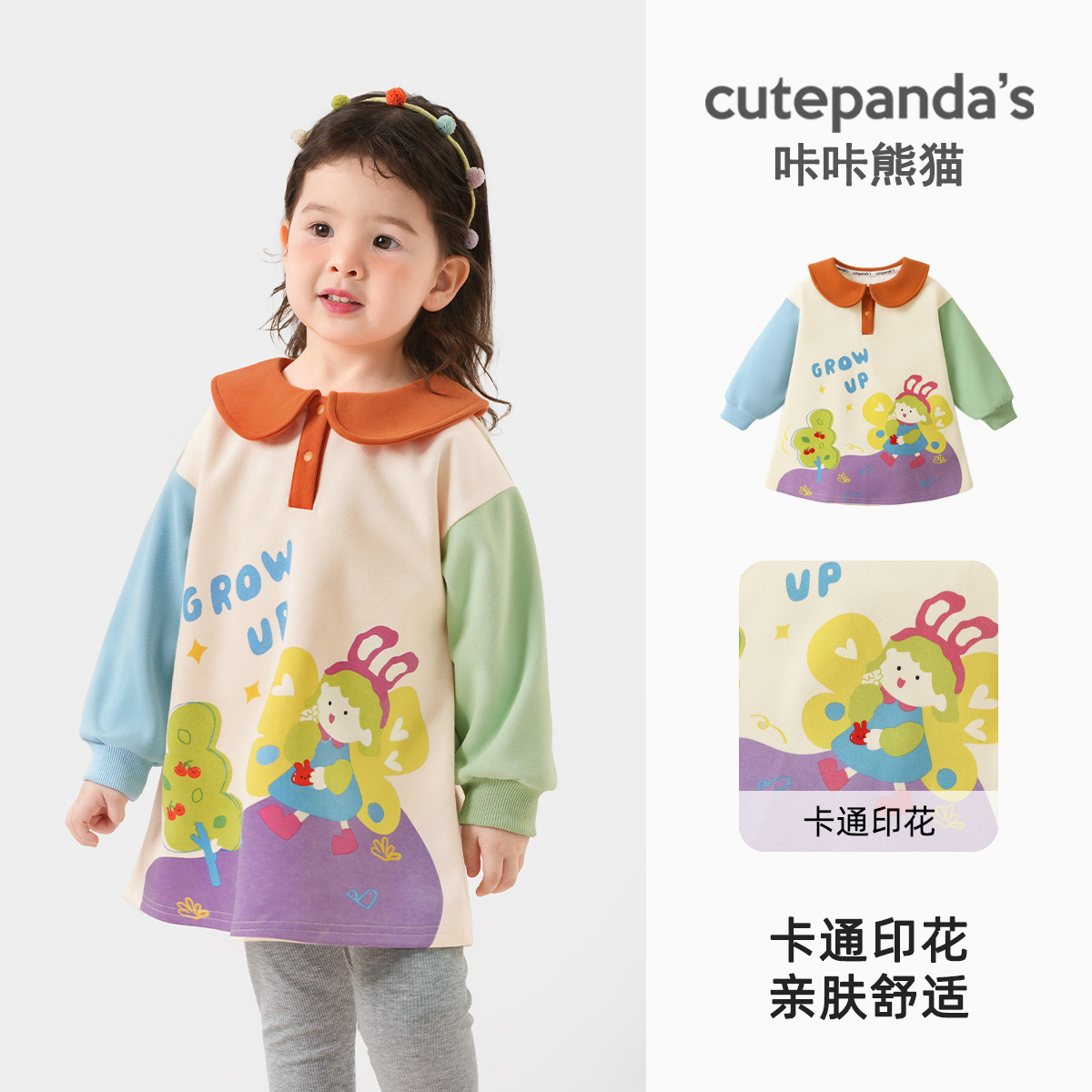Kaka Panda 아기 옷 소녀 긴팔 스웨트 스커트 가을 의류 봄, 가을 아기 소녀 드레스 소녀 스커트 유행스토어 가기
