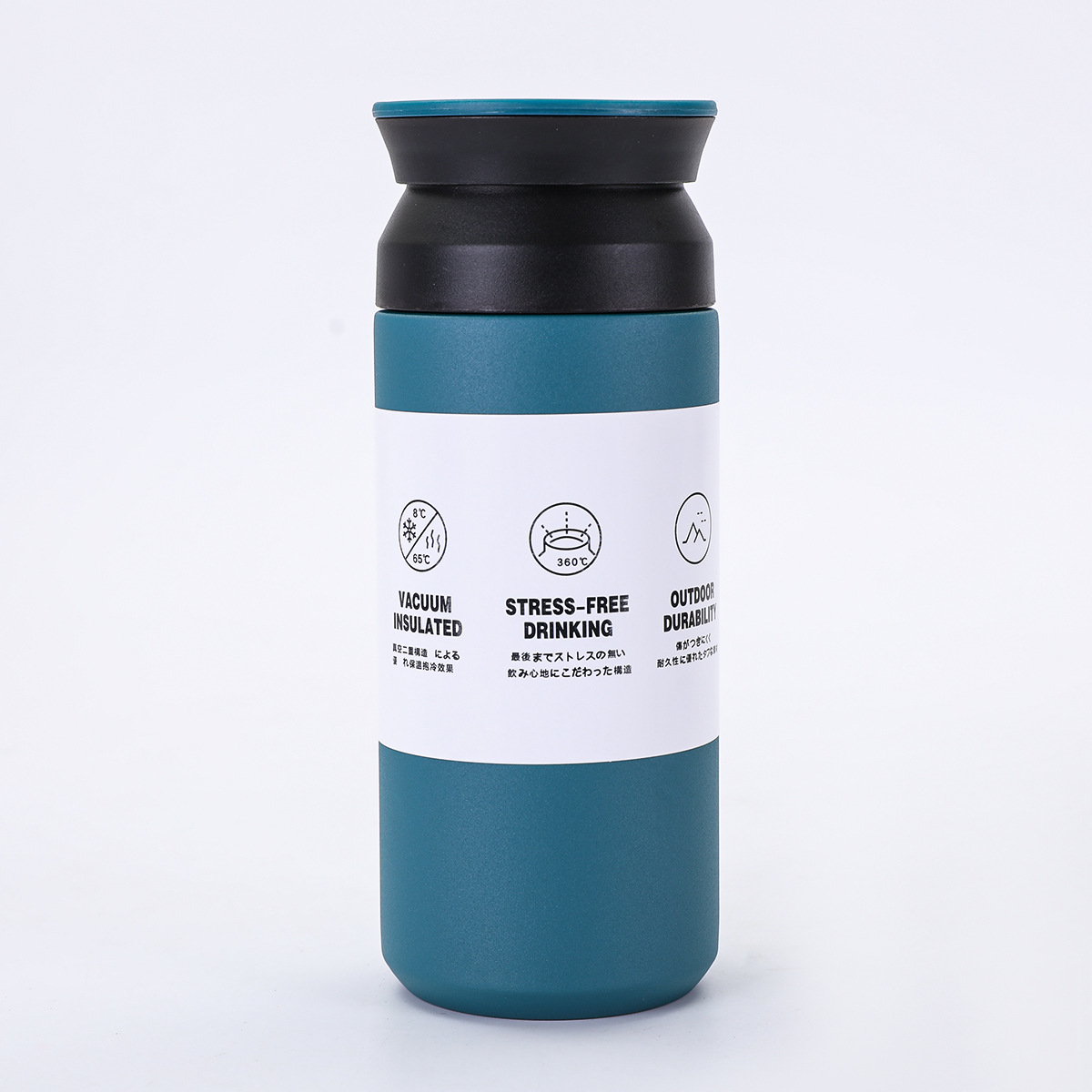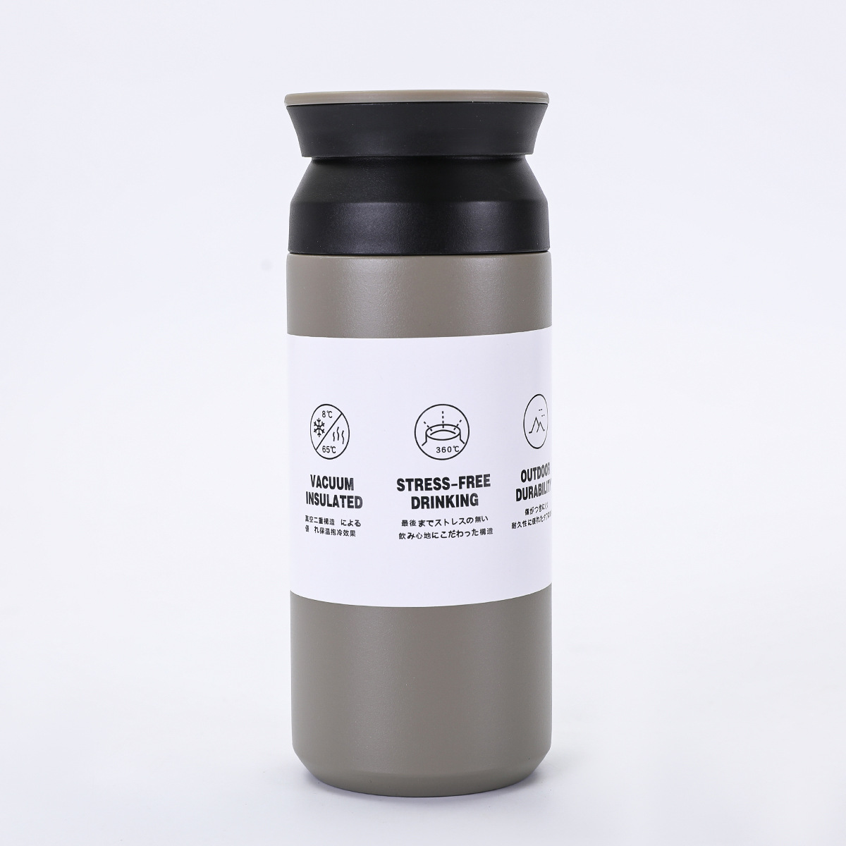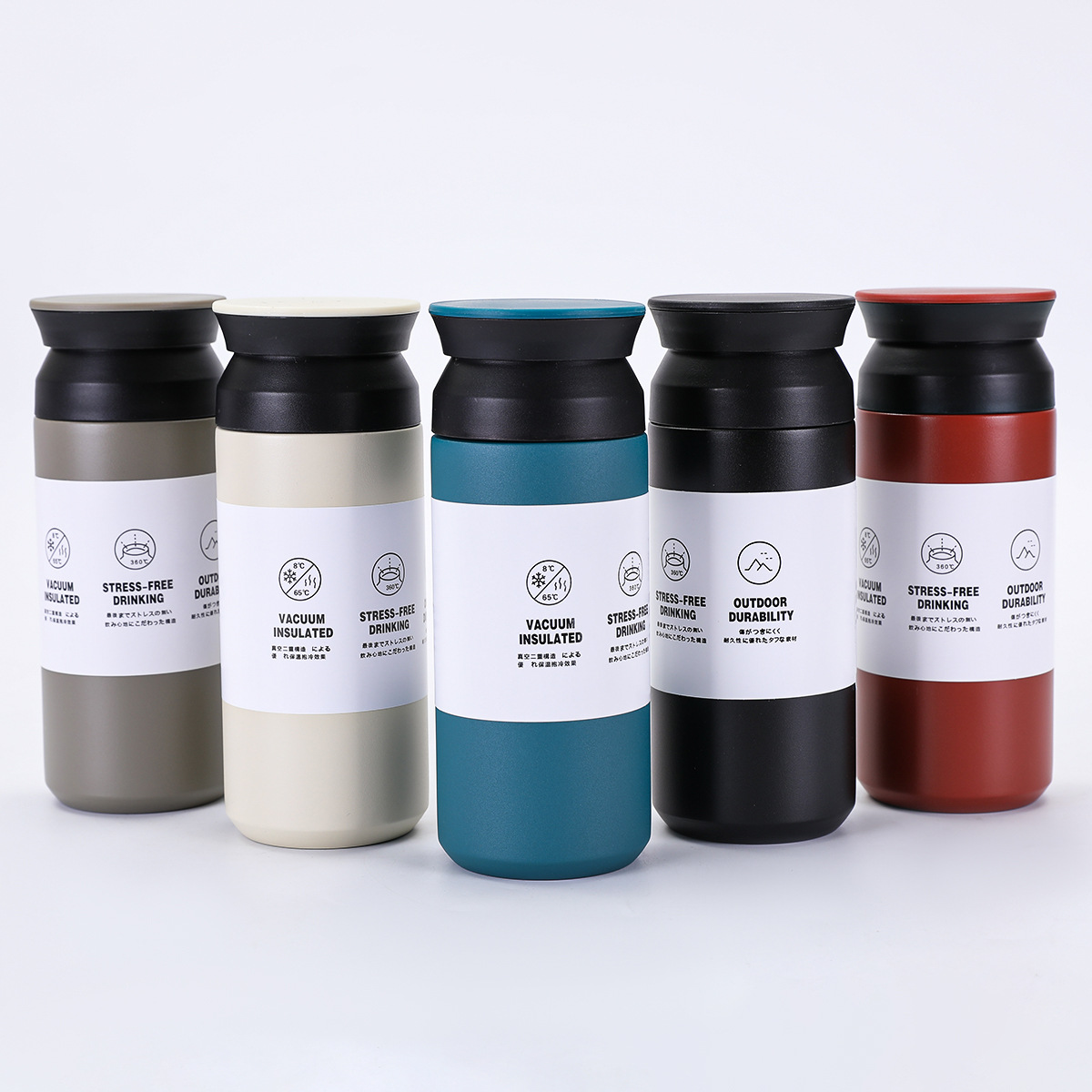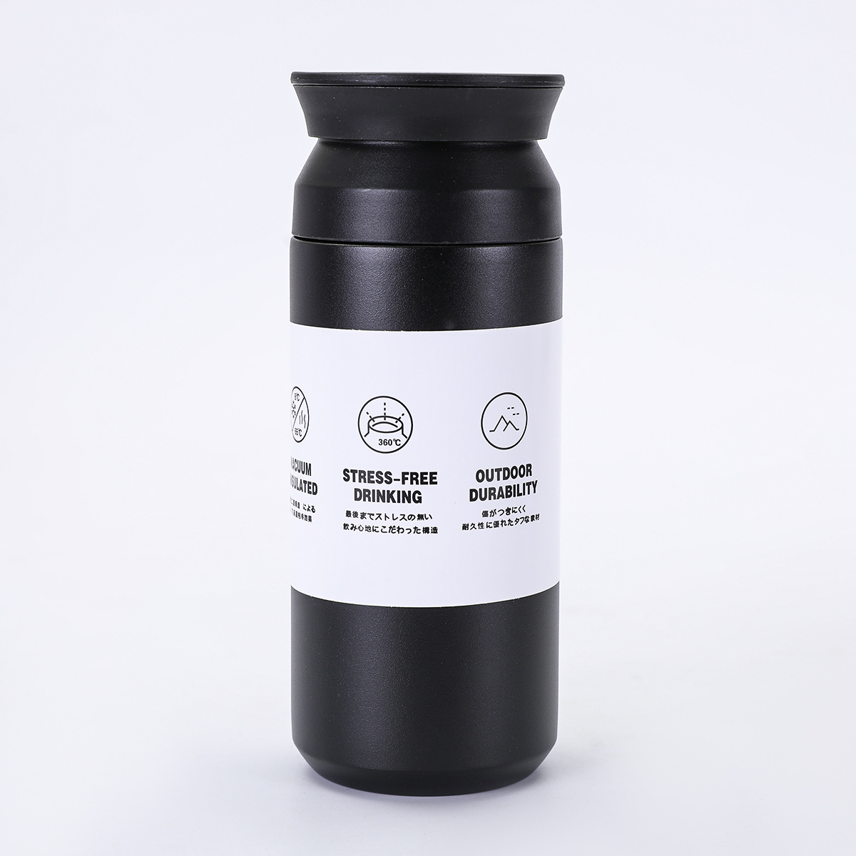새로운 일본 요소 컵 평면 뚜껑 간단한 동반 물 컵 휴대용 304 스테인레스 스틸 더블 레이어 진공 보온병 컵