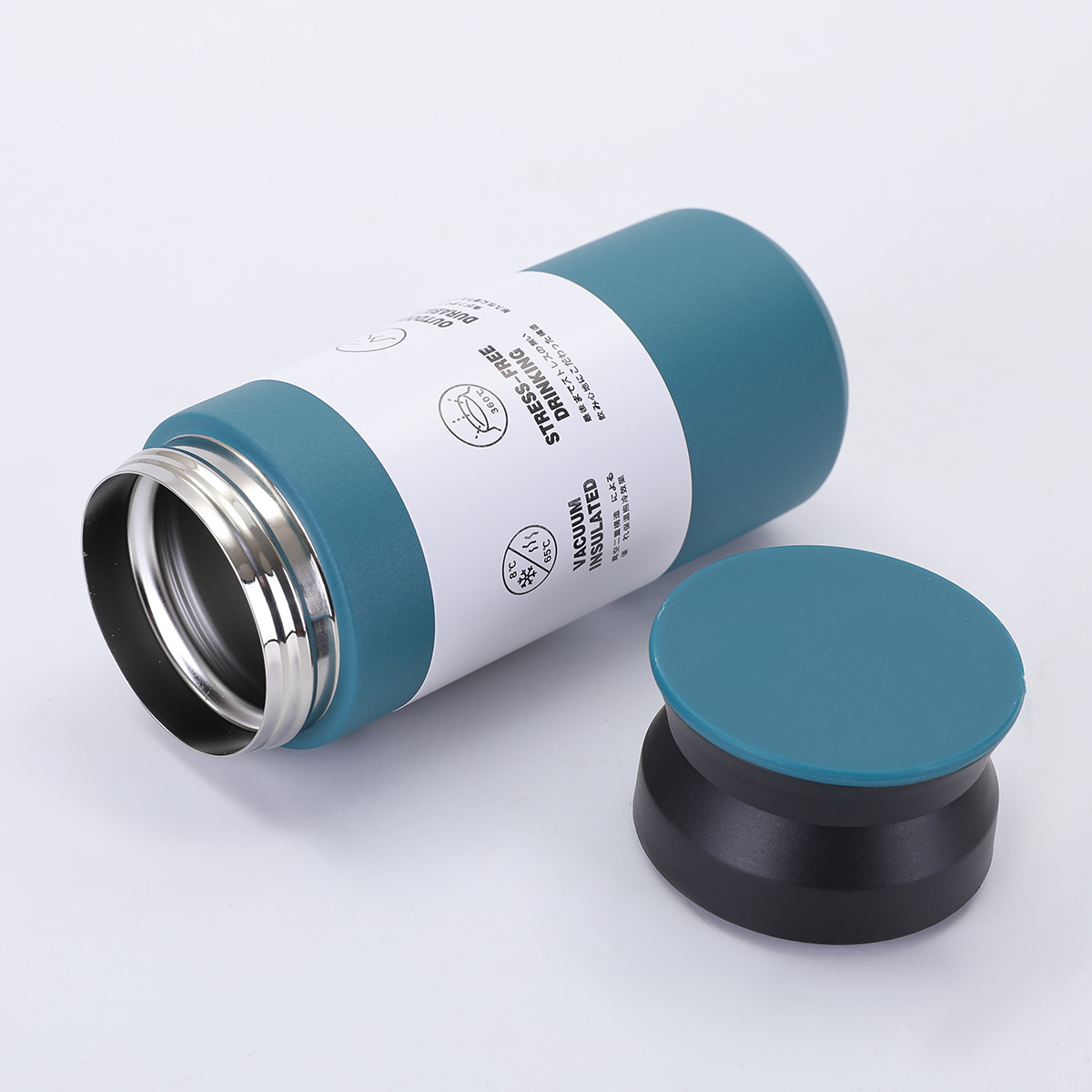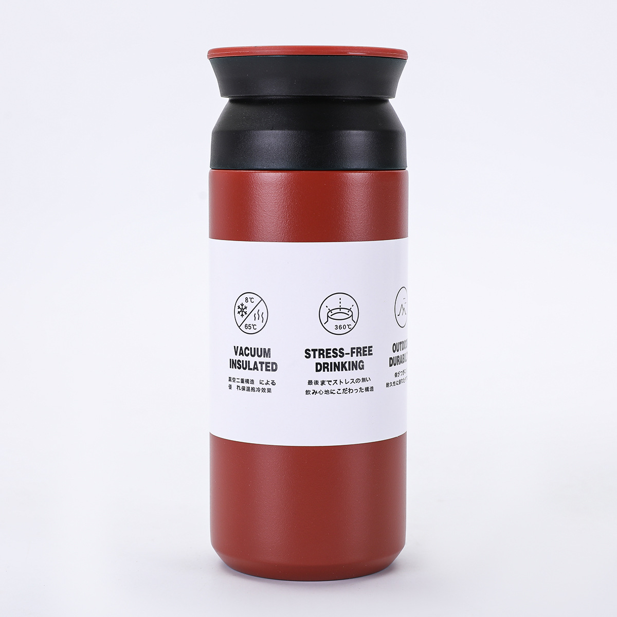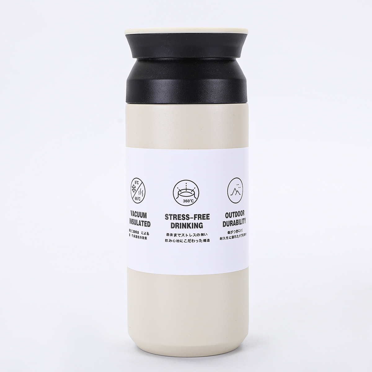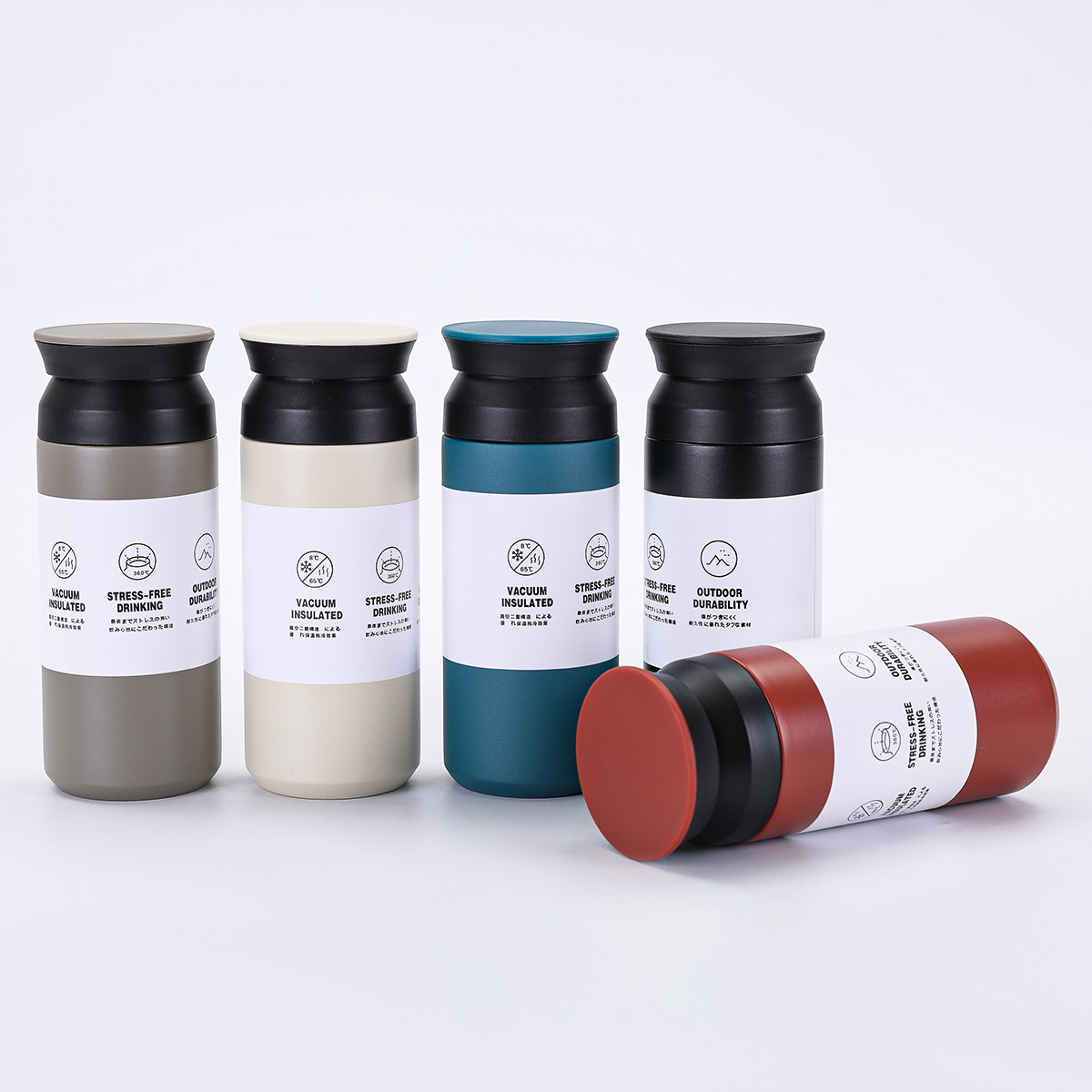새로운 일본 요소 컵 평면 뚜껑 간단한 동반 물 컵 휴대용 304 스테인레스 스틸 더블 레이어 진공 보온병 컵