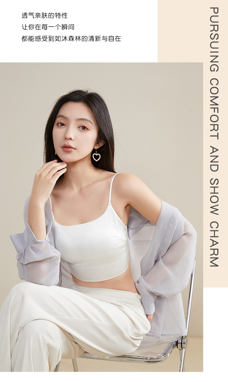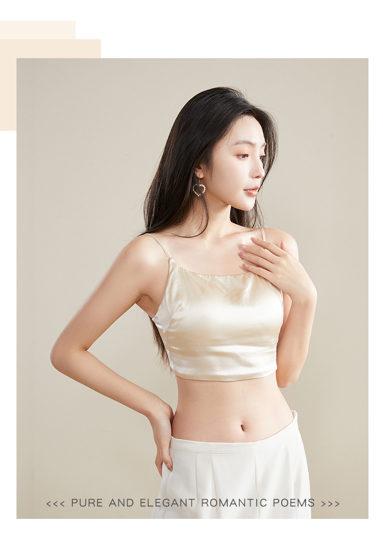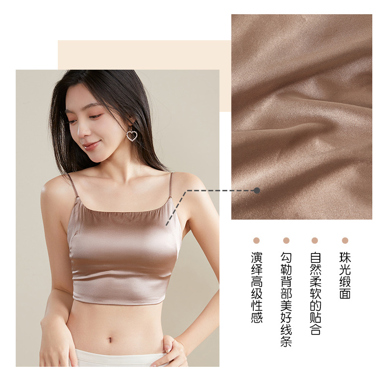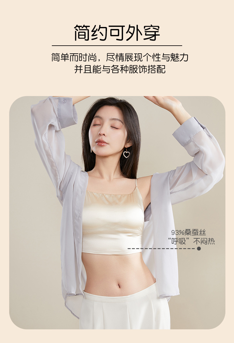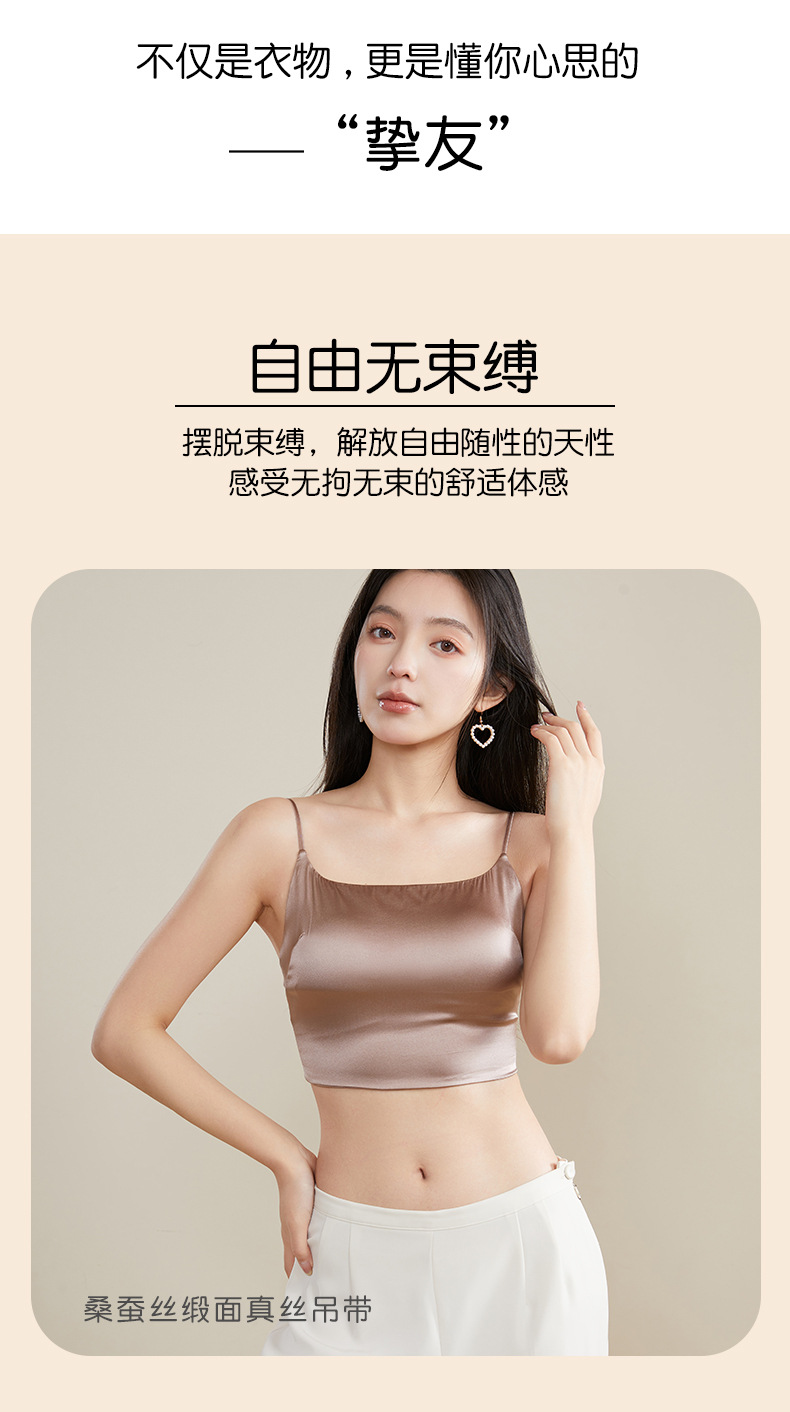 Haosangyuan 뽕나무 실크 서스펜더 브라 바닥 여름 와이어 프리 올인원 슬림하고 편안한 조끼 2506스토어 가기