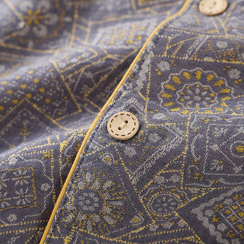 새로운 남성용 면 원사 염색 거즈 여름 반팔 반바지 파자마 얇은 면 세척 가능한 면 외부 착용 홈 의류스토어 가기
