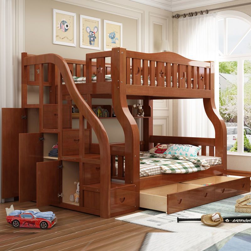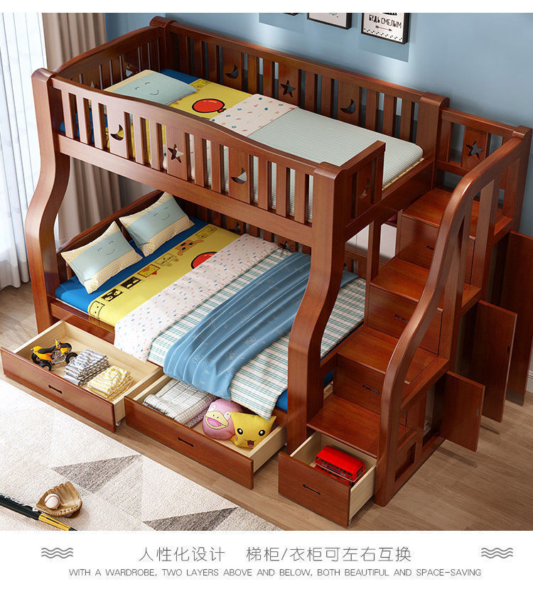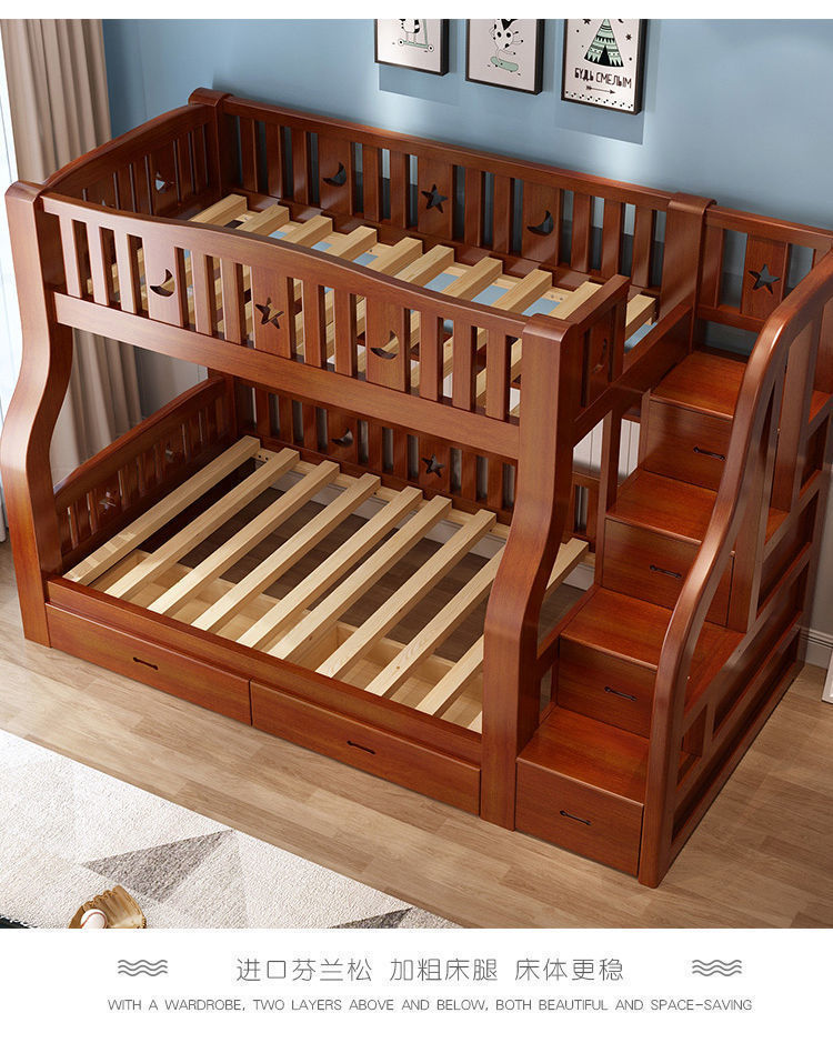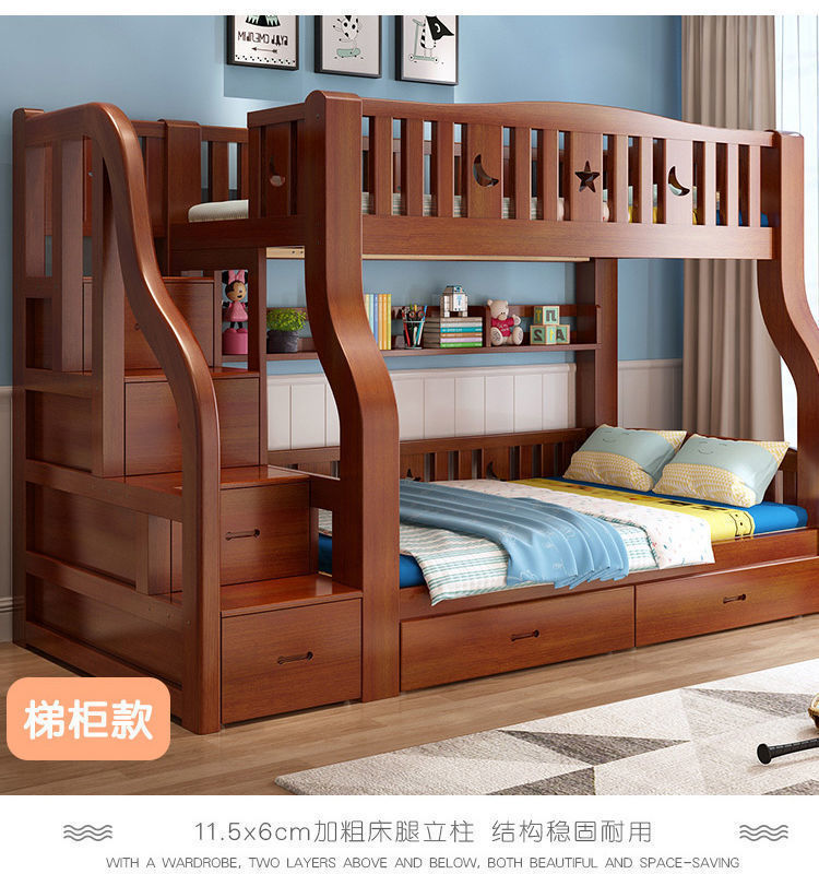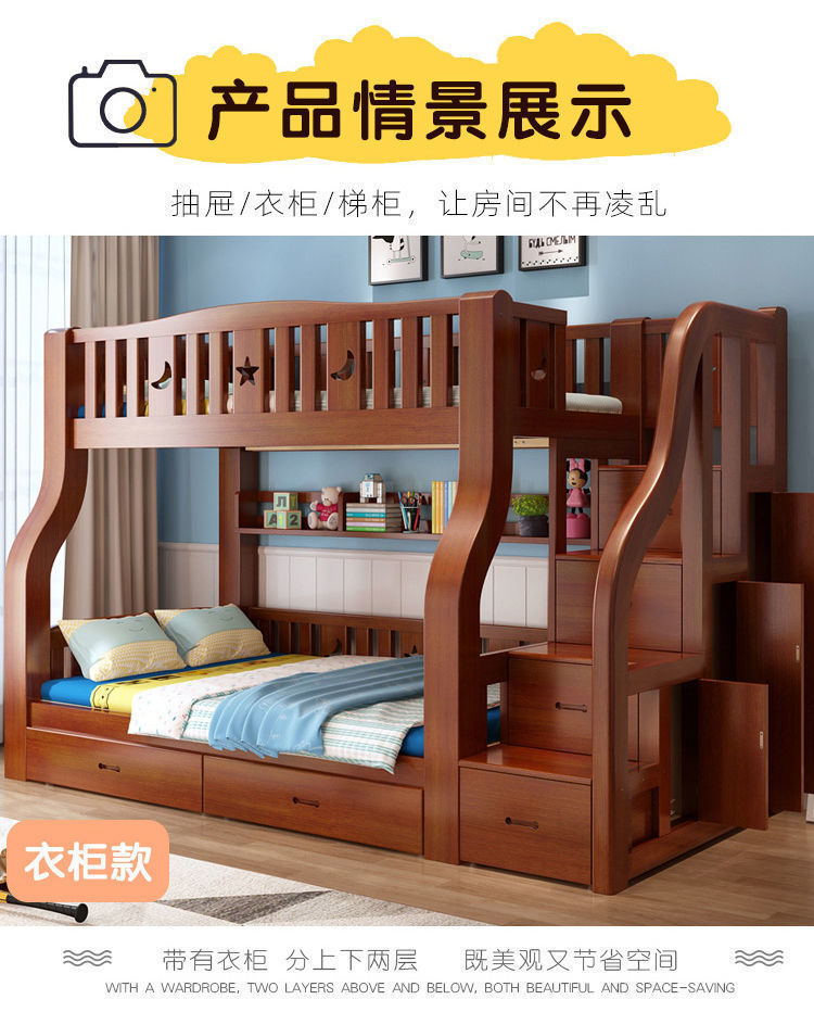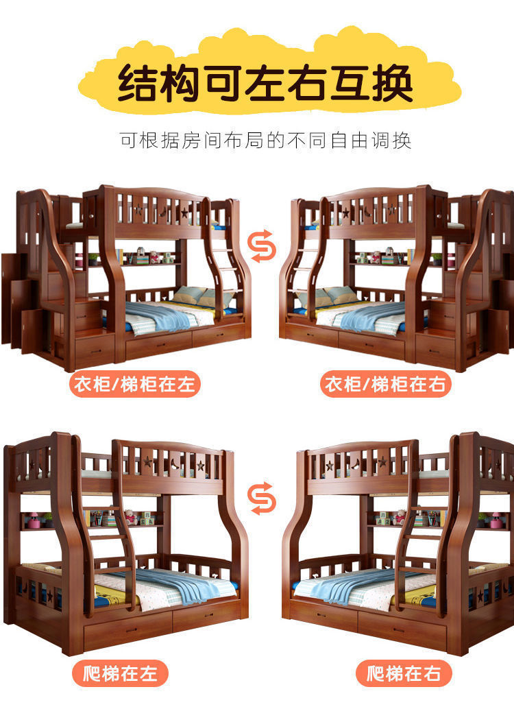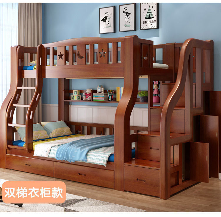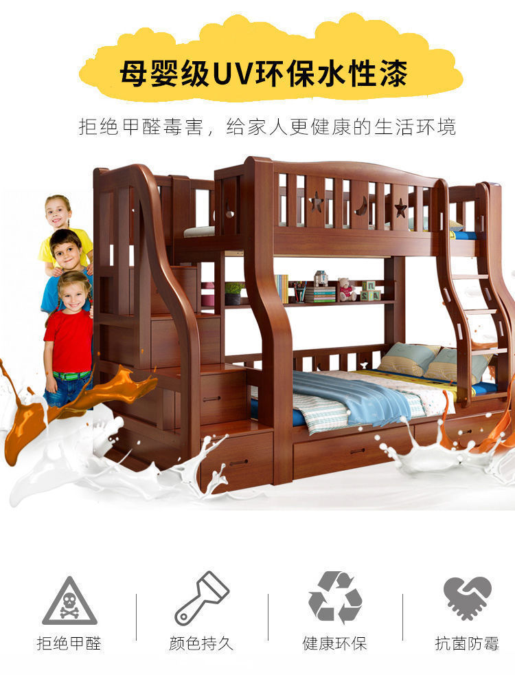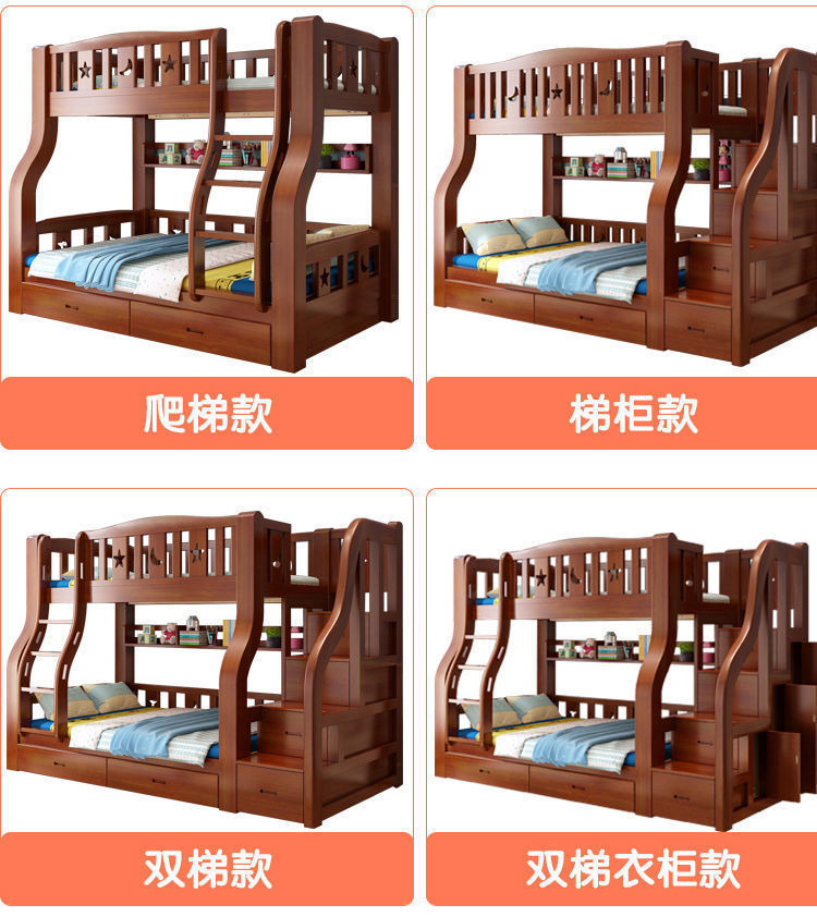 모든 단단한 나무 침대 2 층 침대 다기능 높은 낮은 침대 더블 레이어 어머니-아이 침대 등반 사다리 위아래 침대 나무 침대 어린이 침대