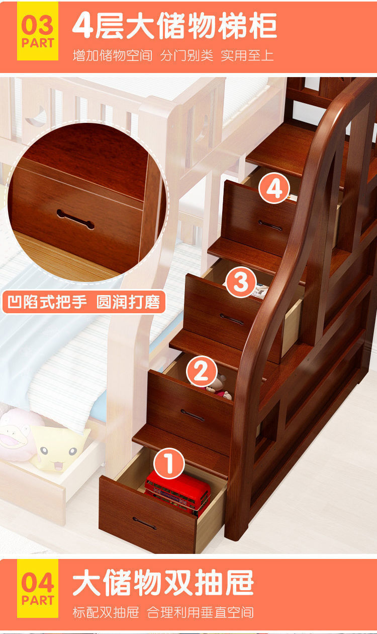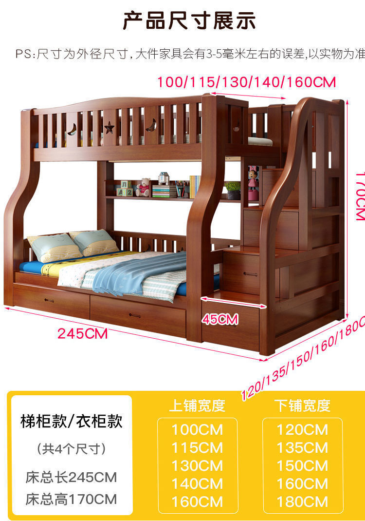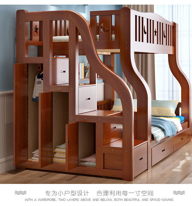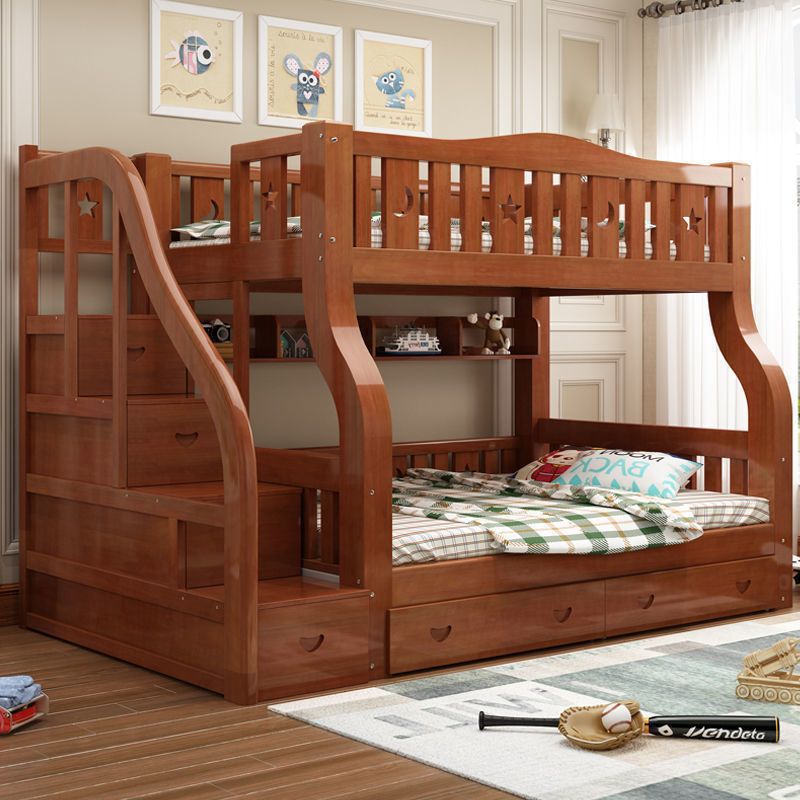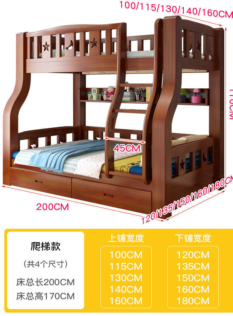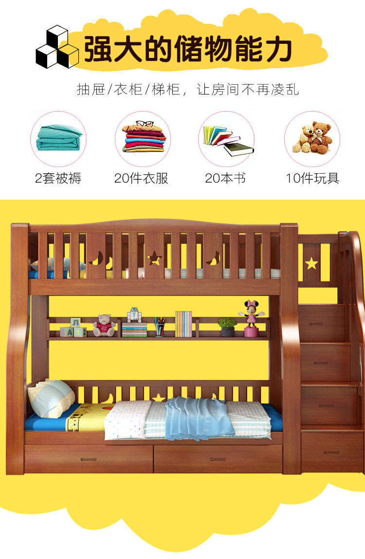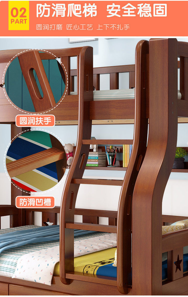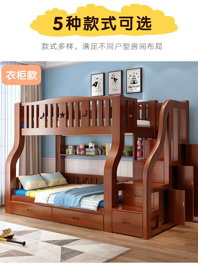 모든 단단한 나무 침대 2 층 침대 다기능 높은 낮은 침대 더블 레이어 어머니-아이 침대 등반 사다리 위아래 침대 나무 침대 어린이 침대