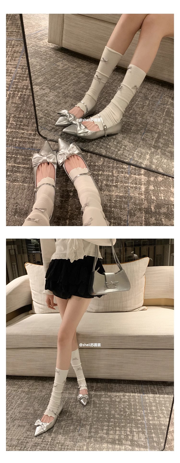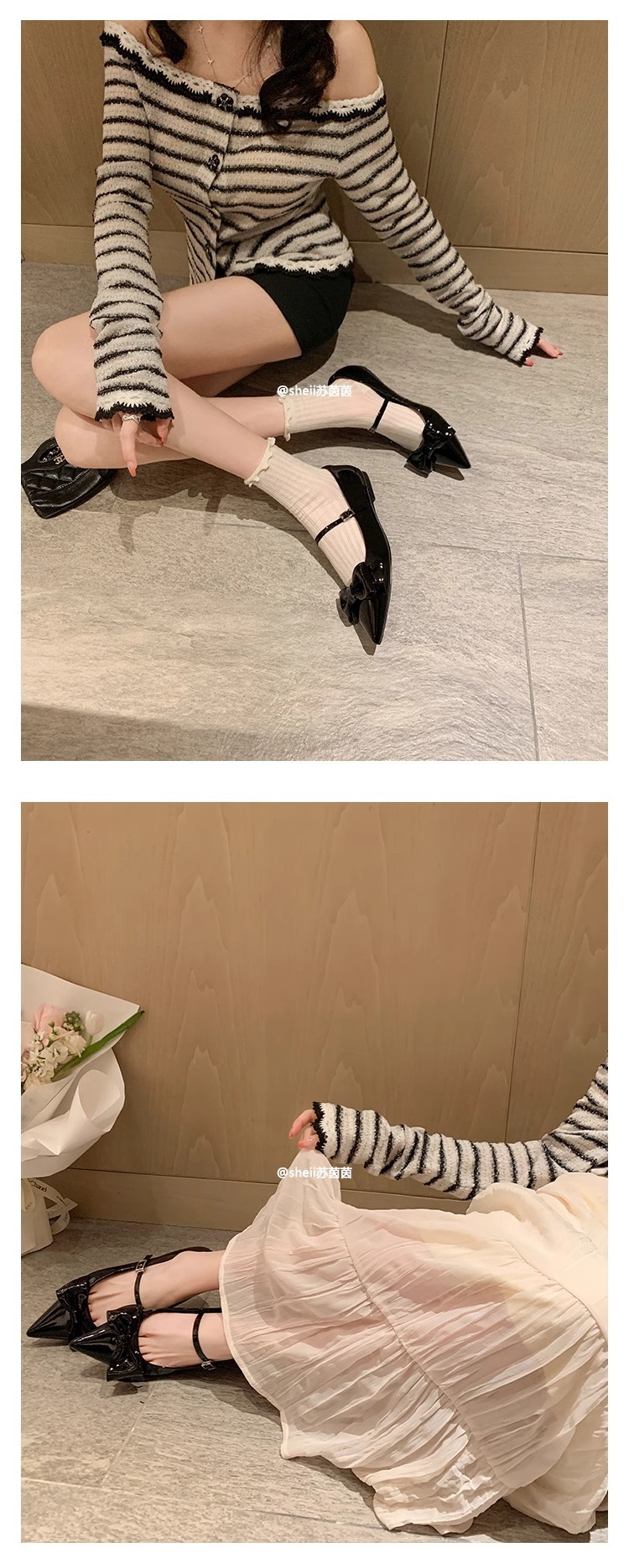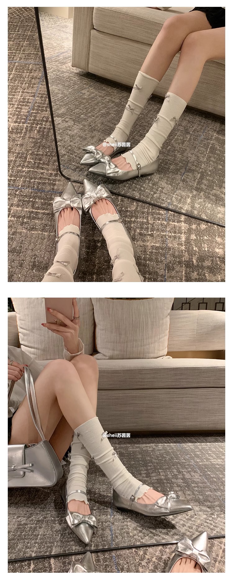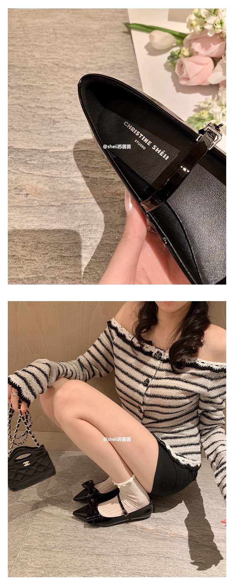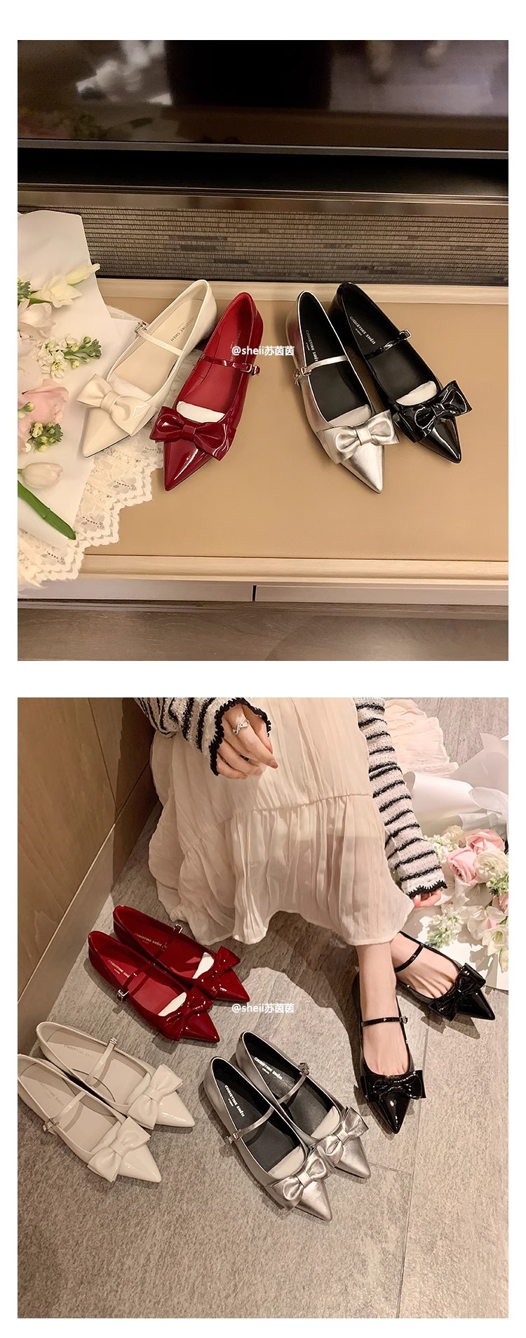 재고 있음~수인인과 같은 스타일의 봄용 뾰족코 리본 플랫 메리제인 여성용 통근화