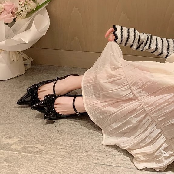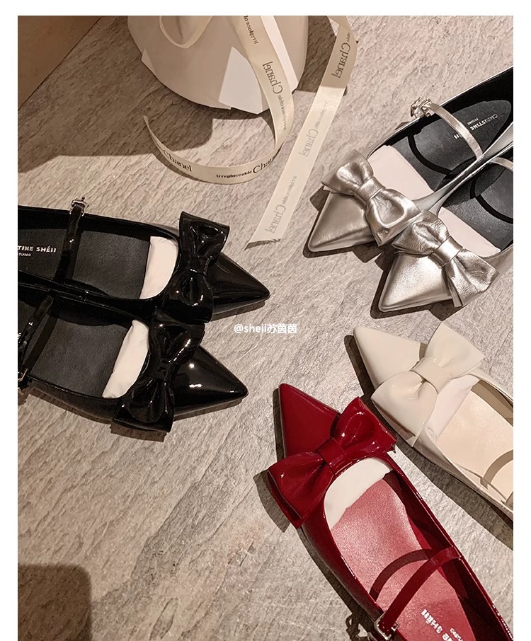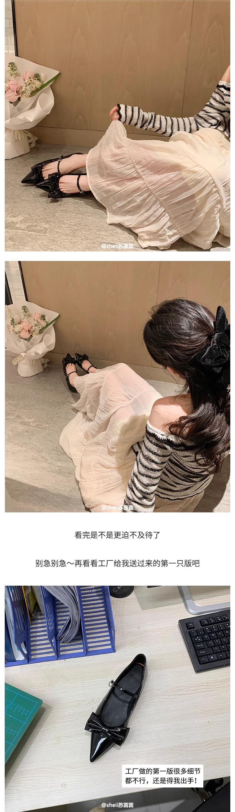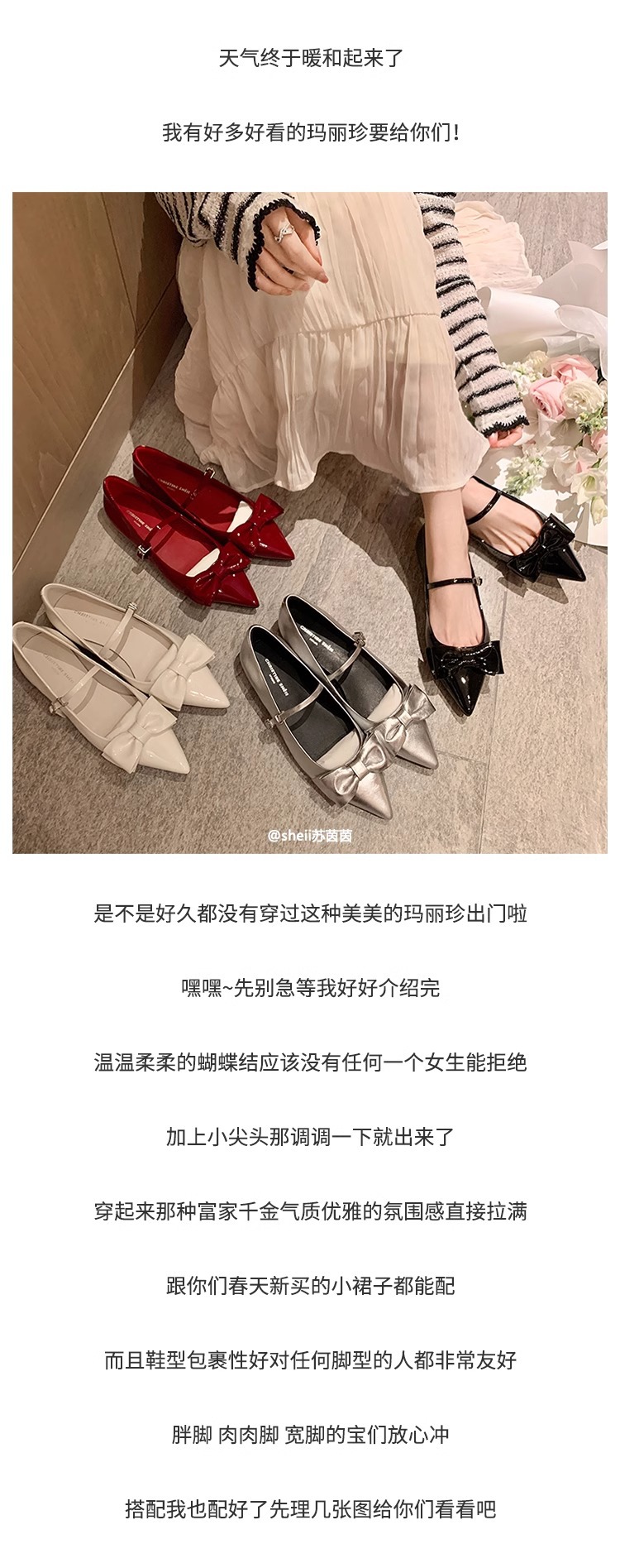 재고 있음~수인인과 같은 스타일의 봄용 뾰족코 리본 플랫 메리제인 여성용 통근화스토어 가기