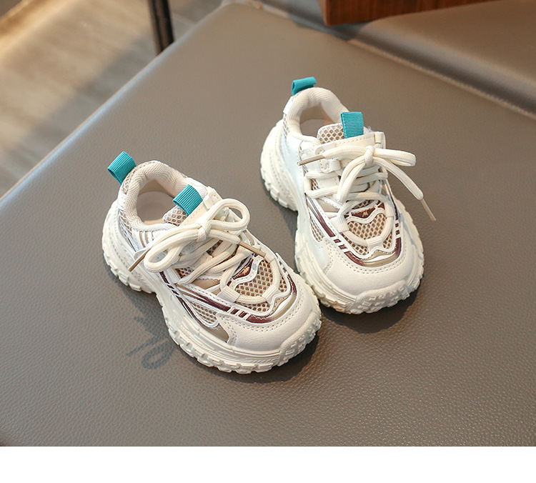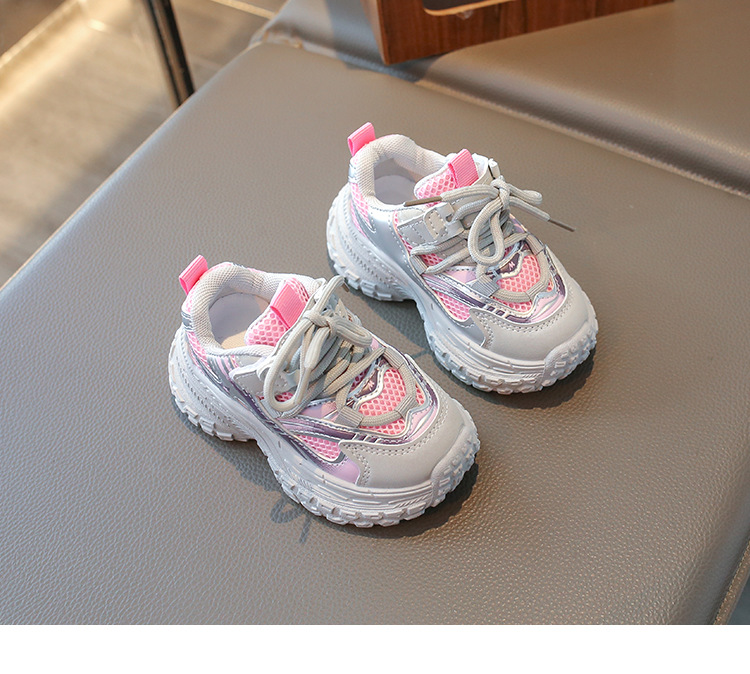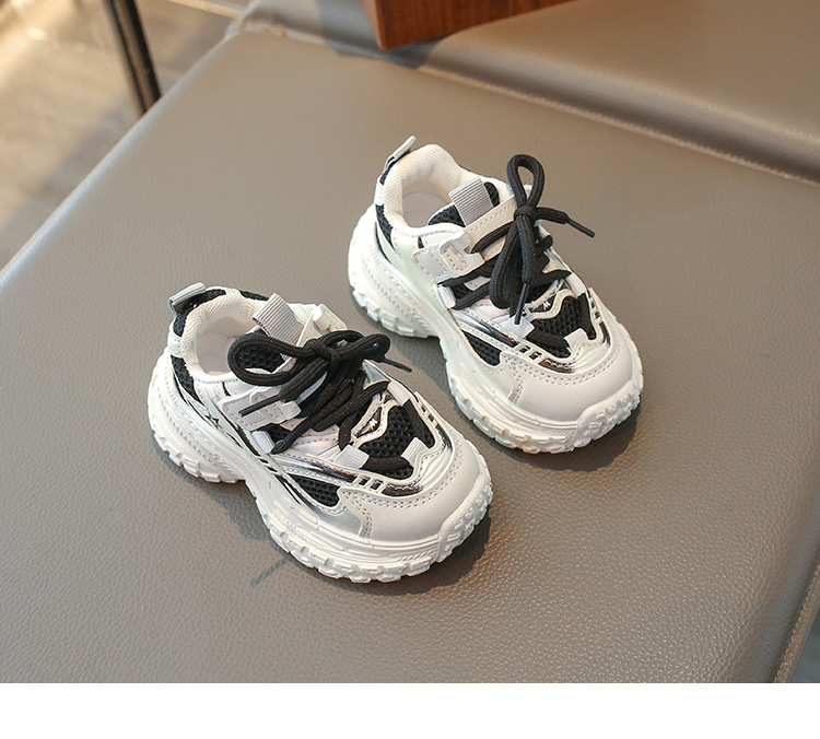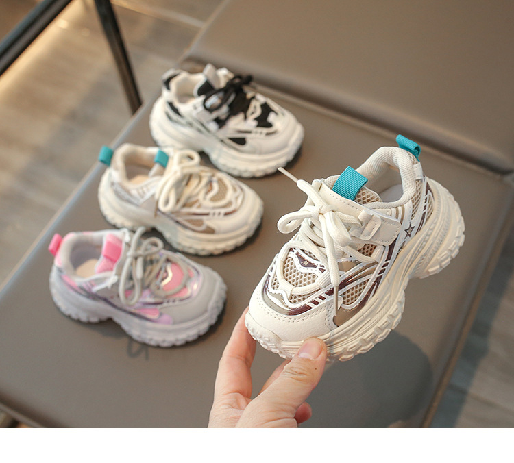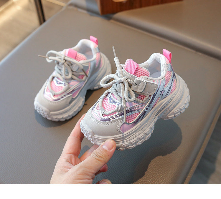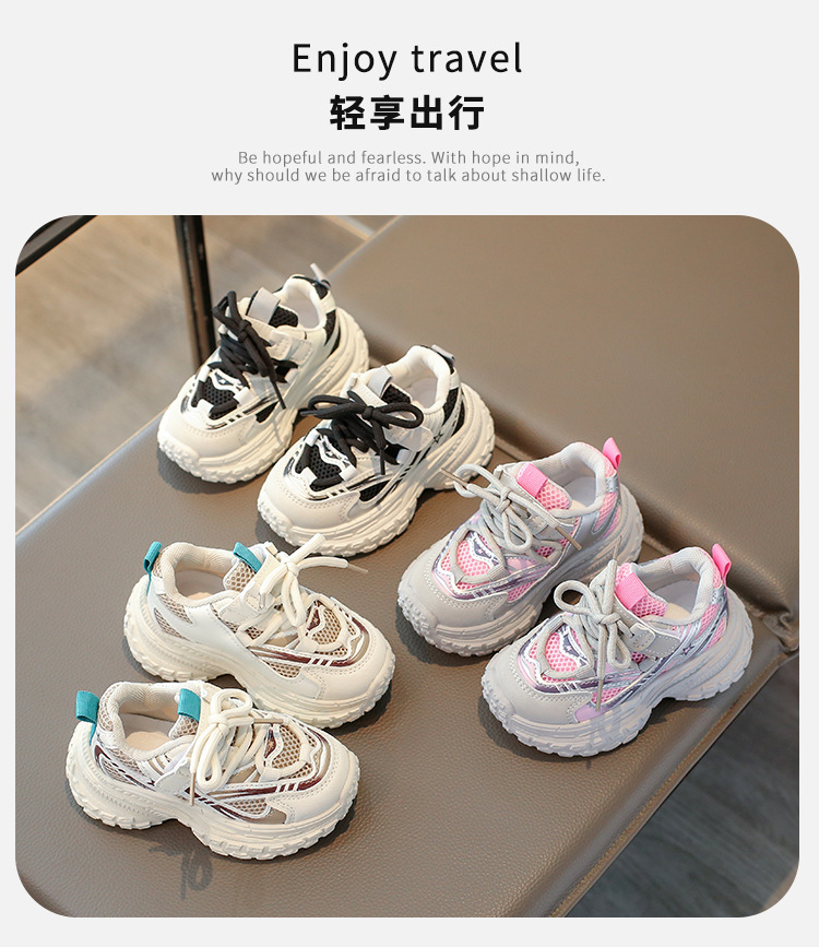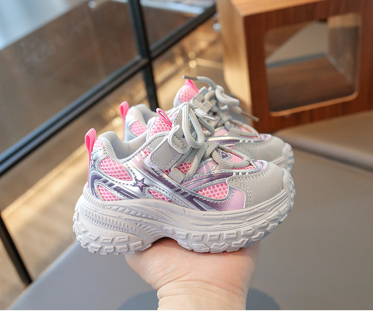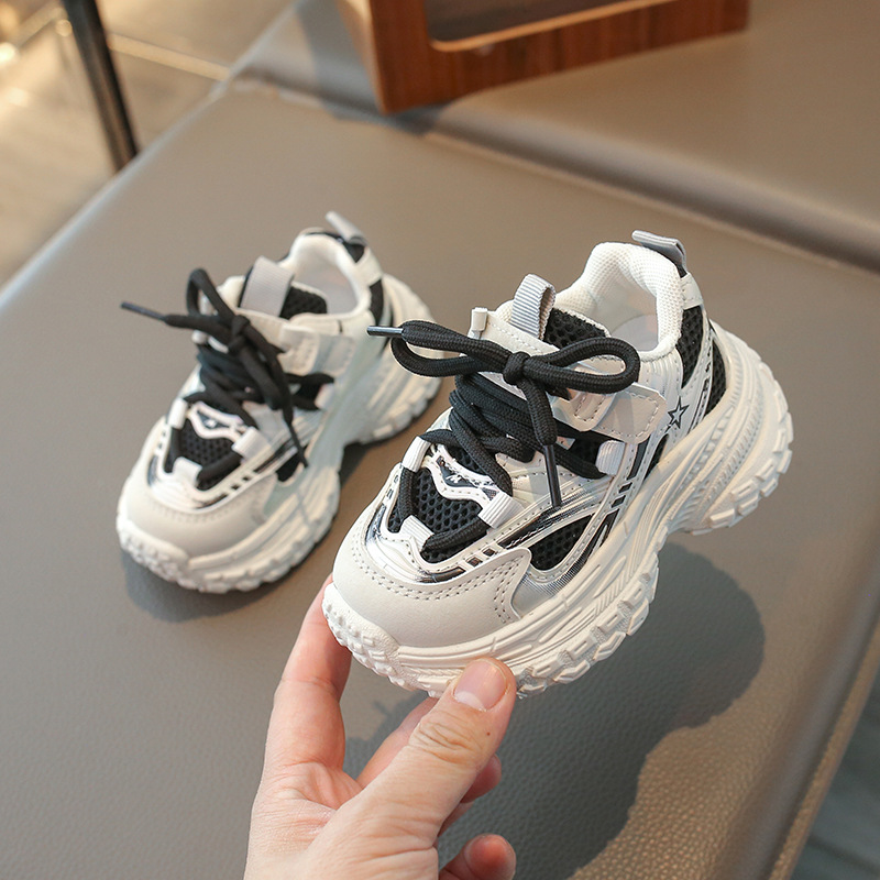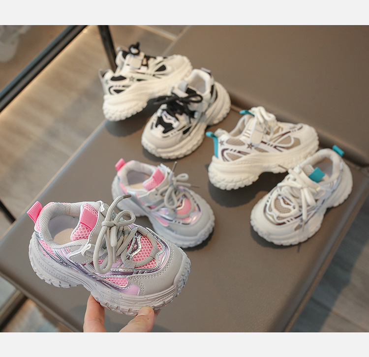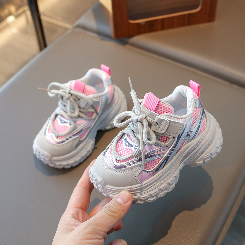 2025 봄 새 소년 소녀 운동화 아버지 신발 미끄럼 방지 다용도 스트라이프 신발 어린이 더블 넷 라이트 신발