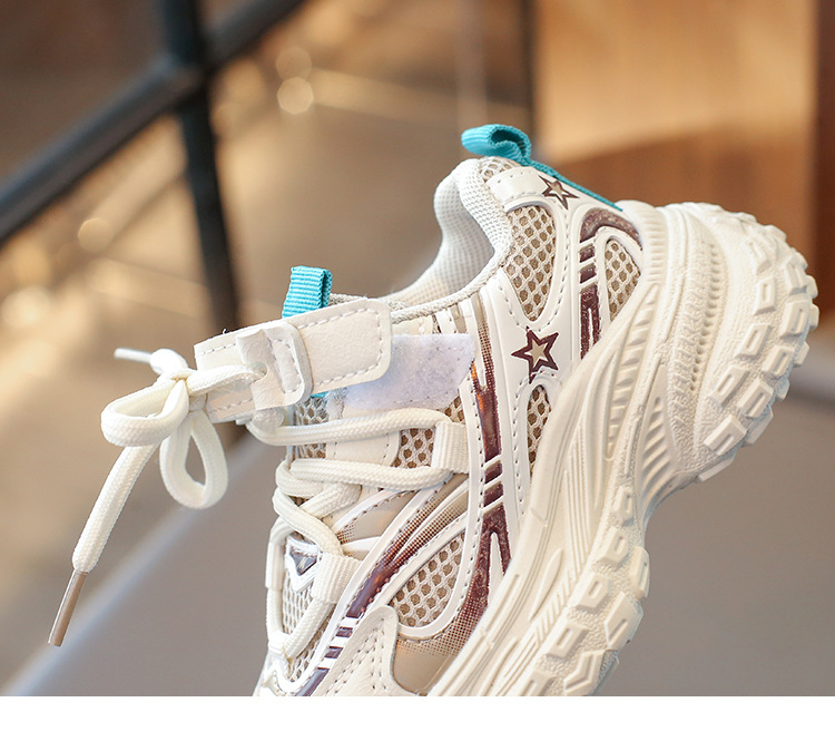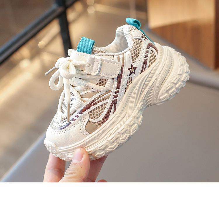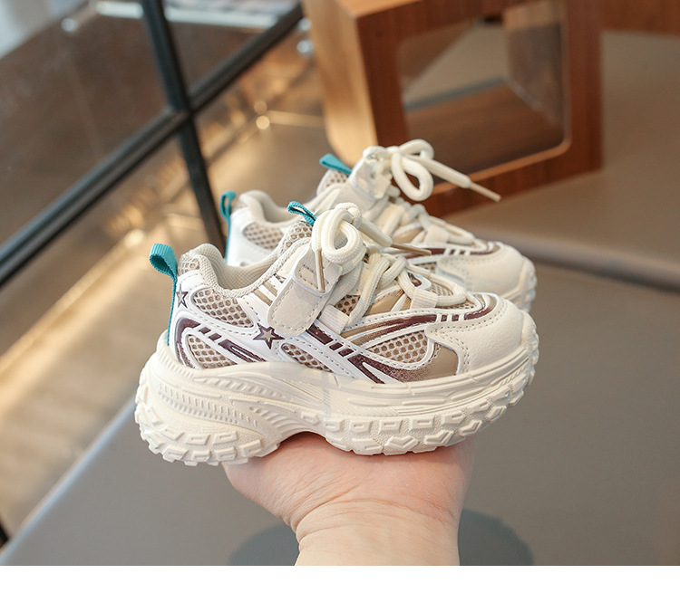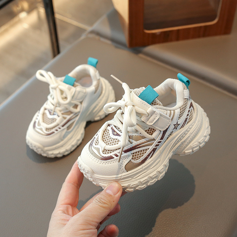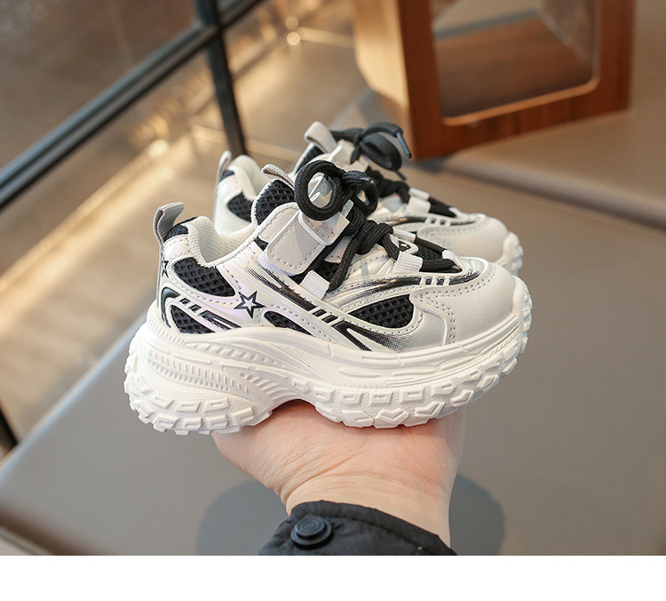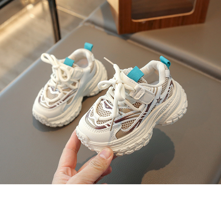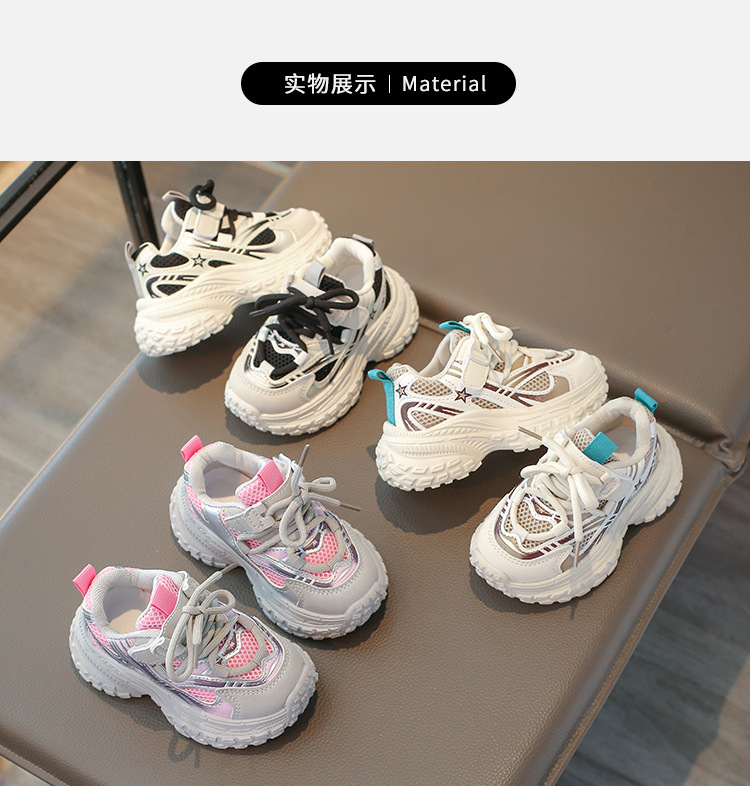 2025 봄 새 소년 소녀 운동화 아버지 신발 미끄럼 방지 다용도 스트라이프 신발 어린이 더블 넷 라이트 신발스토어 가기