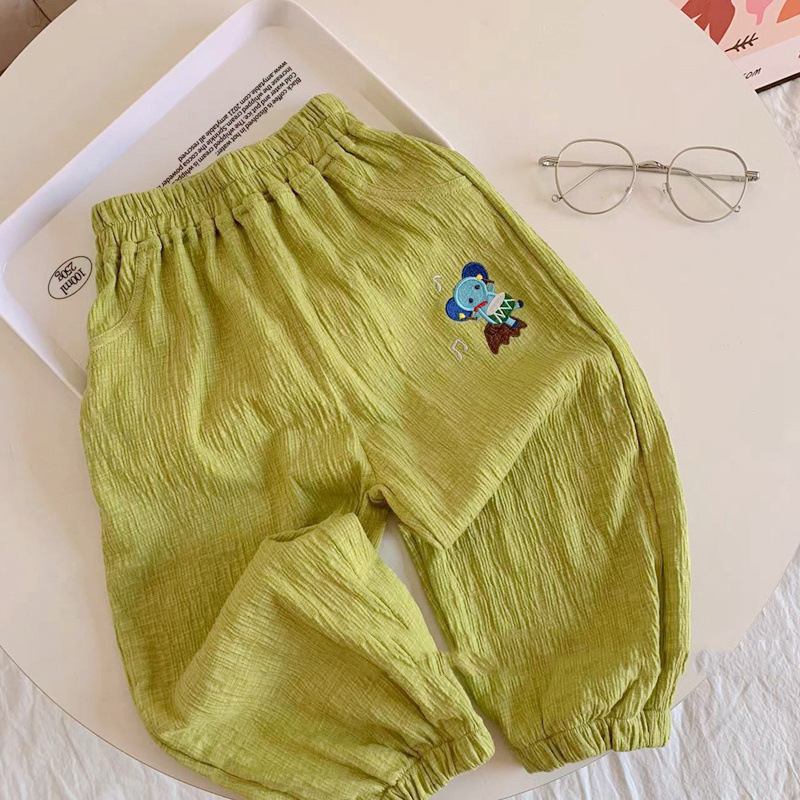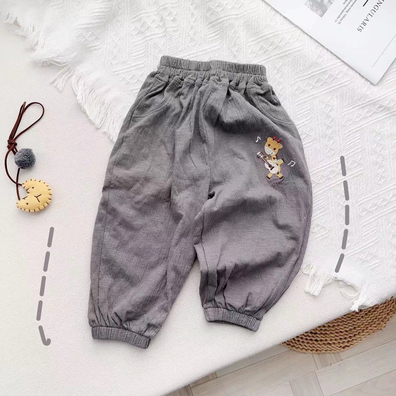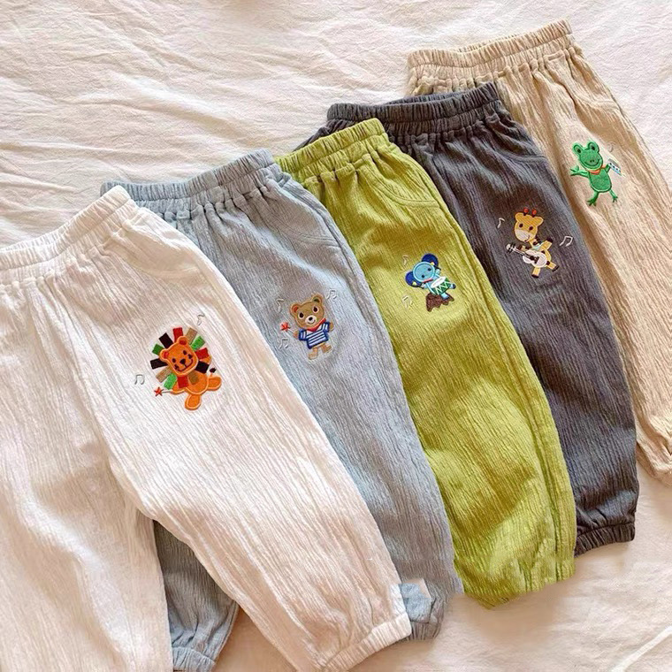 어린이 바지 봄과 여름 소년과 소녀를위한 새로운 일본 모기 방지 바지 아기 캔디 컬러 캐주얼 바지 면화 및 리넨 블루머스토어 가기