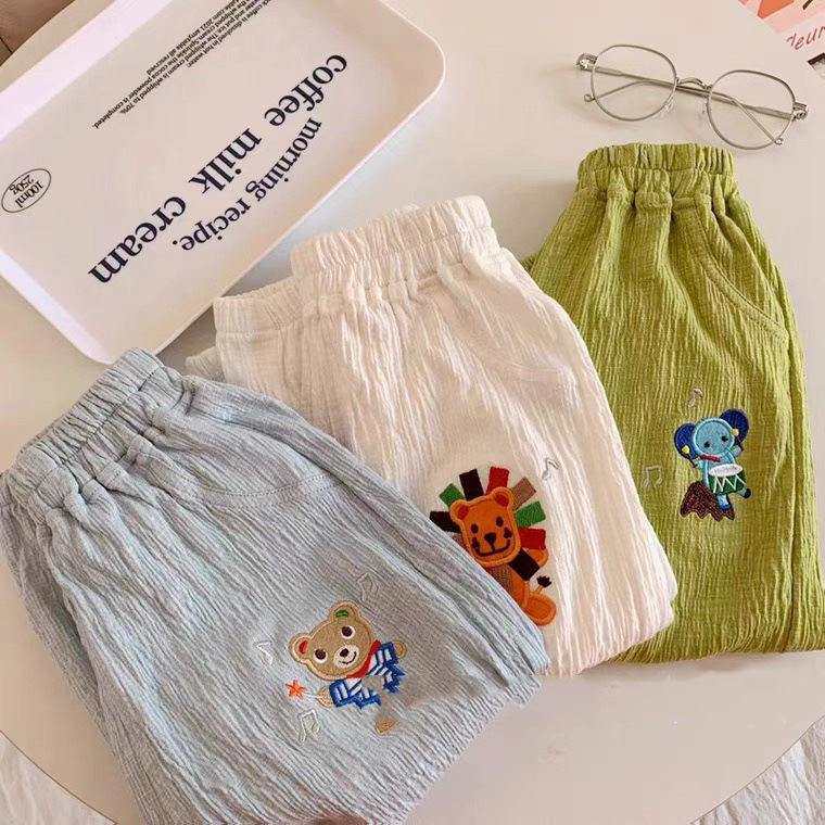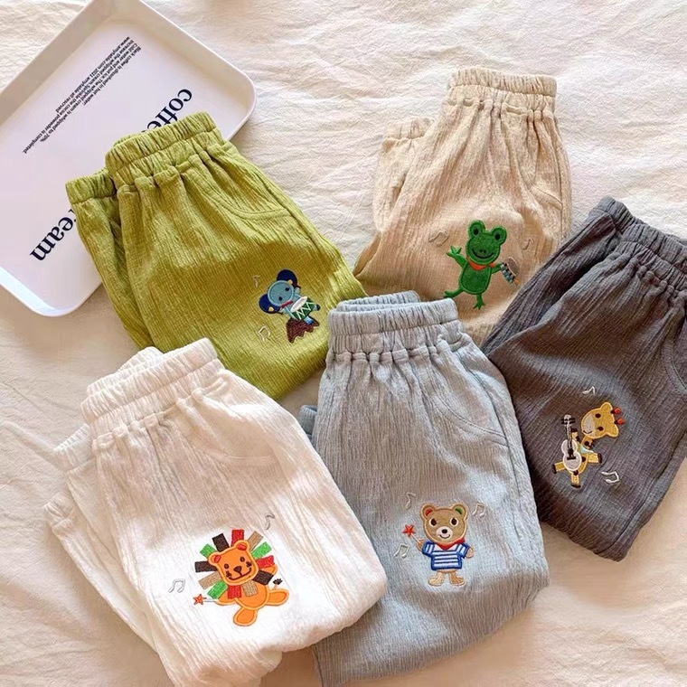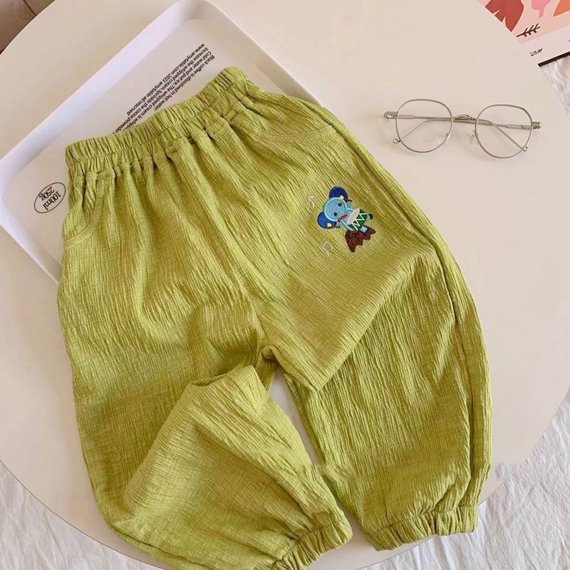 어린이 바지 봄과 여름 소년과 소녀를위한 새로운 일본 모기 방지 바지 아기 캔디 컬러 캐주얼 바지 면화 및 리넨 블루머