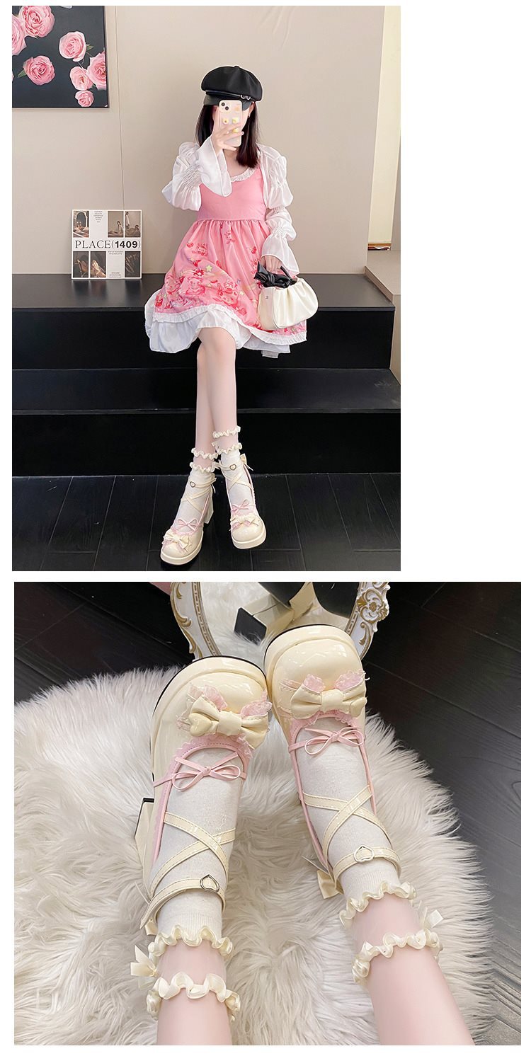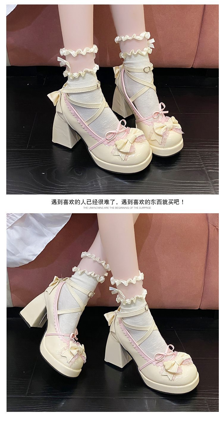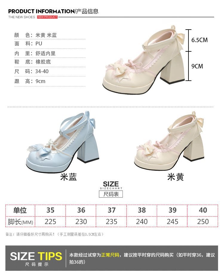 두꺼운 하단 파란색 두꺼운 뒤꿈치 달콤한 귀여운 일본 부드러운 소녀 여성 천 로리타 하이힐 방수 활 신발스토어 가기