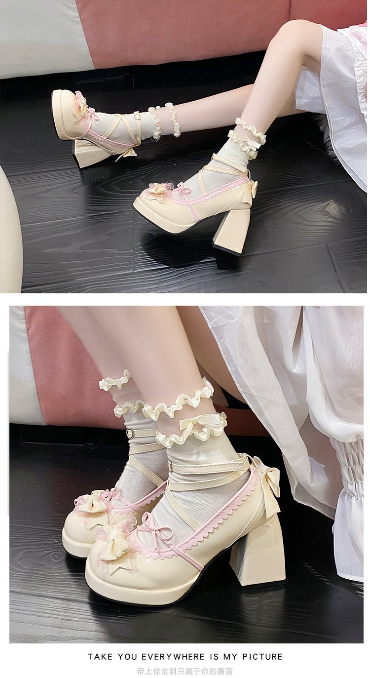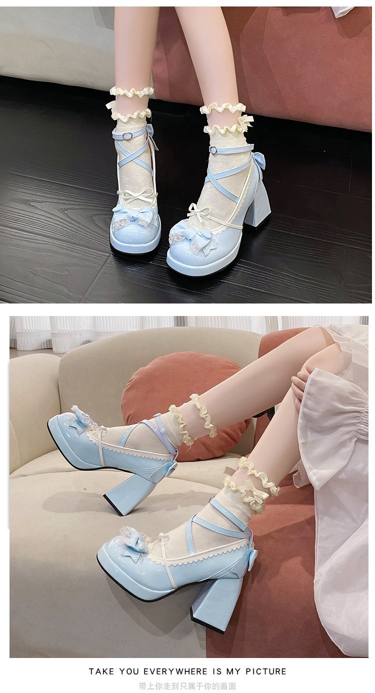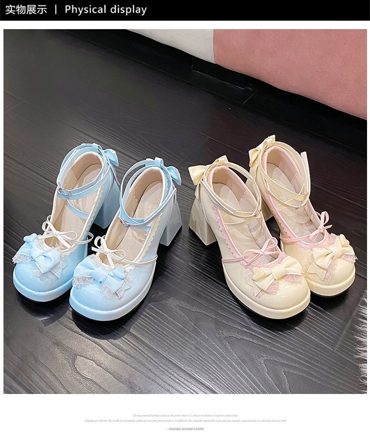 두꺼운 하단 파란색 두꺼운 뒤꿈치 달콤한 귀여운 일본 부드러운 소녀 여성 천 로리타 하이힐 방수 활 신발