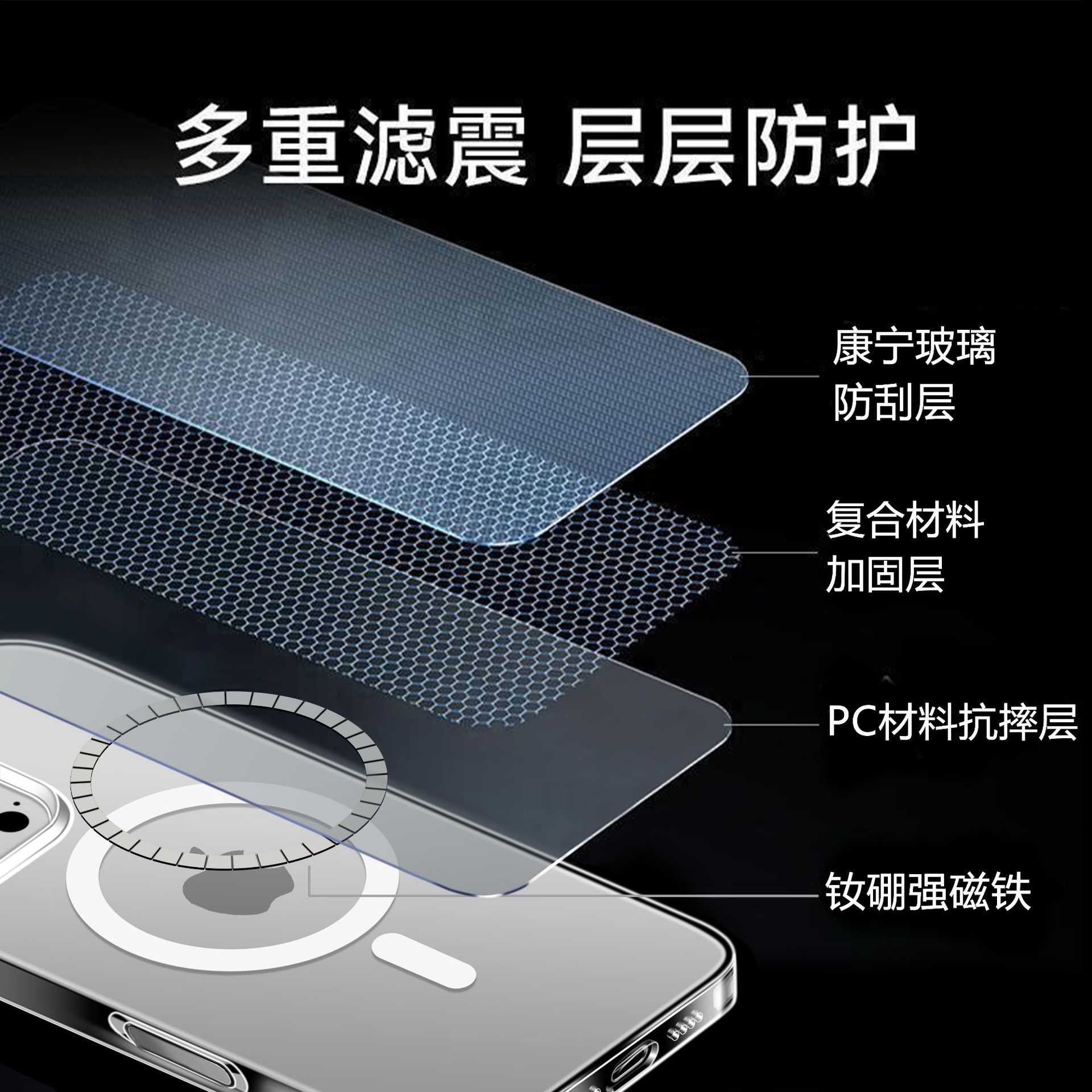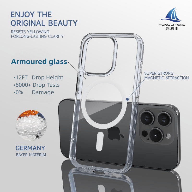 Apple 17promax 외장에 적합한 새로운 고급 투명 강화 유리 강력한 자기 소프트 에지 낙하 방지 휴대폰 케이스스토어 가기