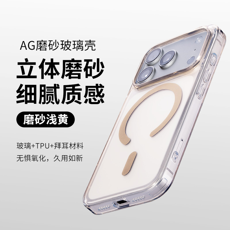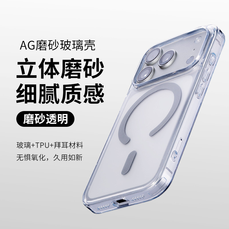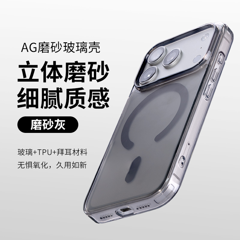 Apple 17promax 외장에 적합한 새로운 고급 투명 강화 유리 강력한 자기 소프트 에지 낙하 방지 휴대폰 케이스