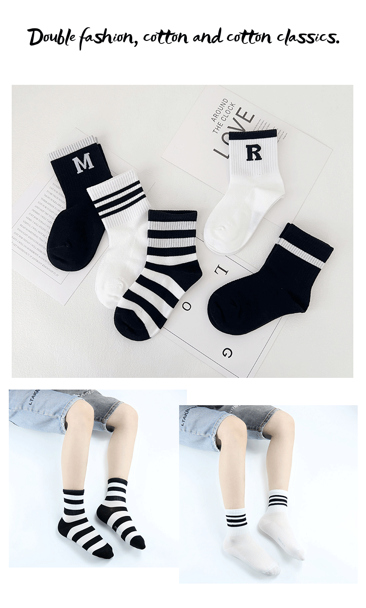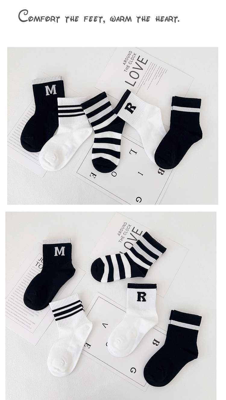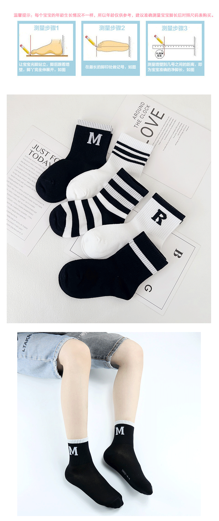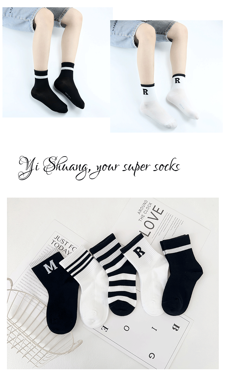 Yi Pair 어린이 양말 여름 새 메쉬 통기성 한국어 편지 미드 튜브 양말 빗 코튼 블랙 및 화이트 스포츠 양말스토어 가기