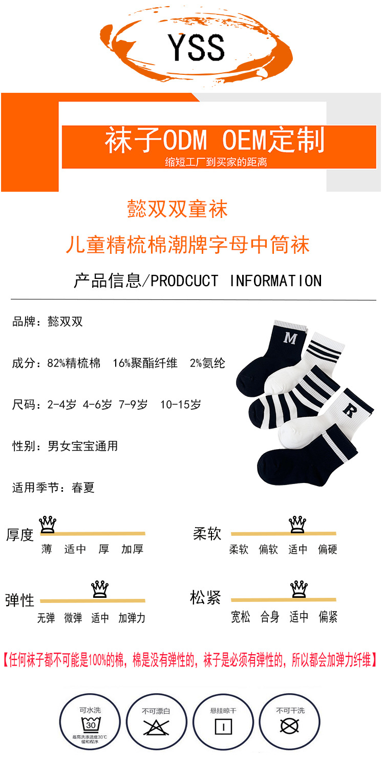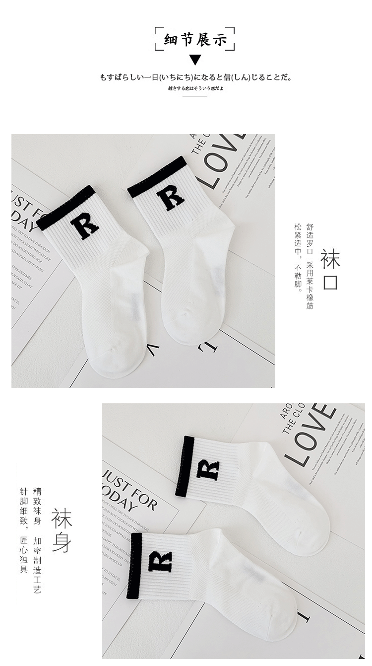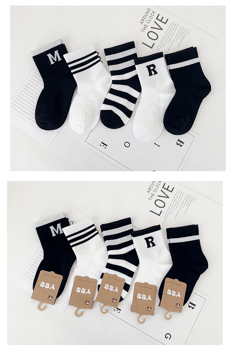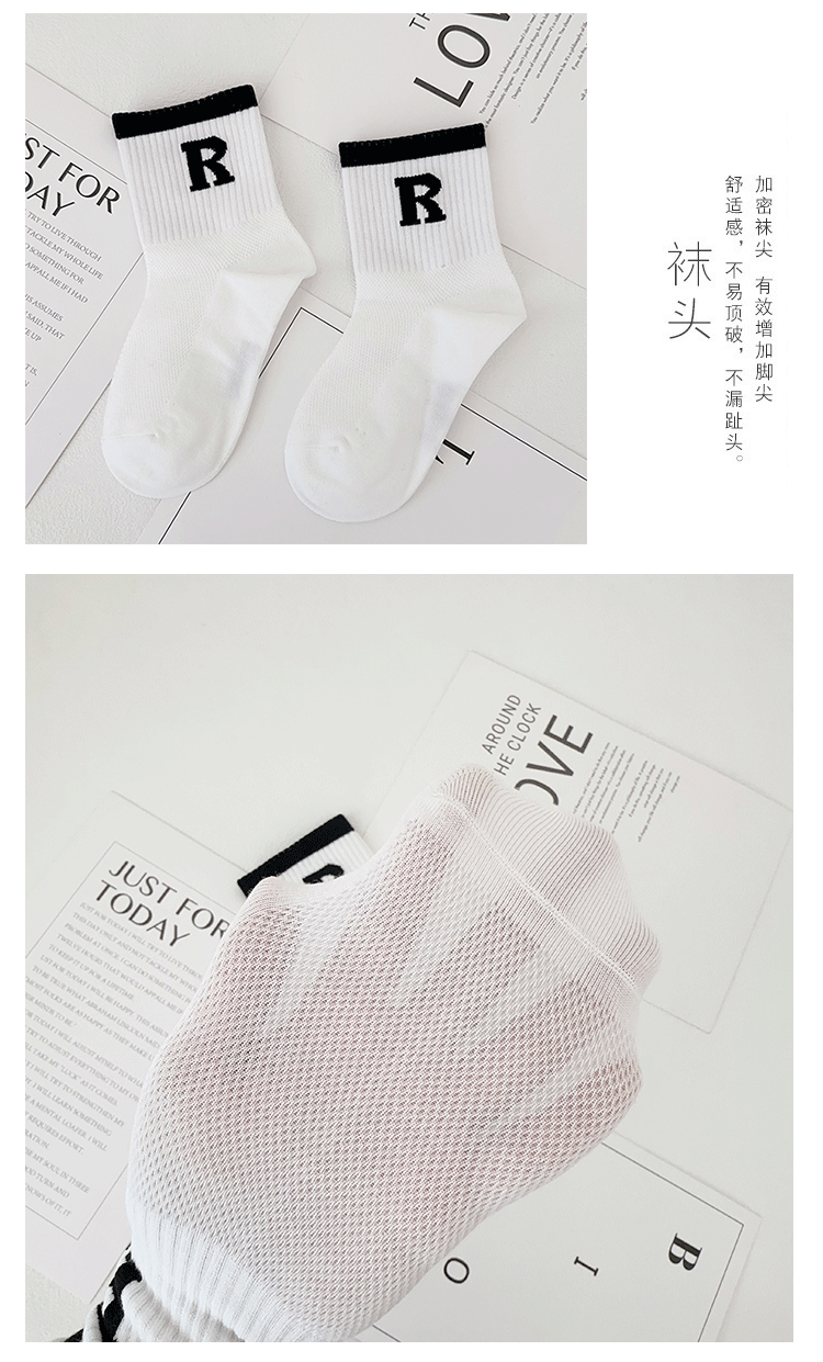 Yi Pair 어린이 양말 여름 새 메쉬 통기성 한국어 편지 미드 튜브 양말 빗 코튼 블랙 및 화이트 스포츠 양말스토어 가기