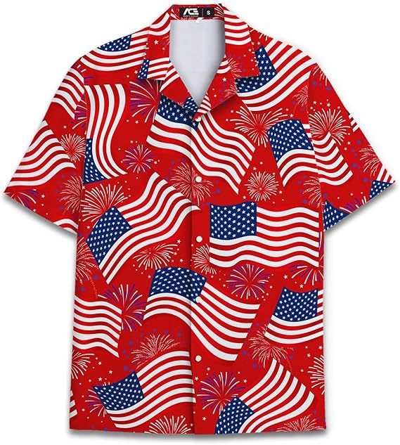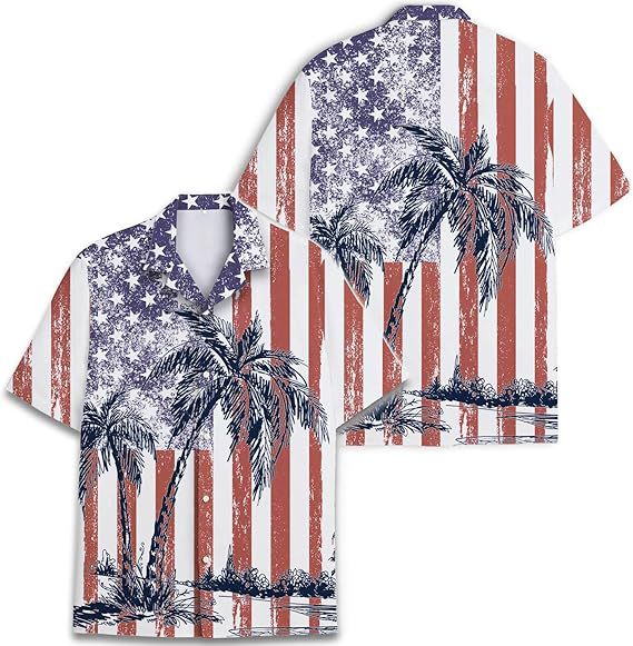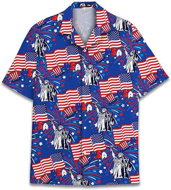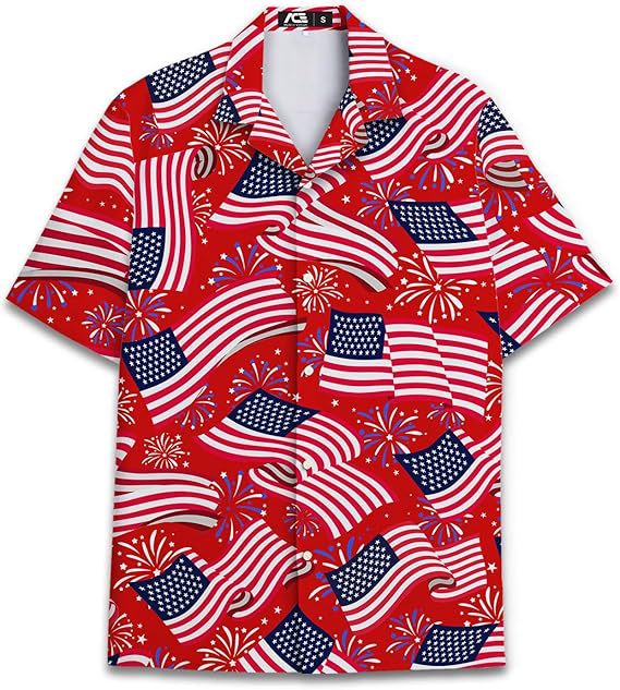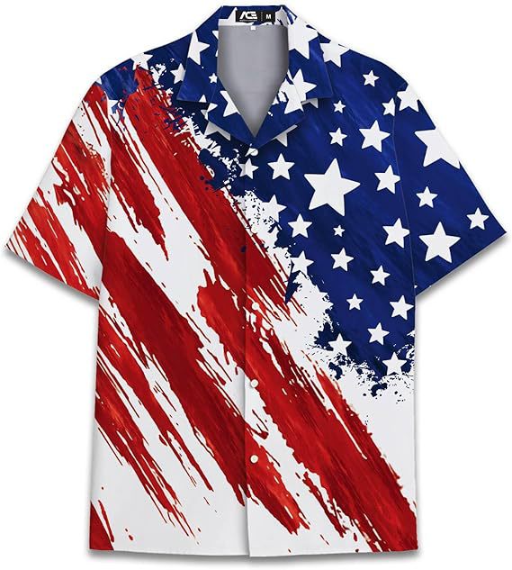 국경 간 미국 독립 기념일 깃발 셔츠 남자의 여름 3D 디지털 인쇄 캐주얼 플러스 사이즈 쿠바 칼라 셔츠스토어 가기
